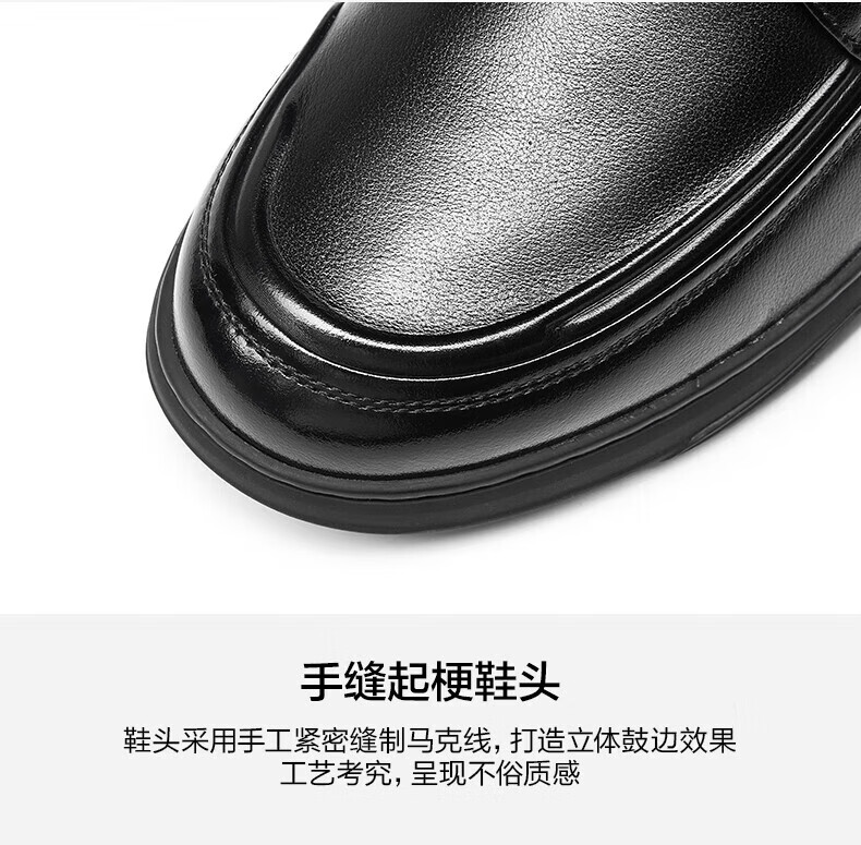 金利来(Goldlion)男鞋轻奢商务正装皮鞋鸵鸟皮革拼接牛皮革套脚乐福鞋男士皮鞋 黑色 43
