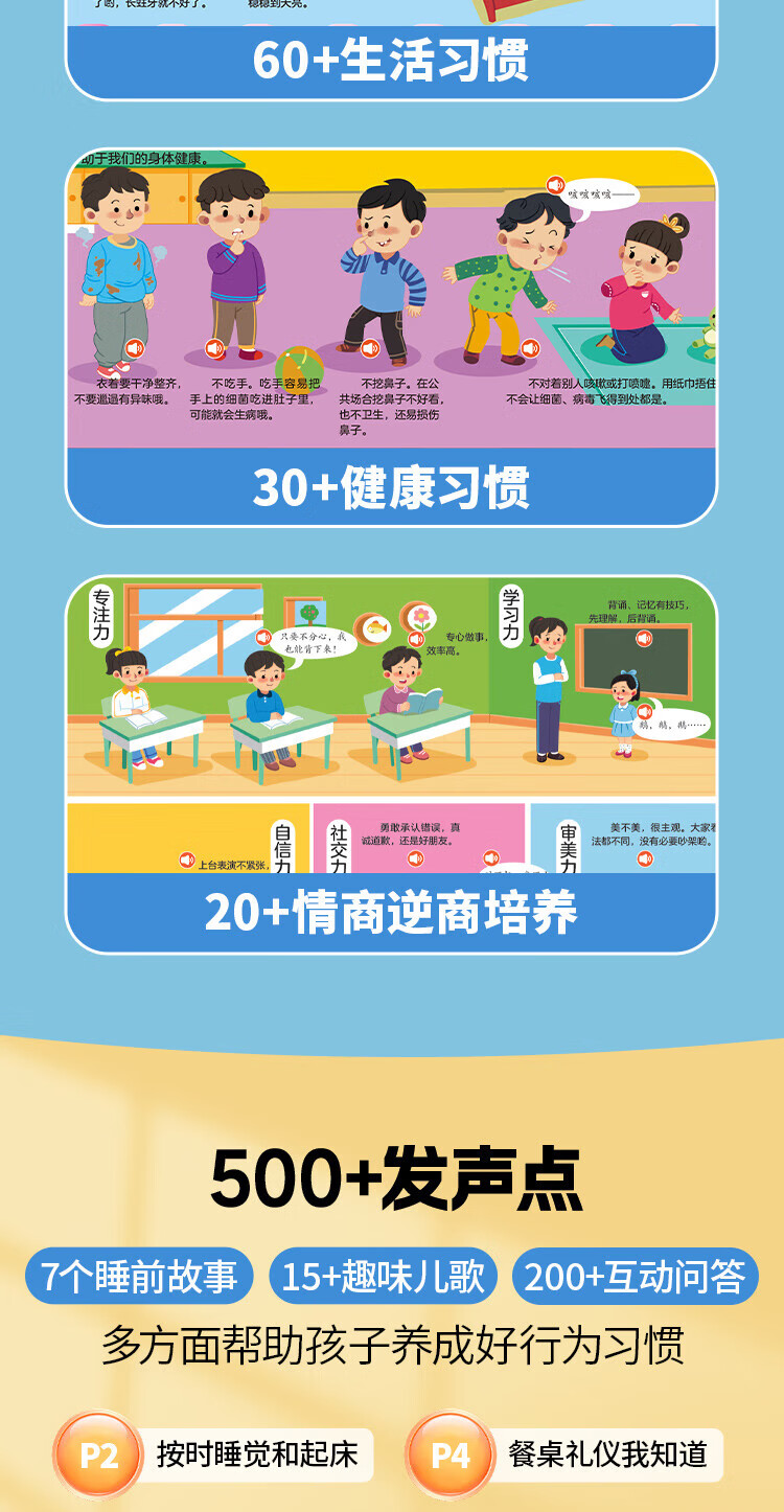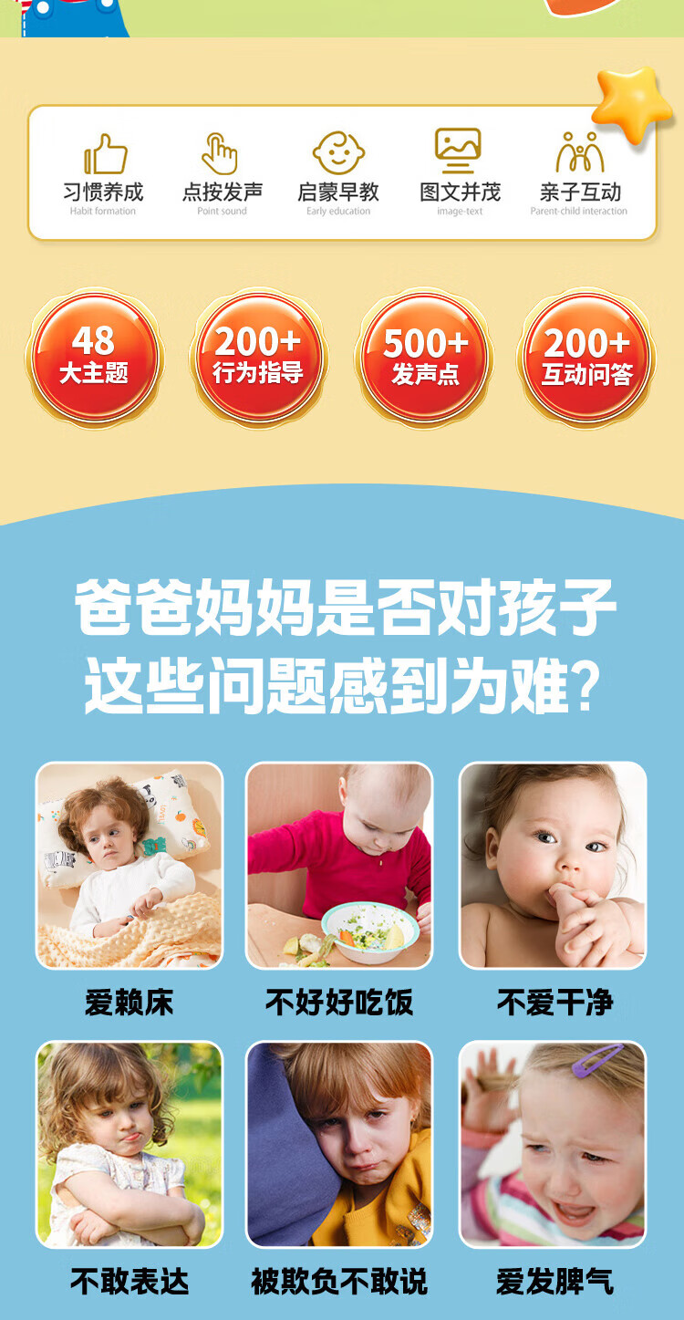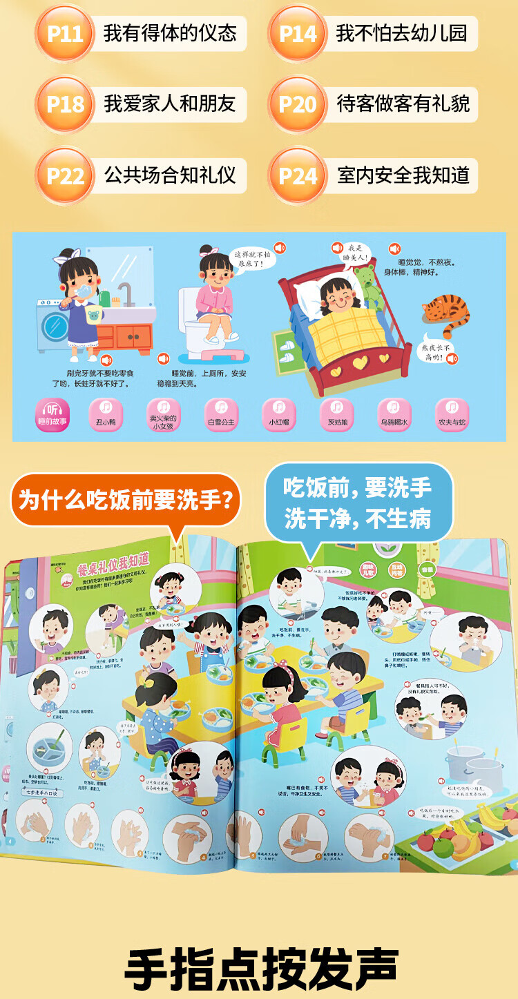 幼儿行为习惯手指点读会说话的早教有声书发声书0-8岁宝宝生活习惯养成故事绘本启蒙认知书3-6岁 默认规格