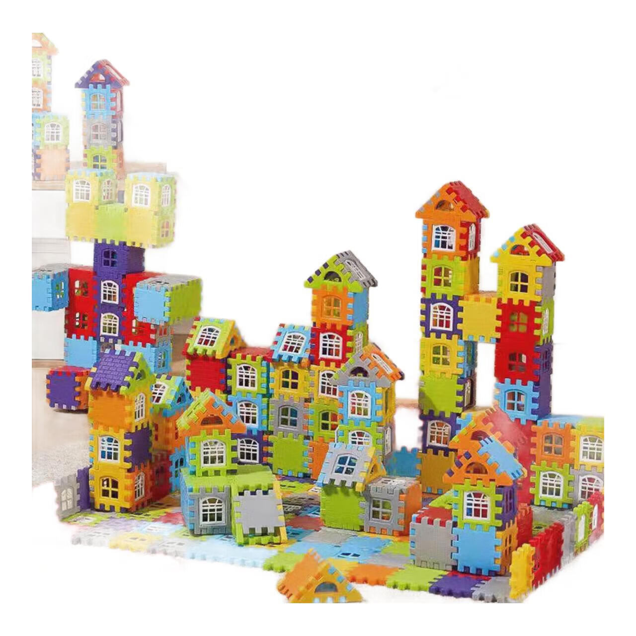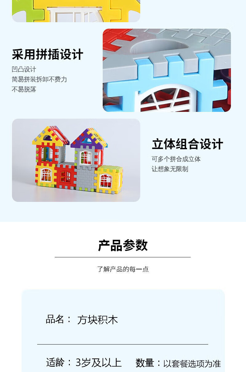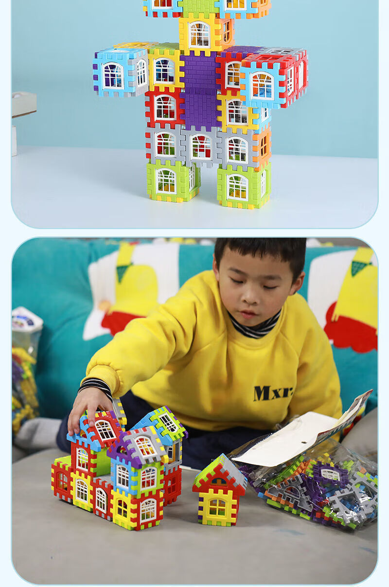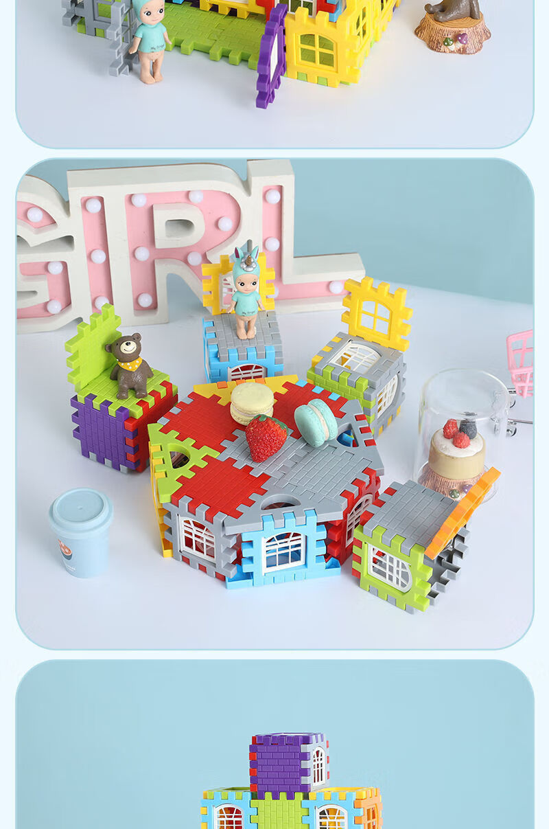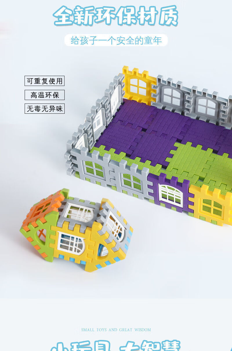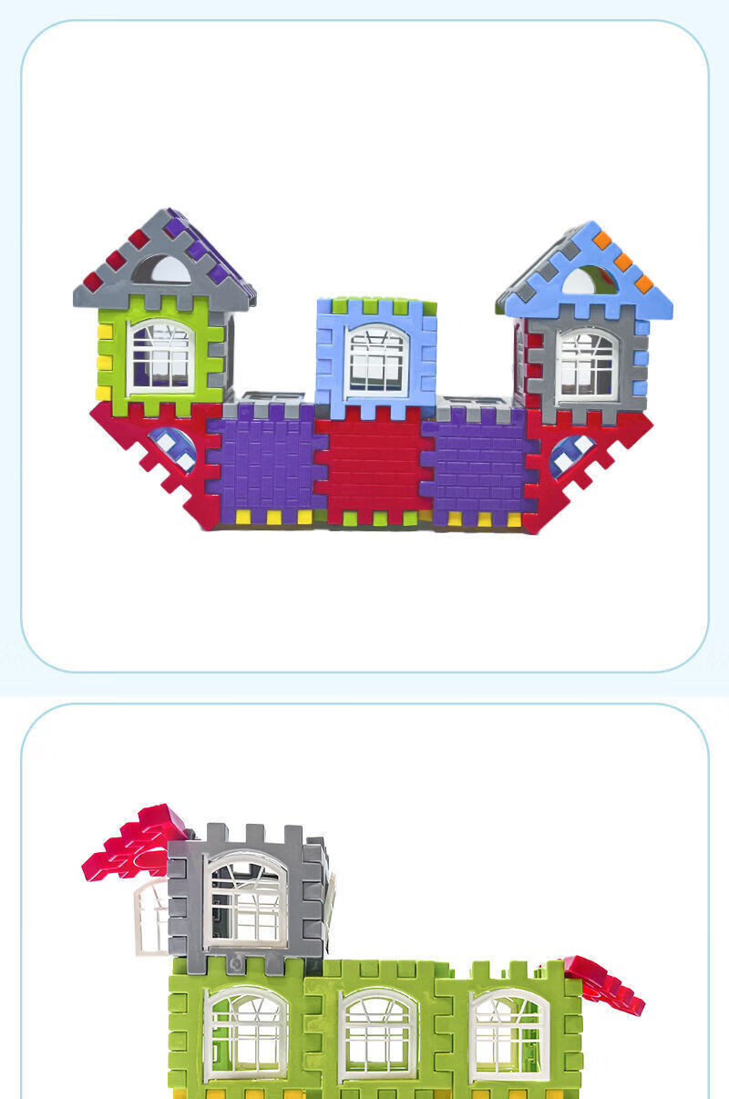 彩虹房子搭房子积木带窗户幼儿园儿童方块塑料拼插房子组拼装女男孩kc 搭房子积木140片【带窗户+图纸】