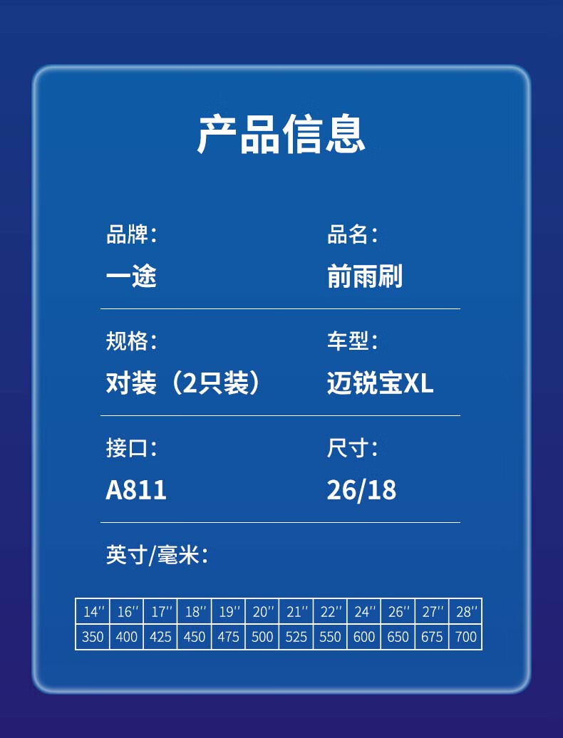 一途雪佛兰迈锐宝XL无骨雨刮器雨刷器雨刮原厂原车尺寸(1对装)胶条