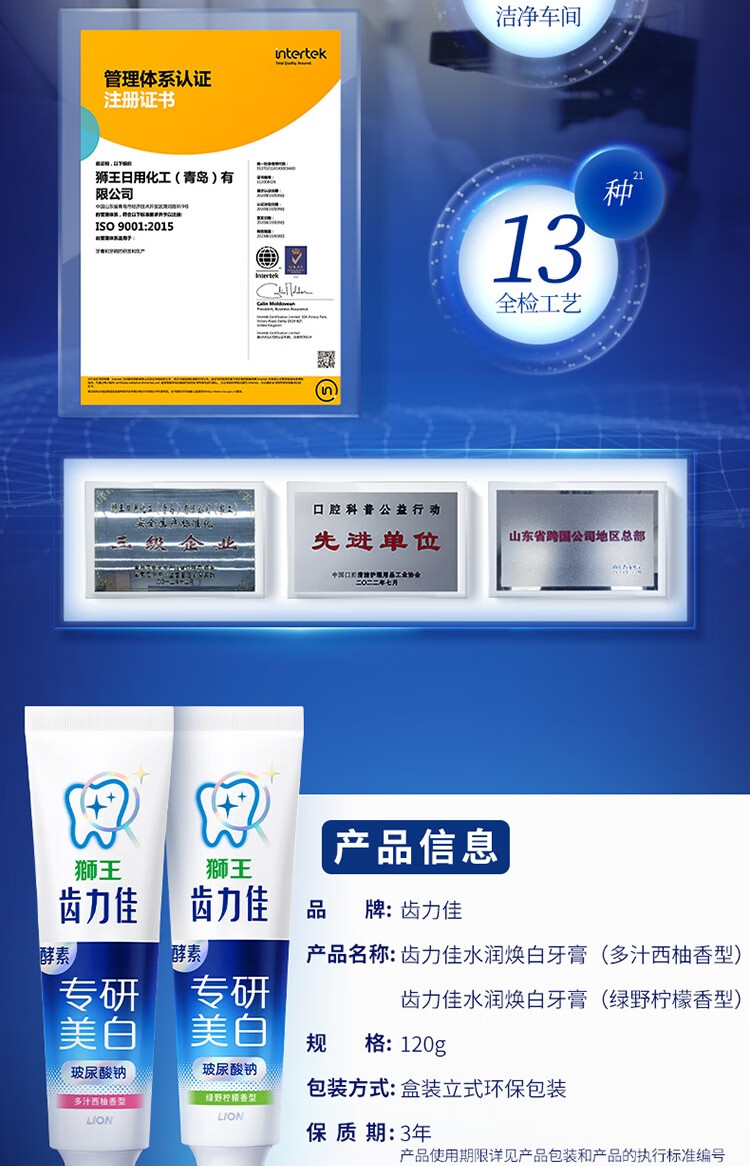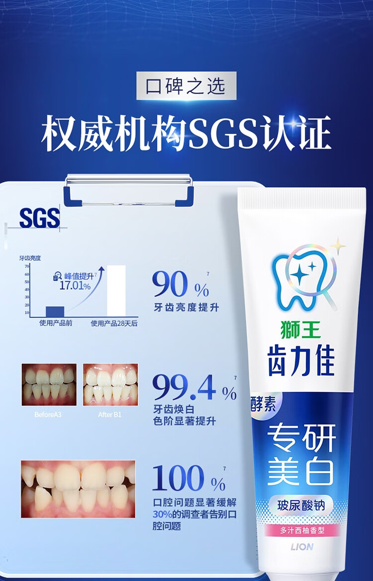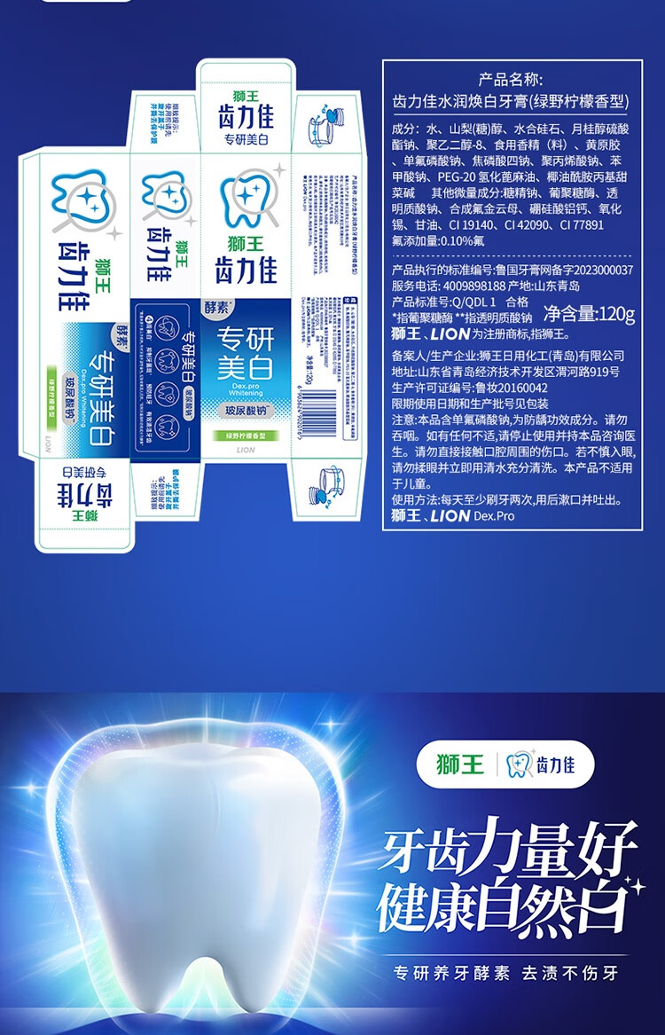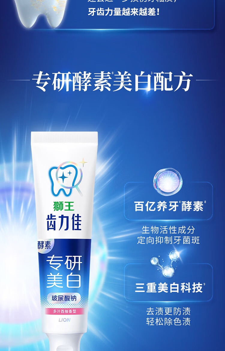 狮王(Lion)齿力佳水润焕白牙膏多汁西柚120g护龈美白去口臭去黄