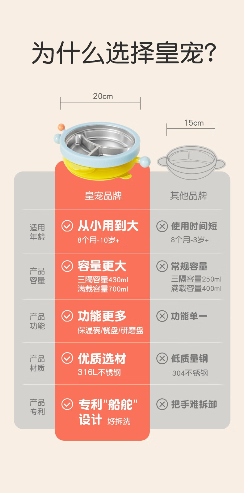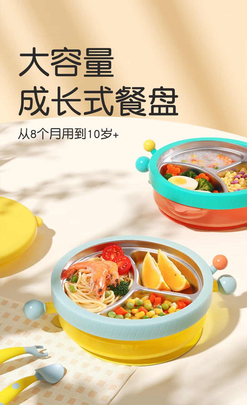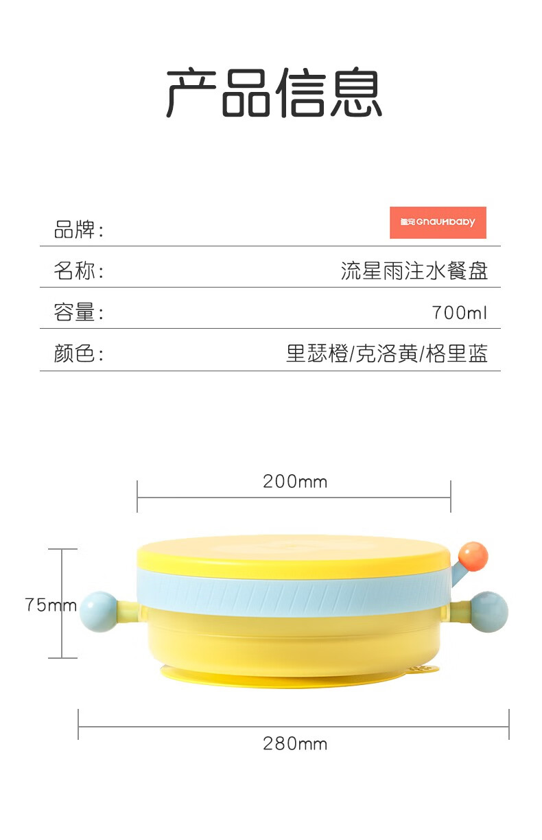 皇宠宝宝注水保温餐盘成长分格盘婴儿吸盘式辅食碗【社群专享】 注水餐盘-克洛黄