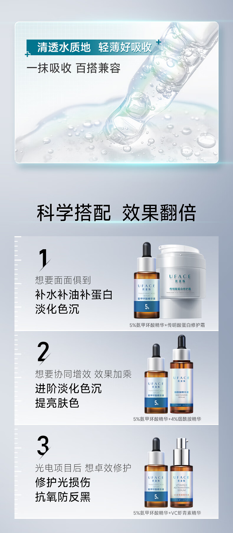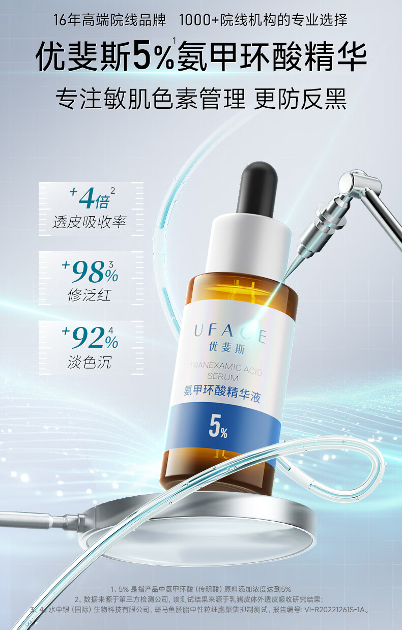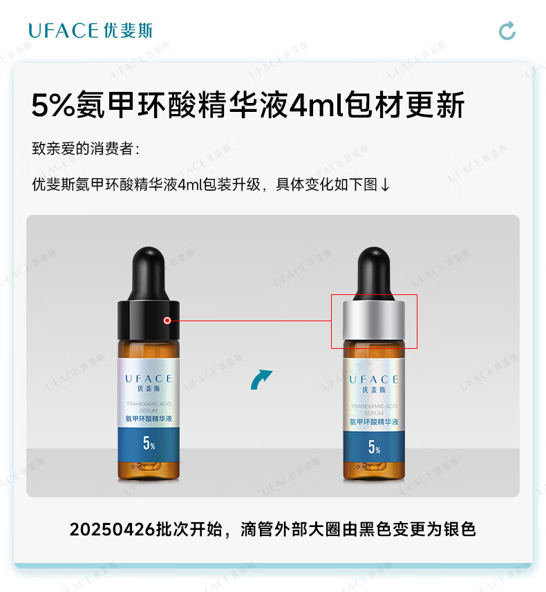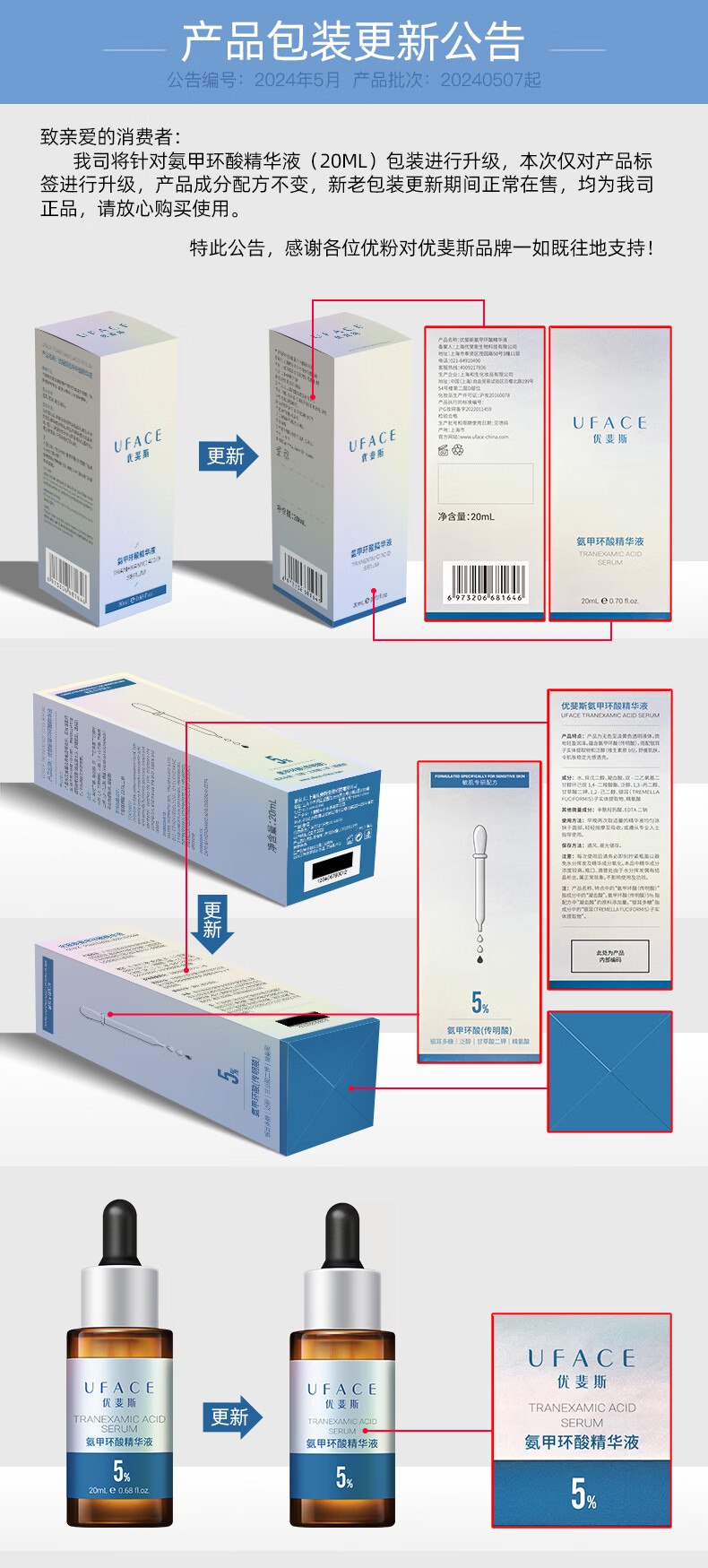 优斐斯(uface)氨甲环酸精华液传明酸5%浓度提亮肤色淡化色沉补水圣诞礼物 20ml*4瓶【送80ml】