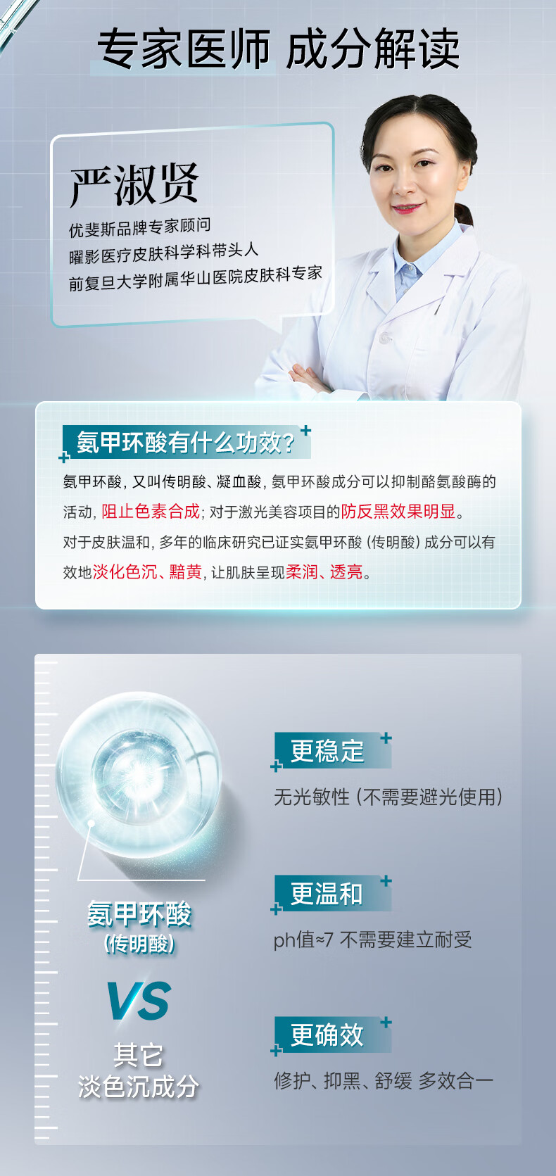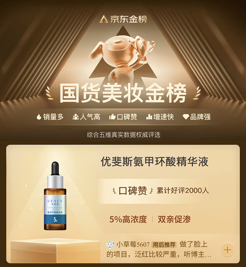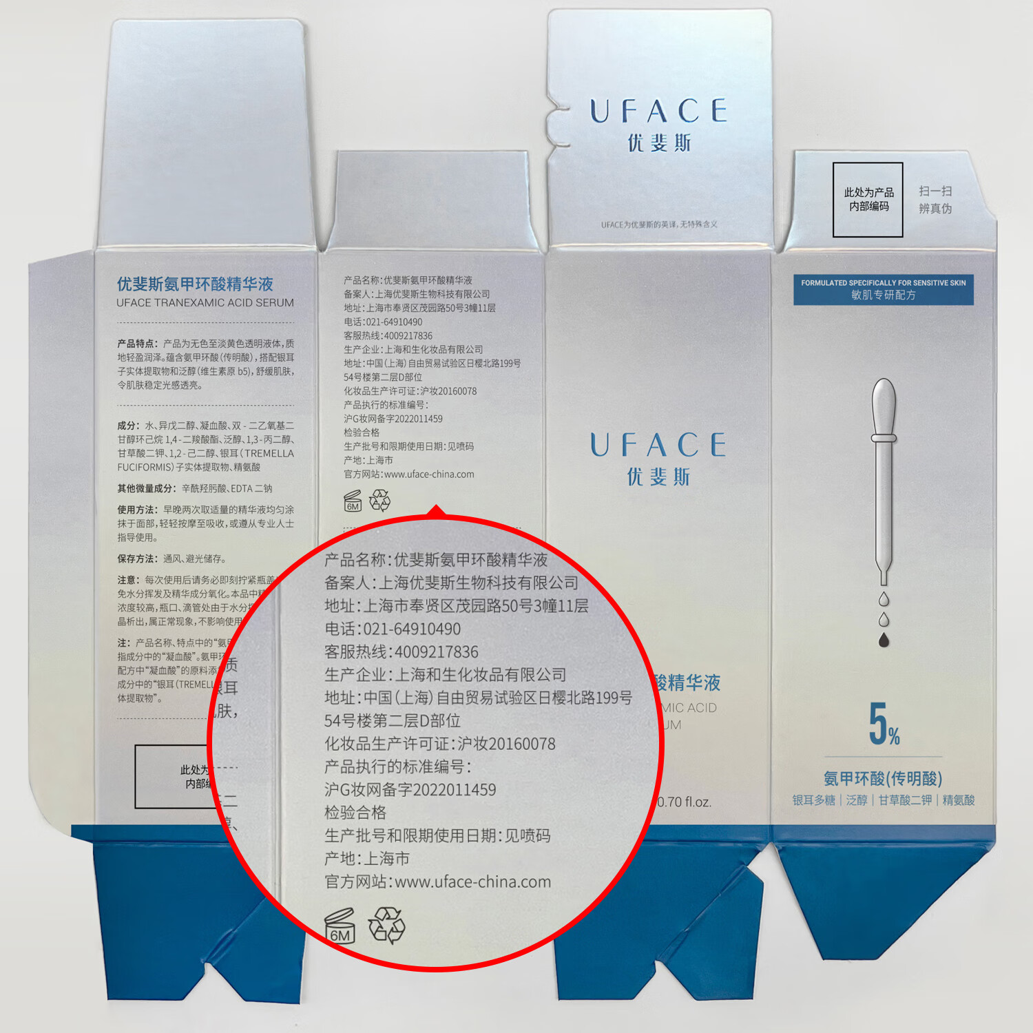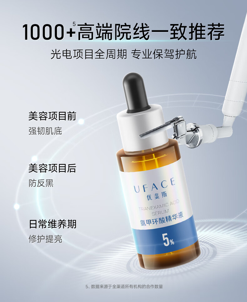 优斐斯(uface)氨甲环酸精华液传明酸5%浓度提亮肤色淡化色沉补水圣诞礼物 20ml*4瓶【送80ml】