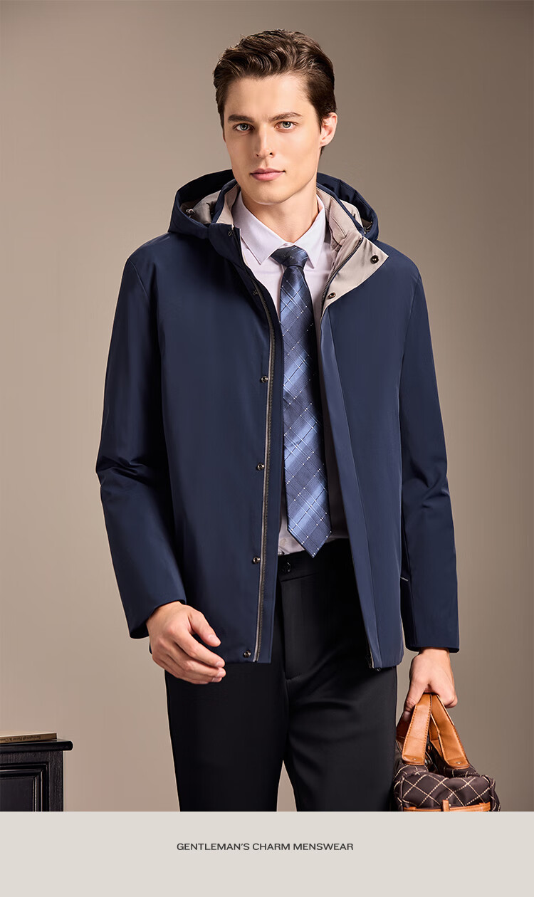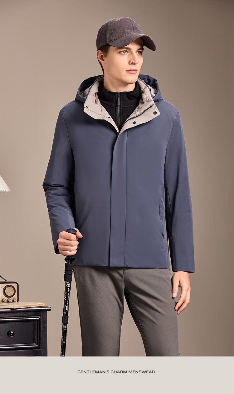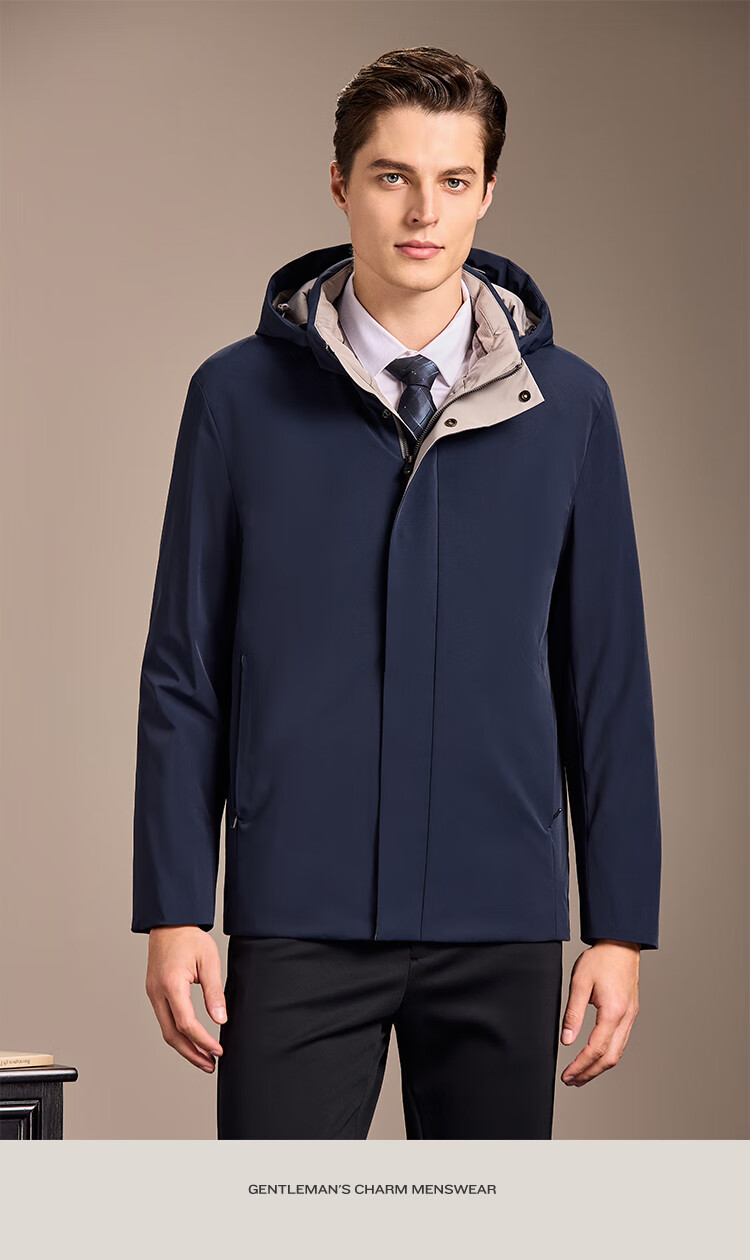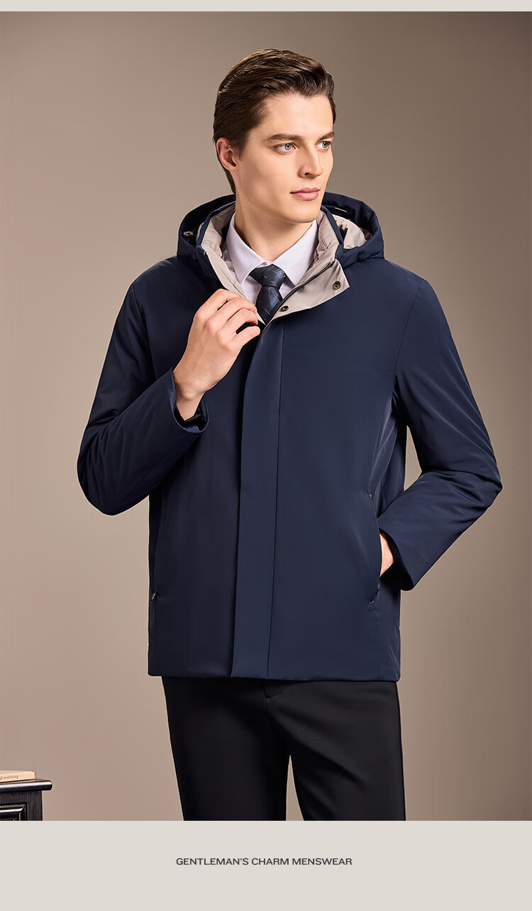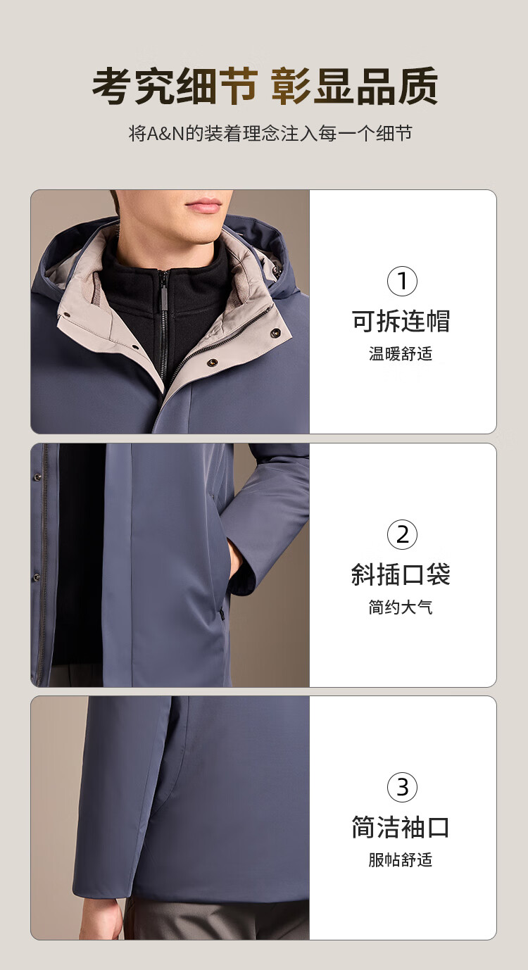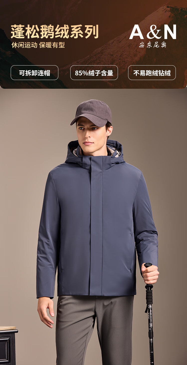 安东尼奥【御寒保暖&85蓬松鹅绒】经典商务可拆连帽羽绒服男冬锁温外套男