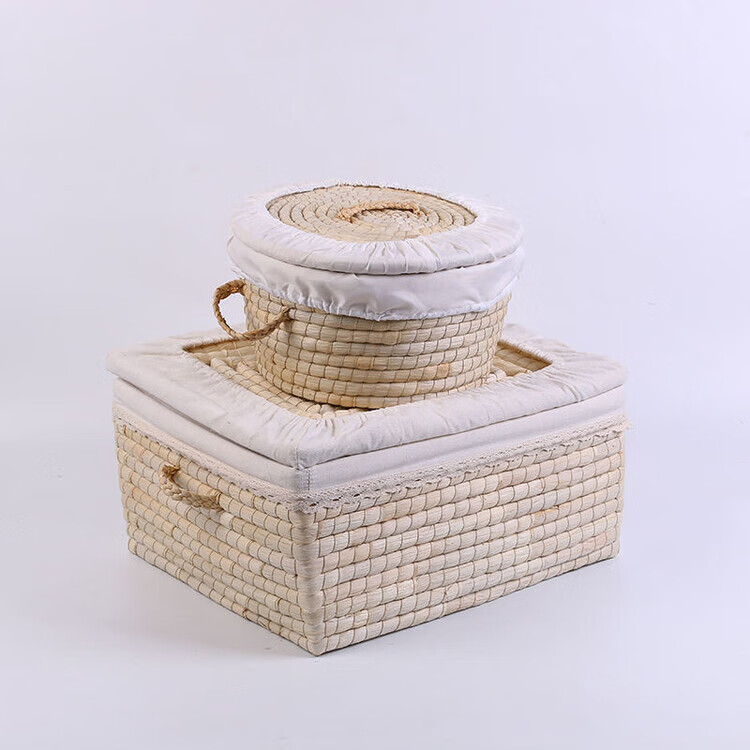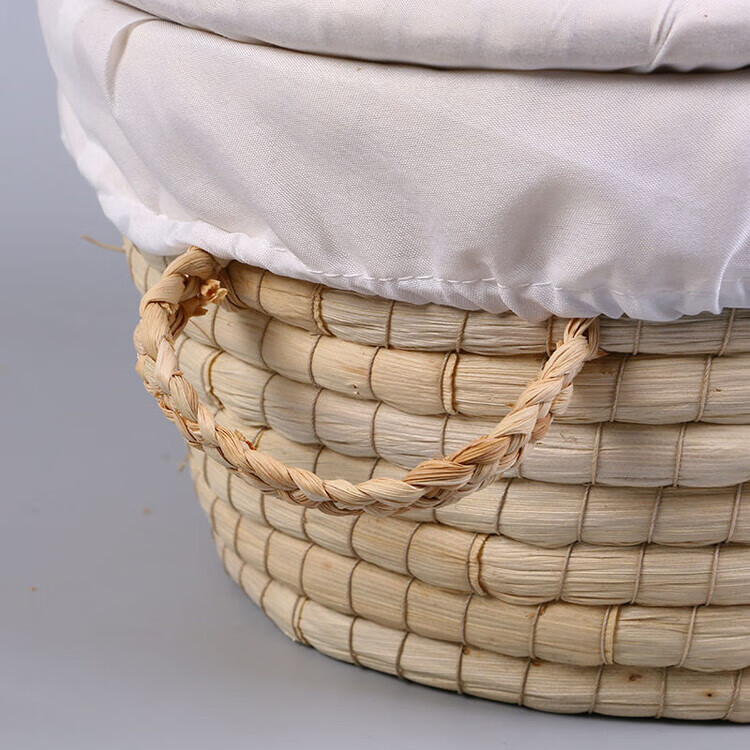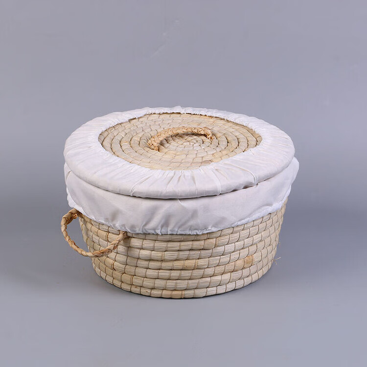 GIOIO馒头筐保温筐饼筐草编玉米皮带盖馍馍筐鸡蛋鸭蛋饭焐子收纳拆洗 圆形口径30厘米 1套可拆洗布套