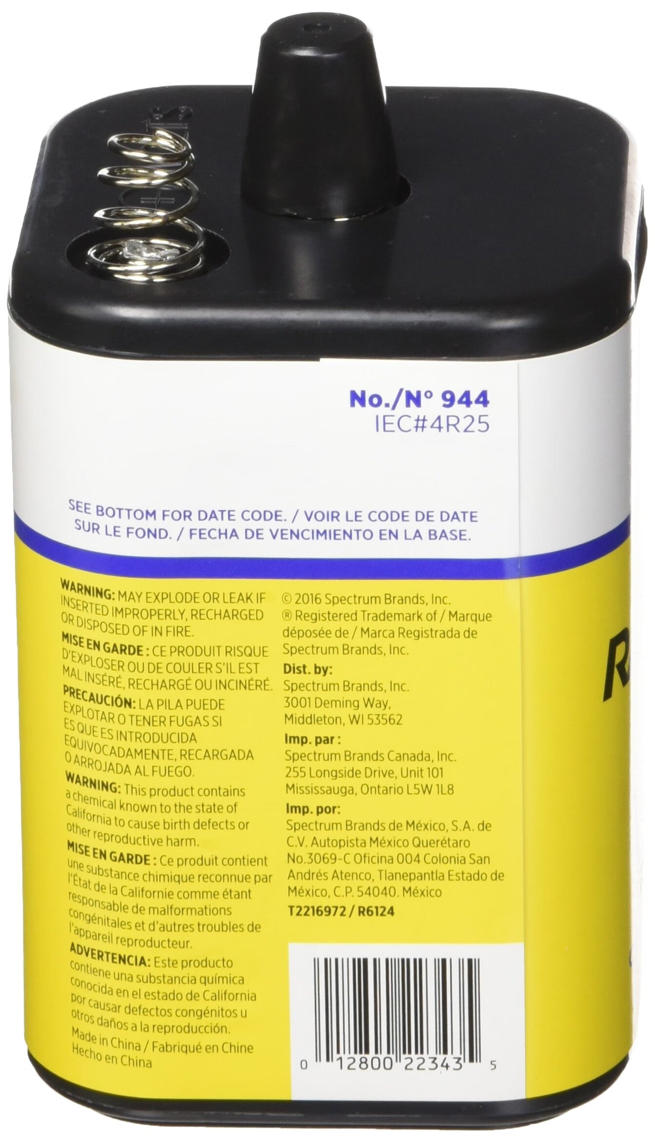 Rayovac 944-2R:6 伏重型灯笼电池带弹簧端子 - 2 件装