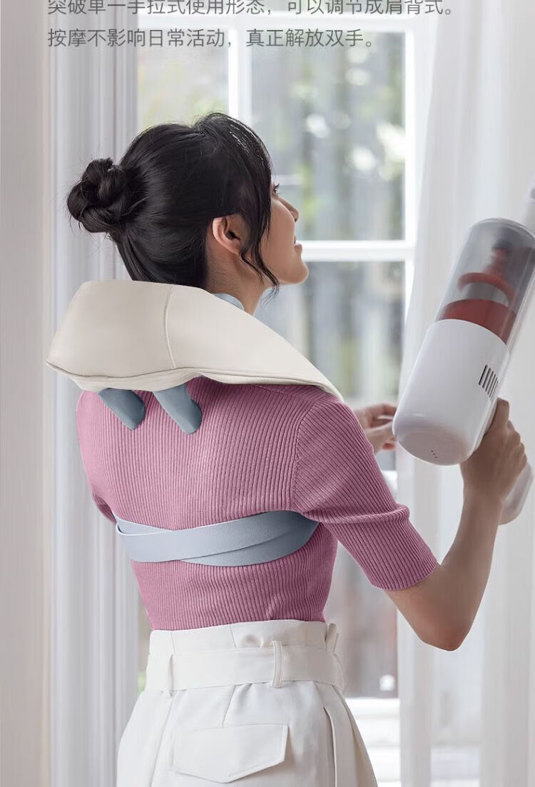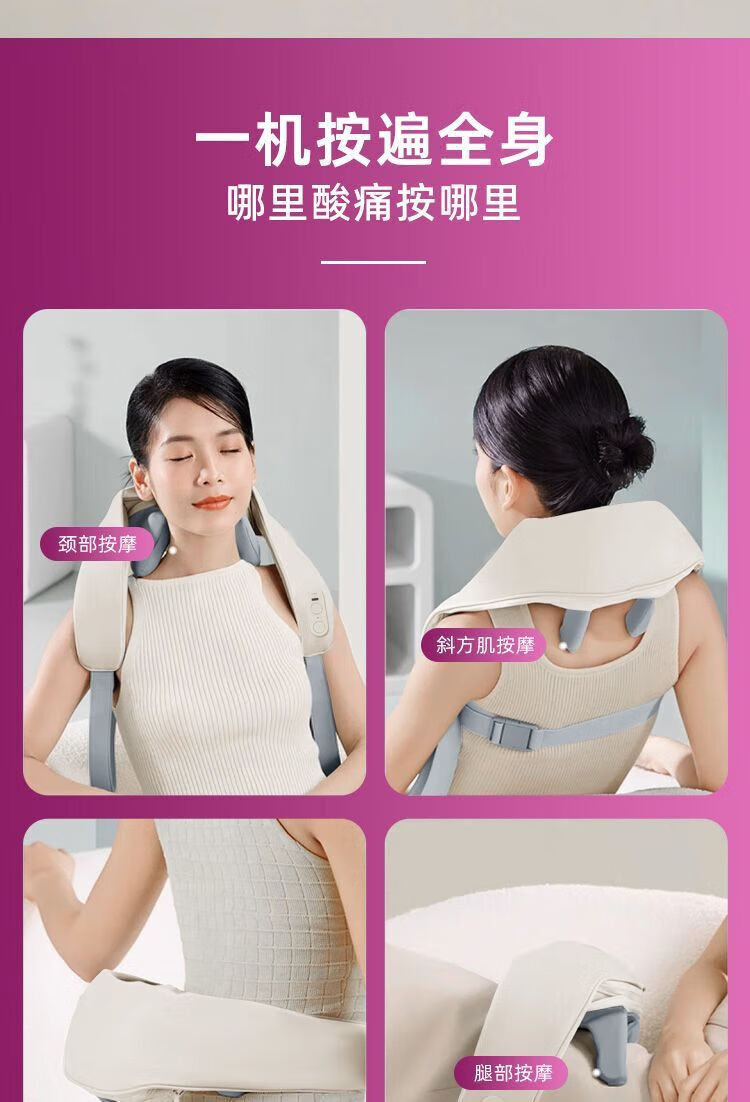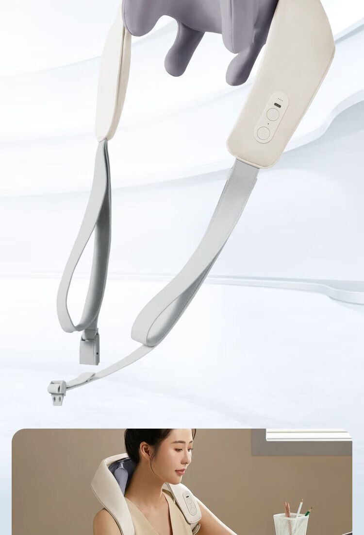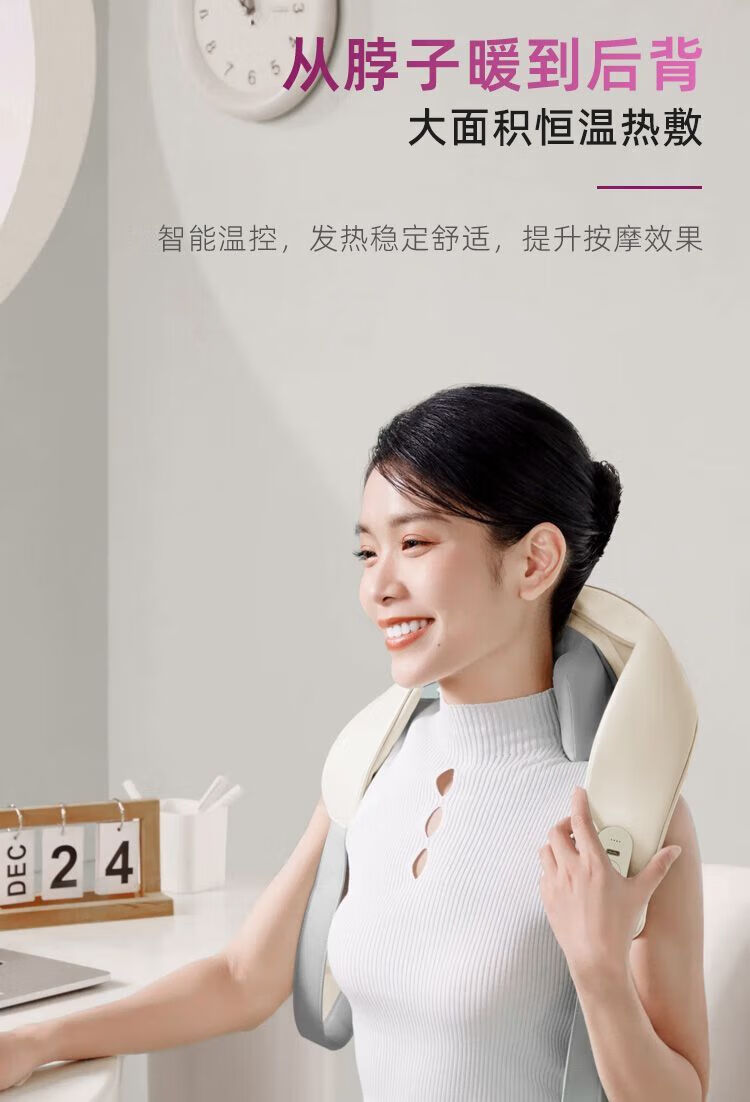 DYMIROY 戴觅颈椎按摩器肩颈腰背披肩按摩枕仿人手揉捏神器热敷斜方肌按摩仪七夕情人节礼物教师节生日礼盒装 升级款【8D仿人手按摩丨三档力度丨可拆洗布套】米白