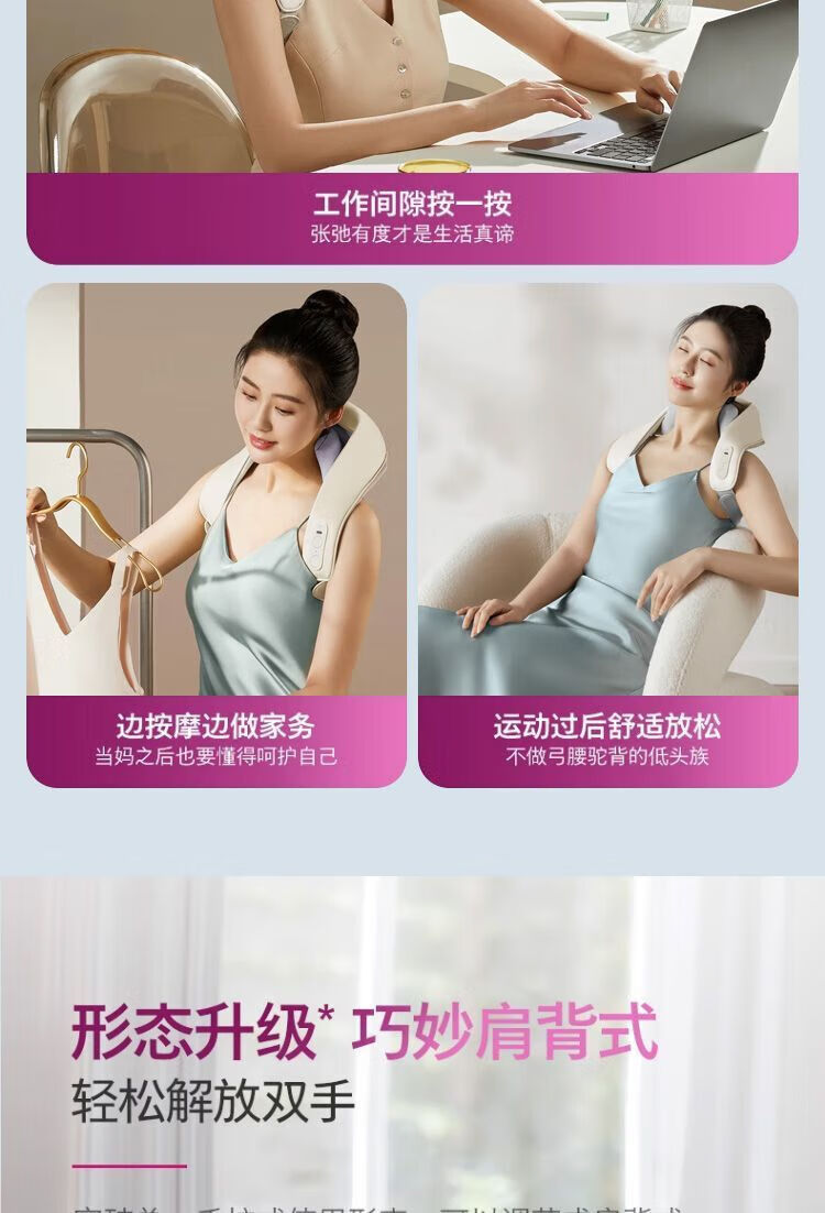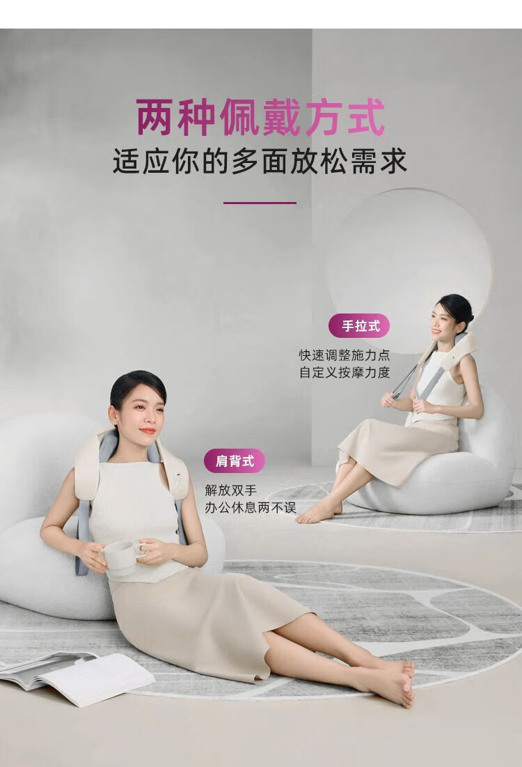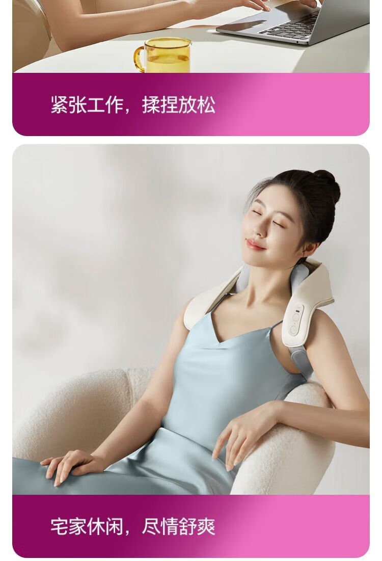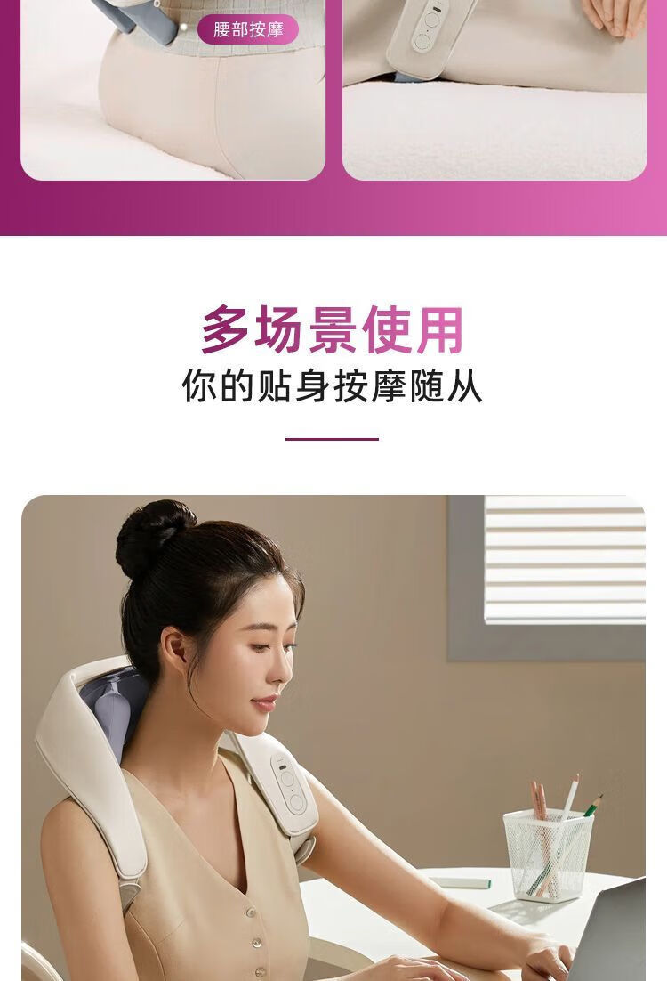 DYMIROY 戴觅颈椎按摩器肩颈腰背披肩按摩枕仿人手揉捏神器热敷斜方肌按摩仪七夕情人节礼物教师节生日礼盒装 升级款【8D仿人手按摩丨三档力度丨可拆洗布套】米白