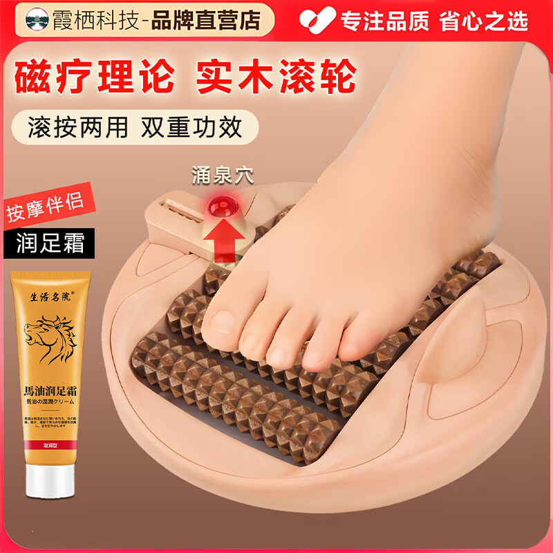 霞栖棠足底涌泉穴滚轮足疗机足部穴位刺激踏板家用脚底板经络疏通按摩器 【磁疗/按摩】原木款1个