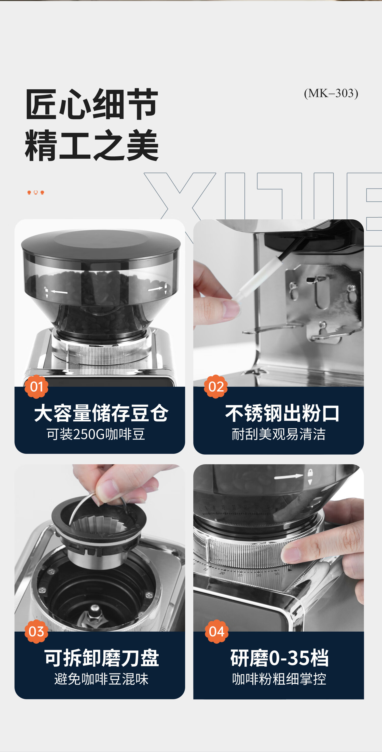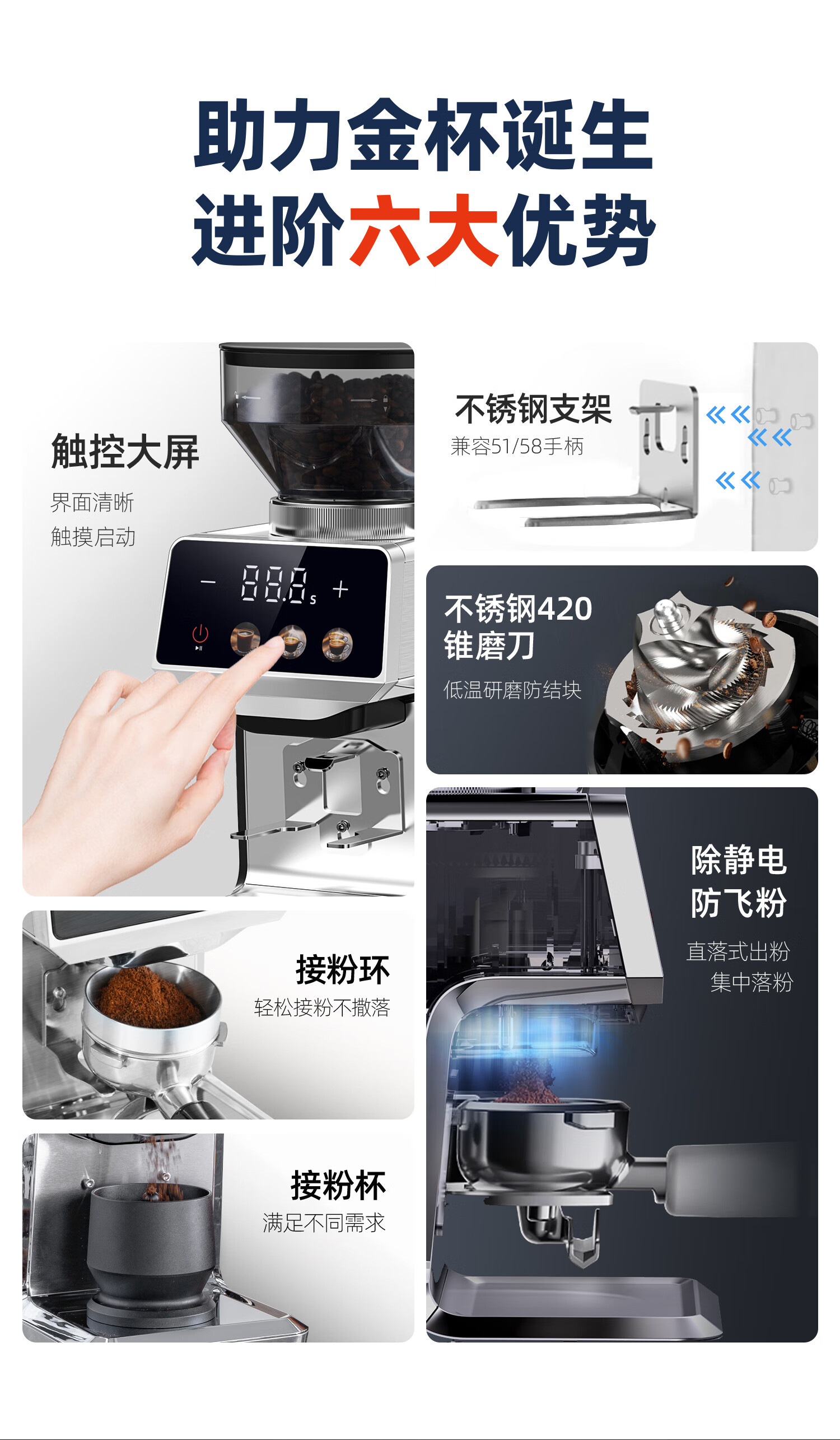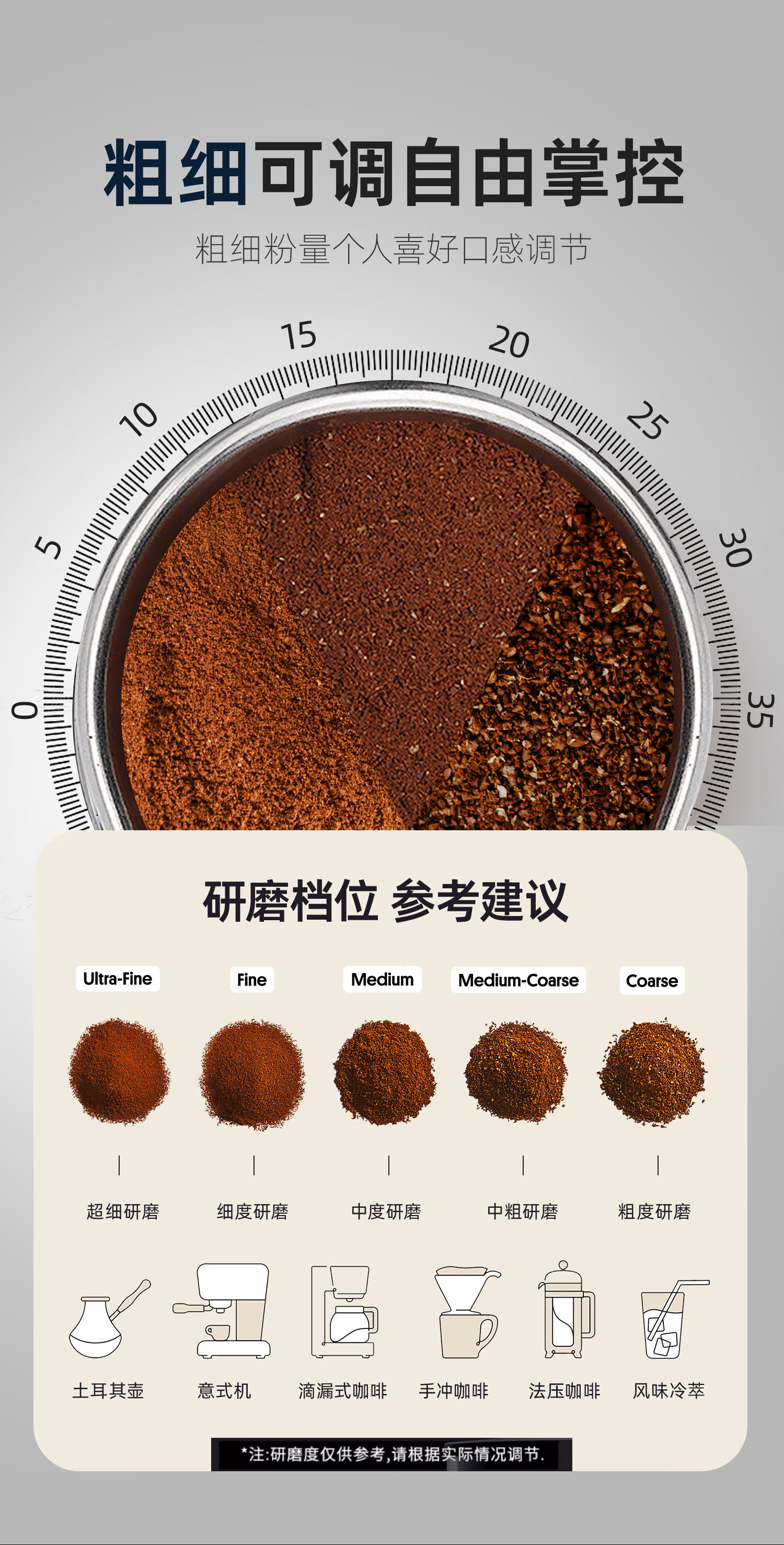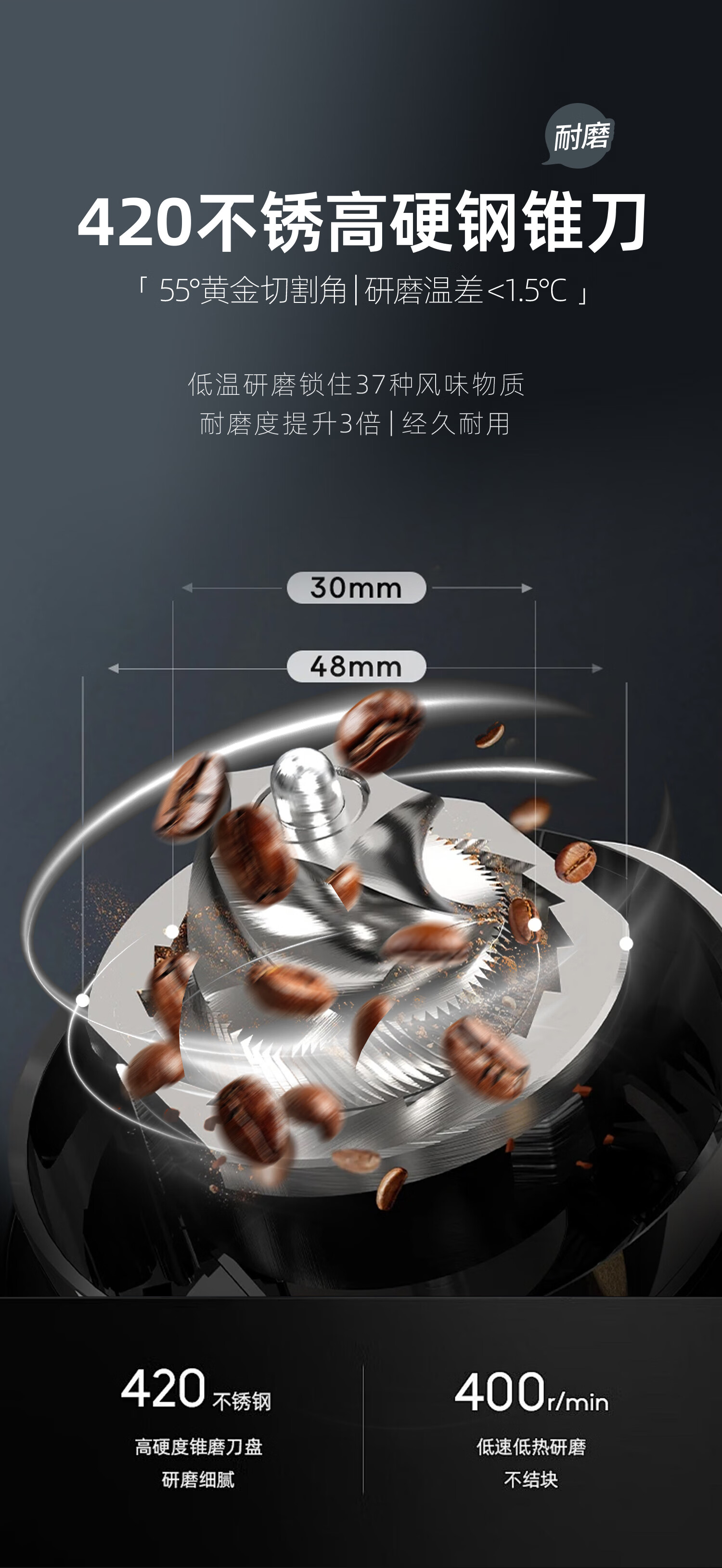 CAFELFFE聚咖极萃电动磨豆机咖啡便捷式家用意式手冲咖啡豆研磨机磨粉机商用等离子防飞粉低残留 【新升级】低音精密研磨不锈钢