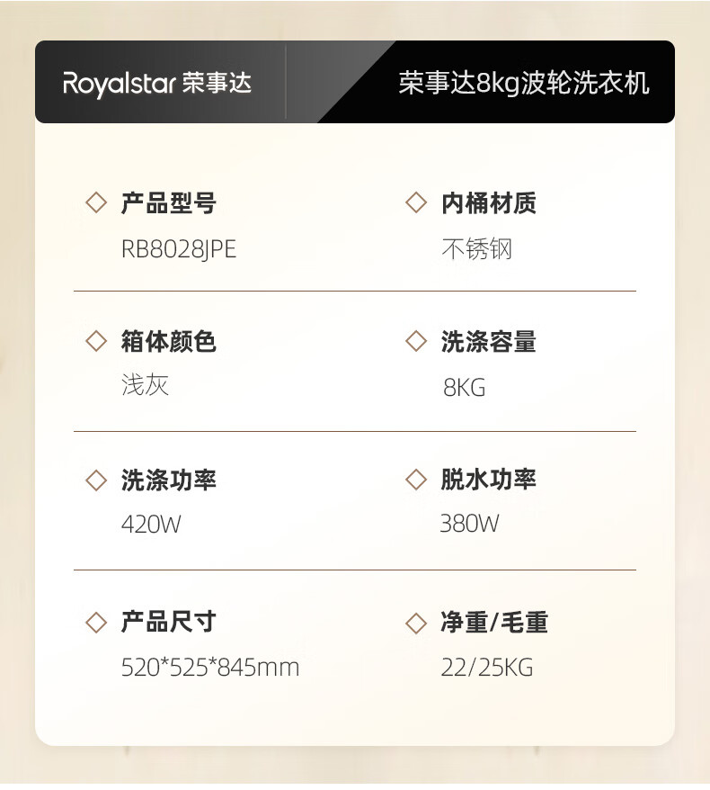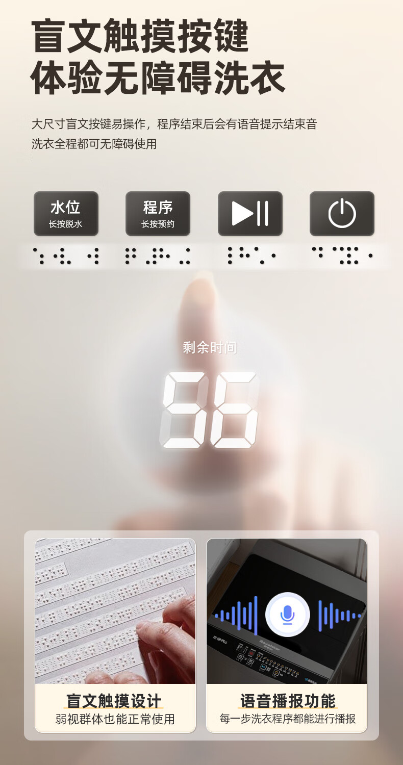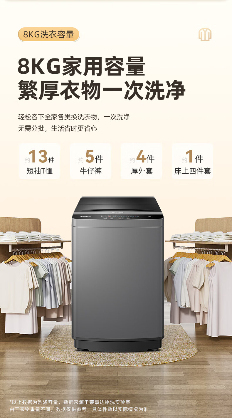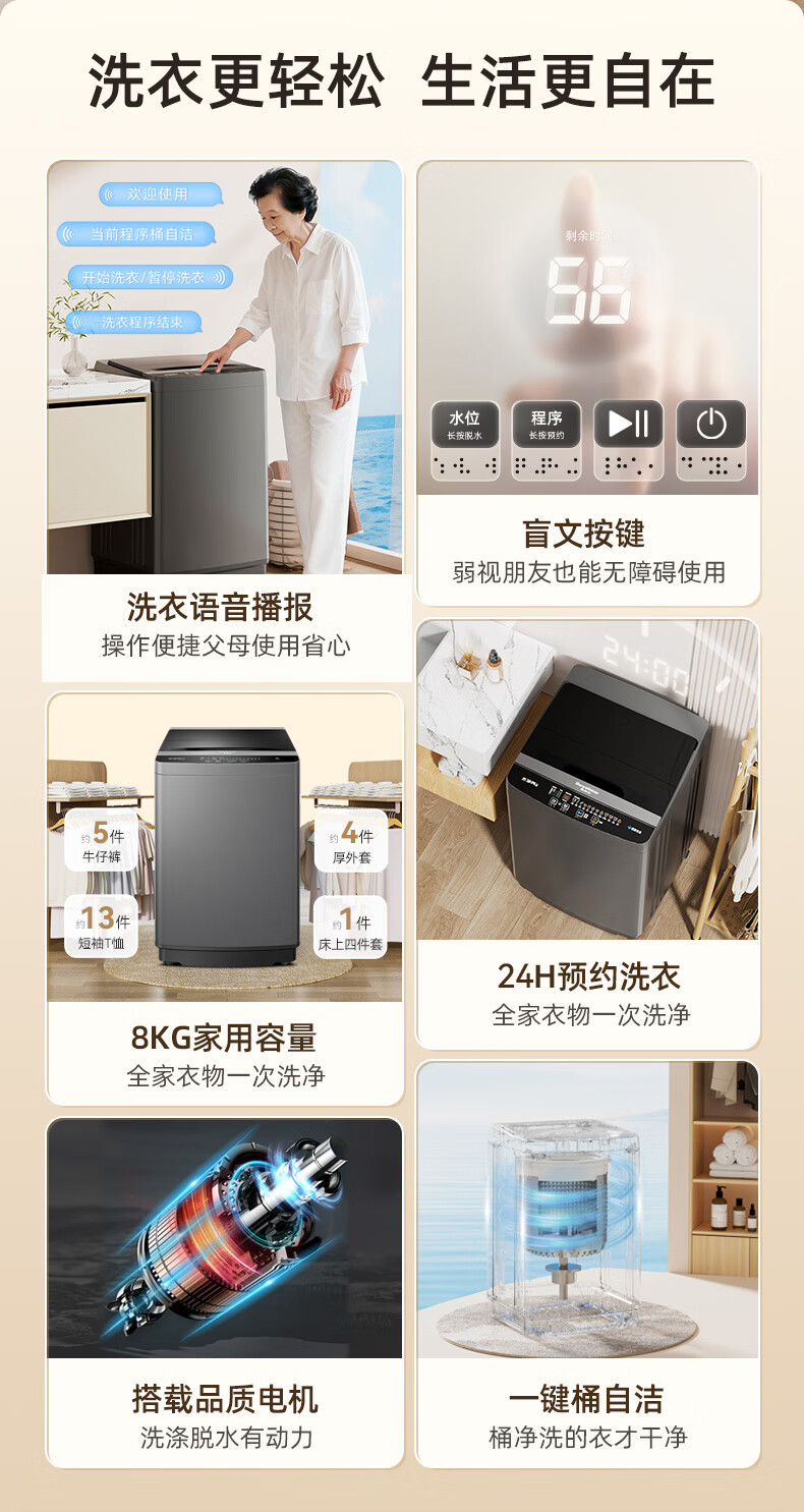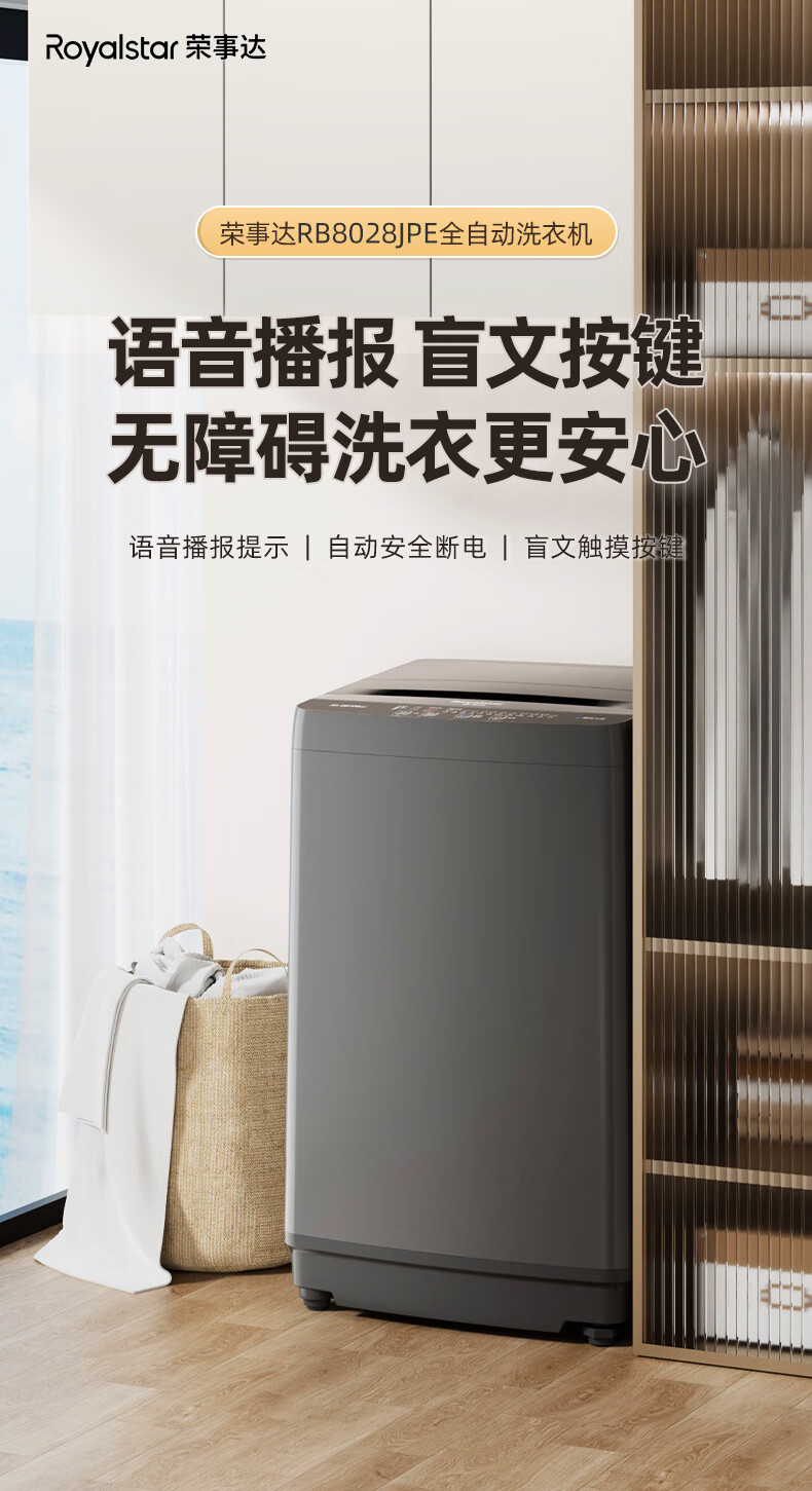 荣事达(Royalstar)洗衣机全自动波轮洗脱一体家用智能小型洗衣机一键脱水桶风干 8公斤【语音播报 盲文触摸】老人弱视推荐