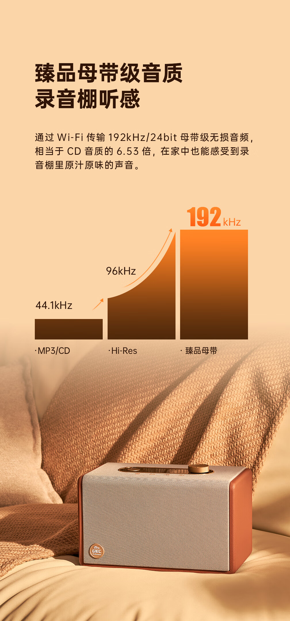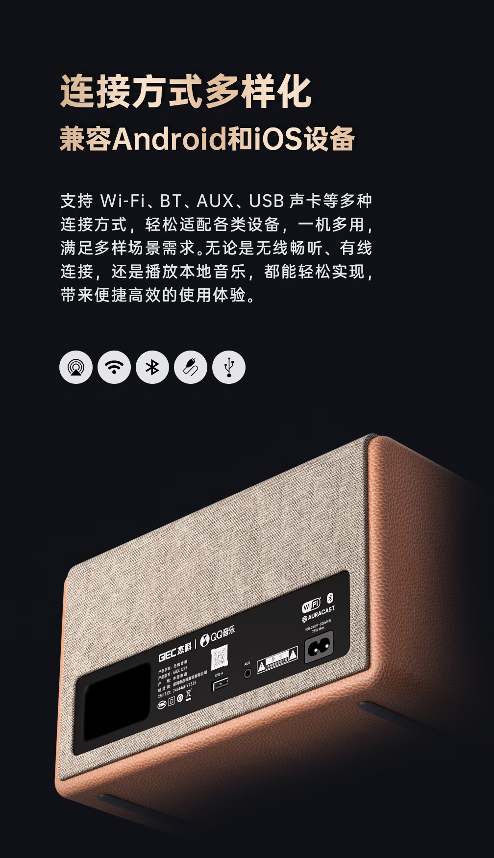 杰科Q25音箱 WiFi无线蓝牙 家用音响客厅 无损音质HIFI音响 Airplay2连接多房间音乐组合音箱 臻品音箱 摩卡棕