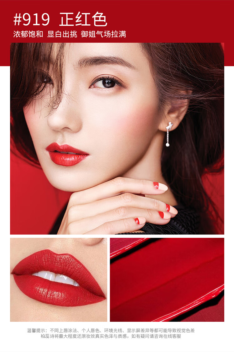 柏蕊诗鱼子酱口红雾锻唇膏锁色显白轻薄保湿不脱妆不沾杯818/919送女友 #919正红色[组合装:3.2g+2.8ml]