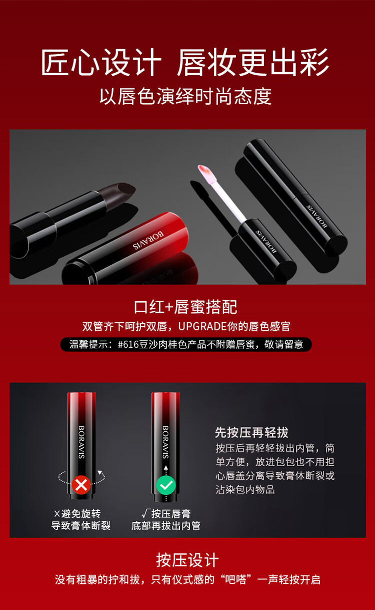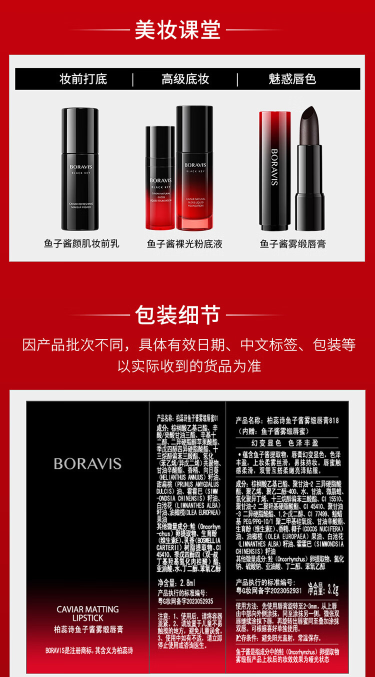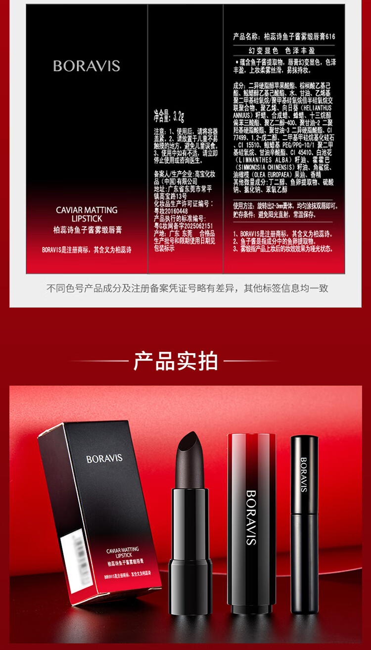 柏蕊诗鱼子酱口红雾锻唇膏锁色显白轻薄保湿不脱妆不沾杯818/919送女友 3支装|鱼子酱616口红+唇蜜粉色+唇蜜橘色