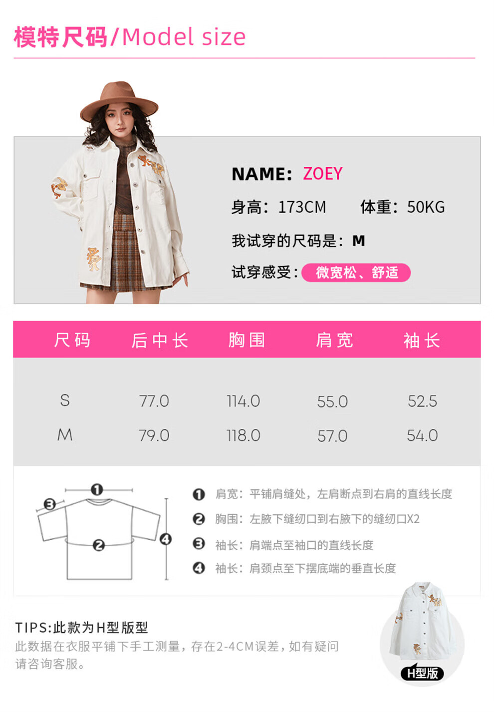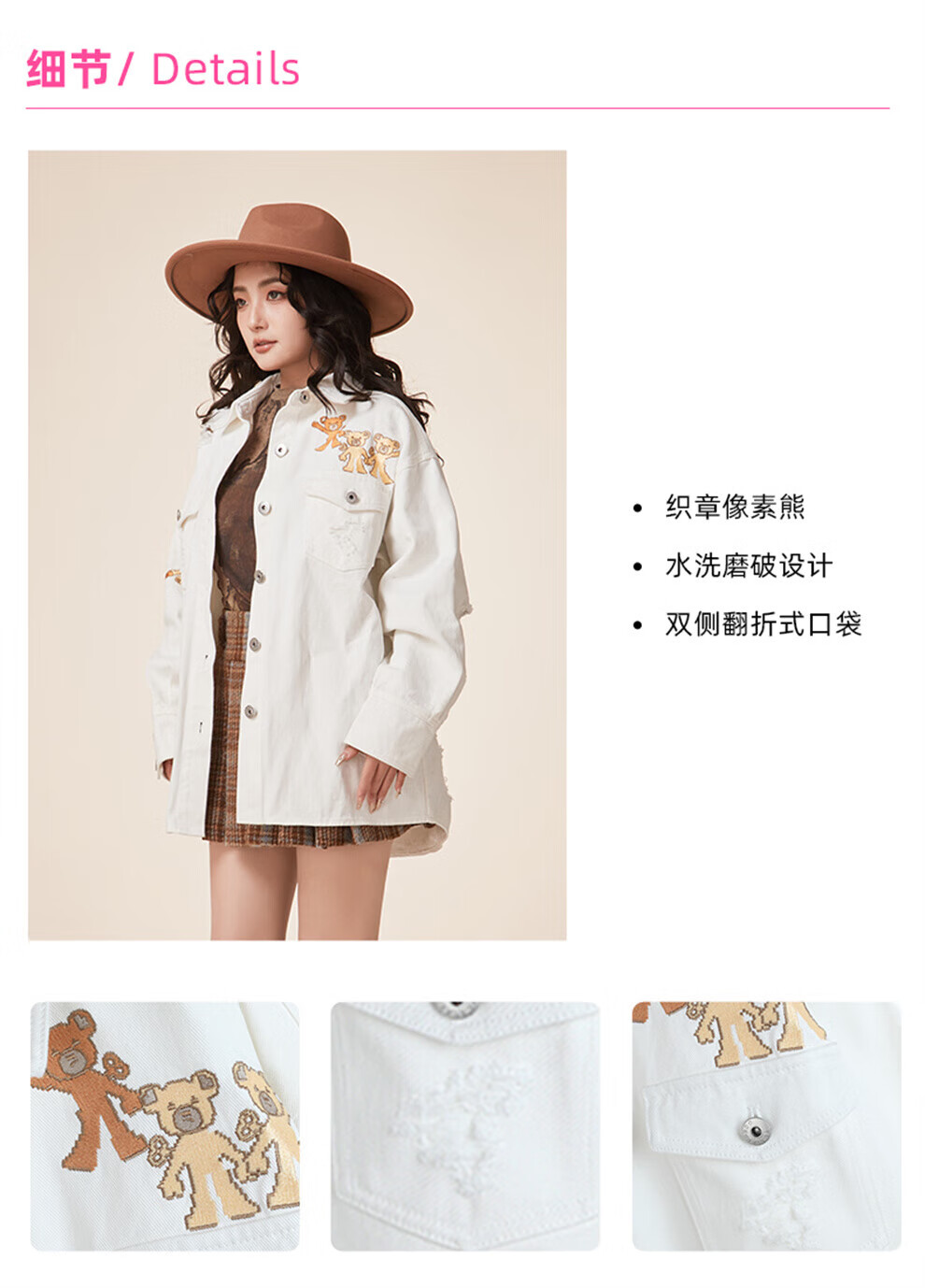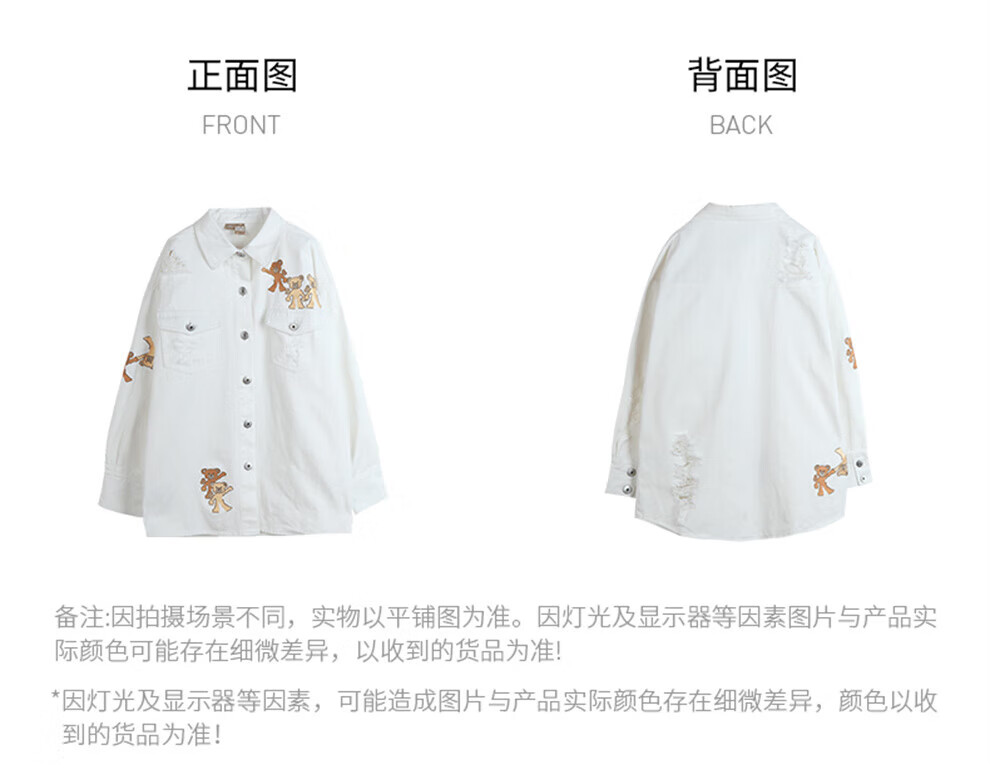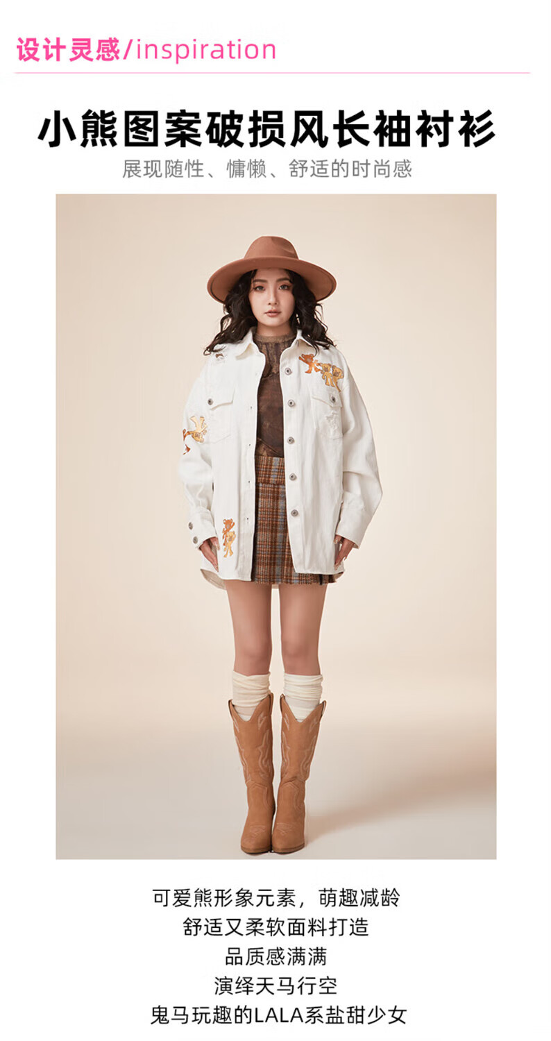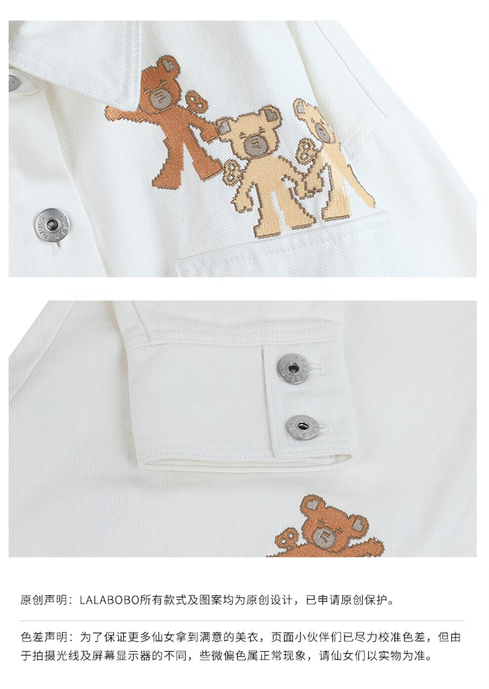 LALABOBO商场同款】小熊刺绣长袖衬衫纯棉宽松破洞外套上衣潮LBDA-WSWC12 米白 S
