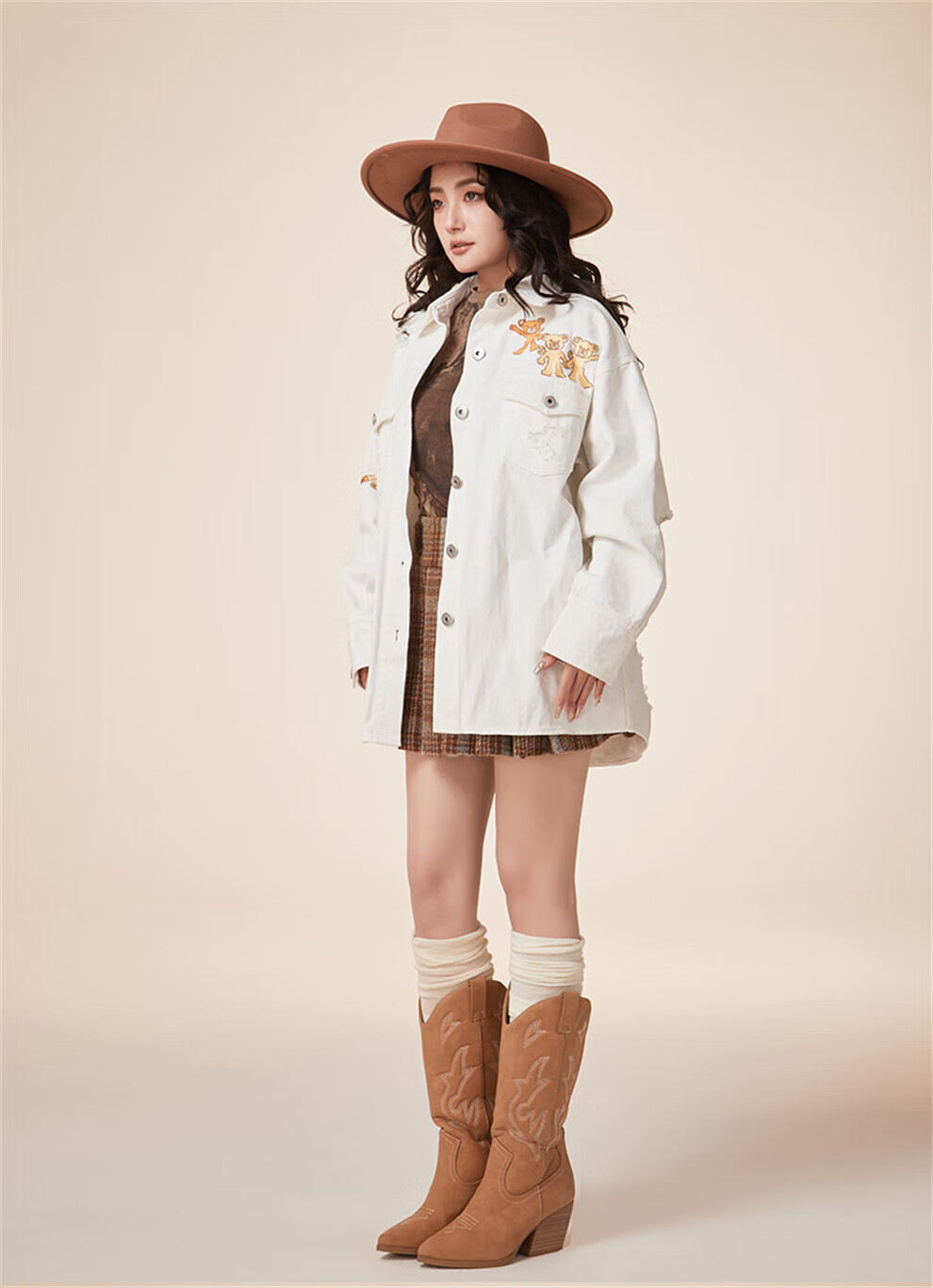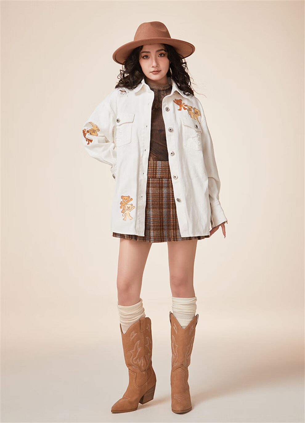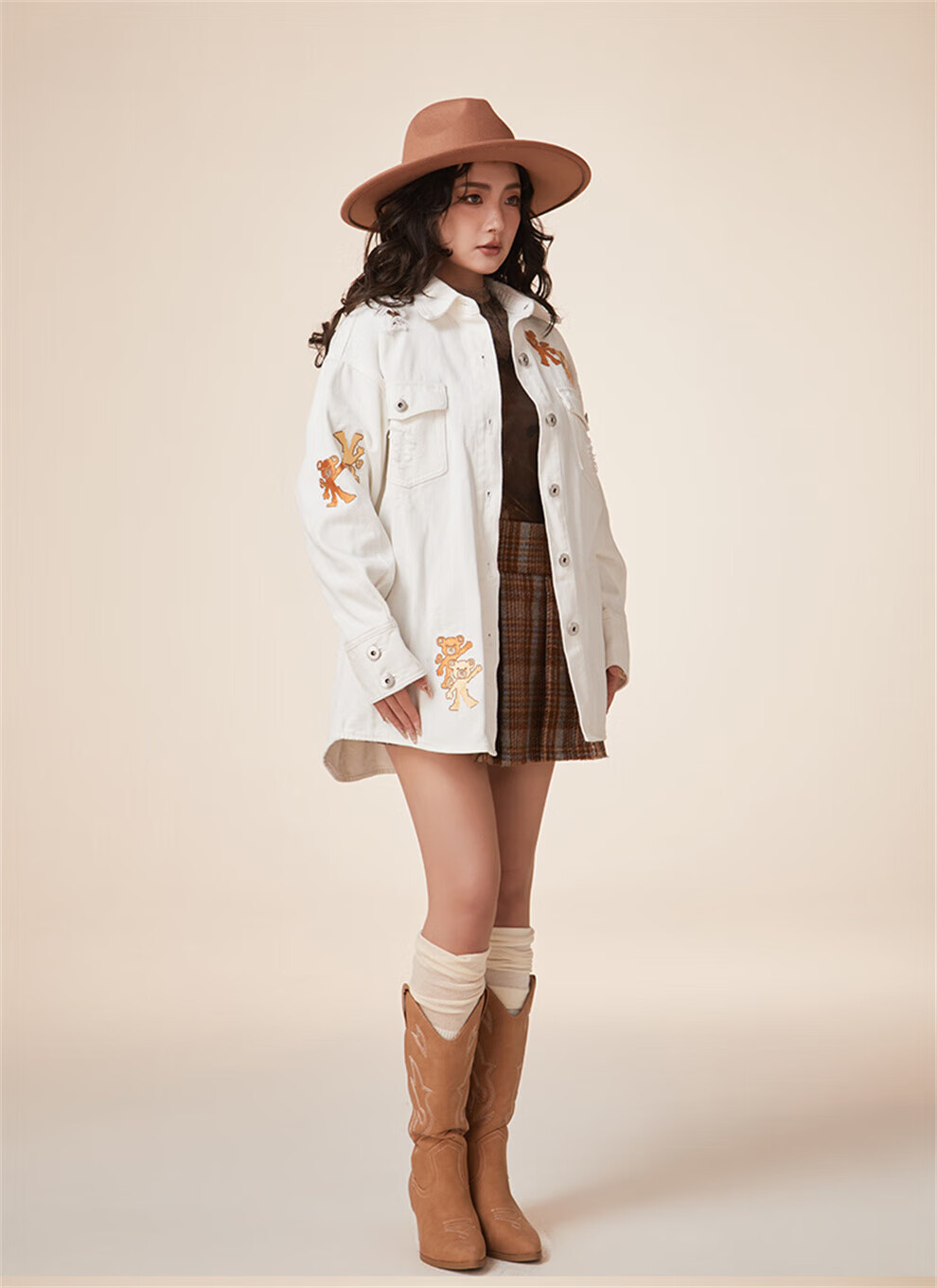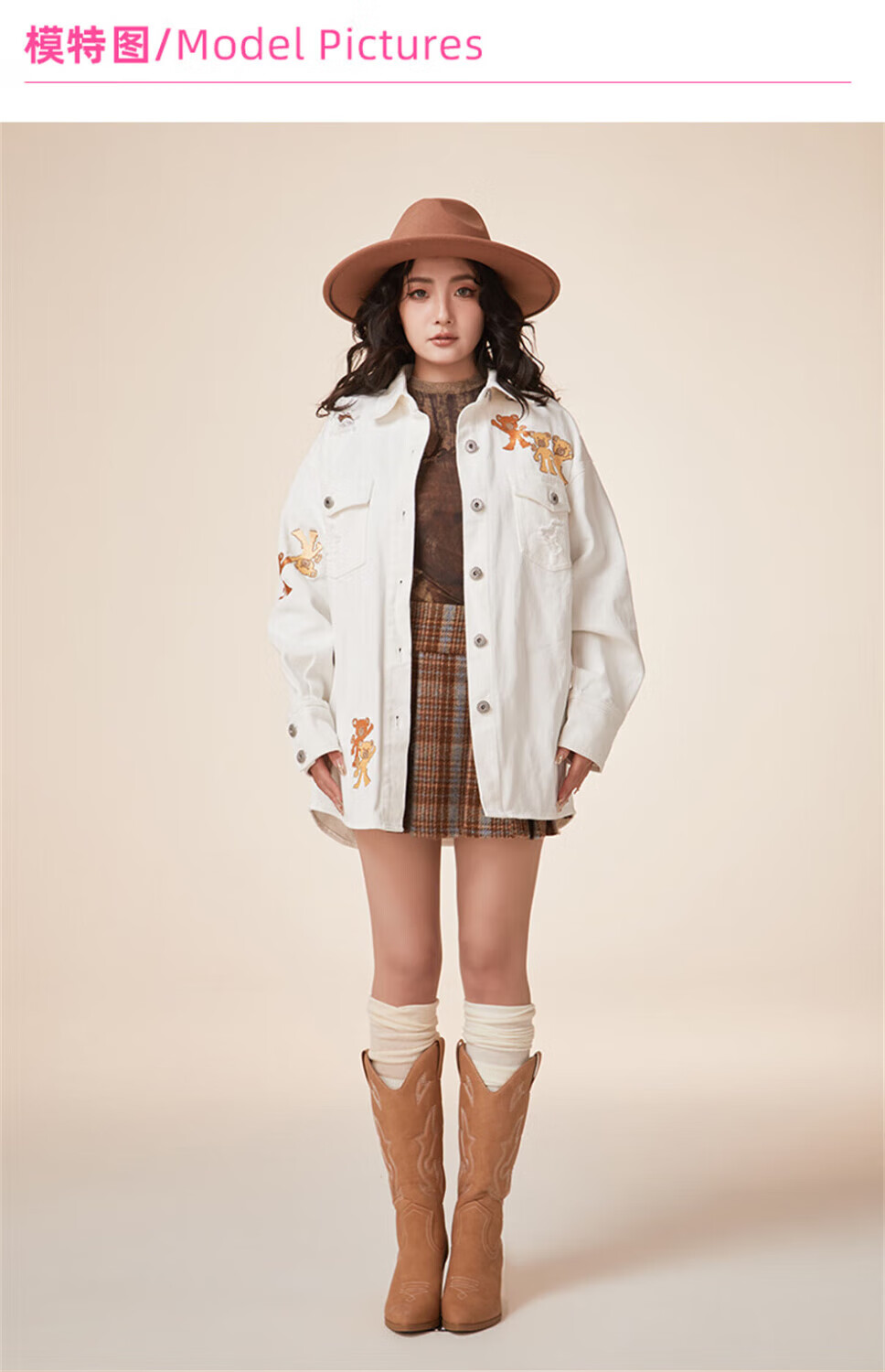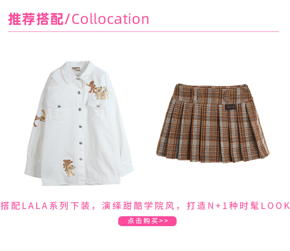 LALABOBO商场同款】小熊刺绣长袖衬衫纯棉宽松破洞外套上衣潮LBDA-WSWC12 米白 S