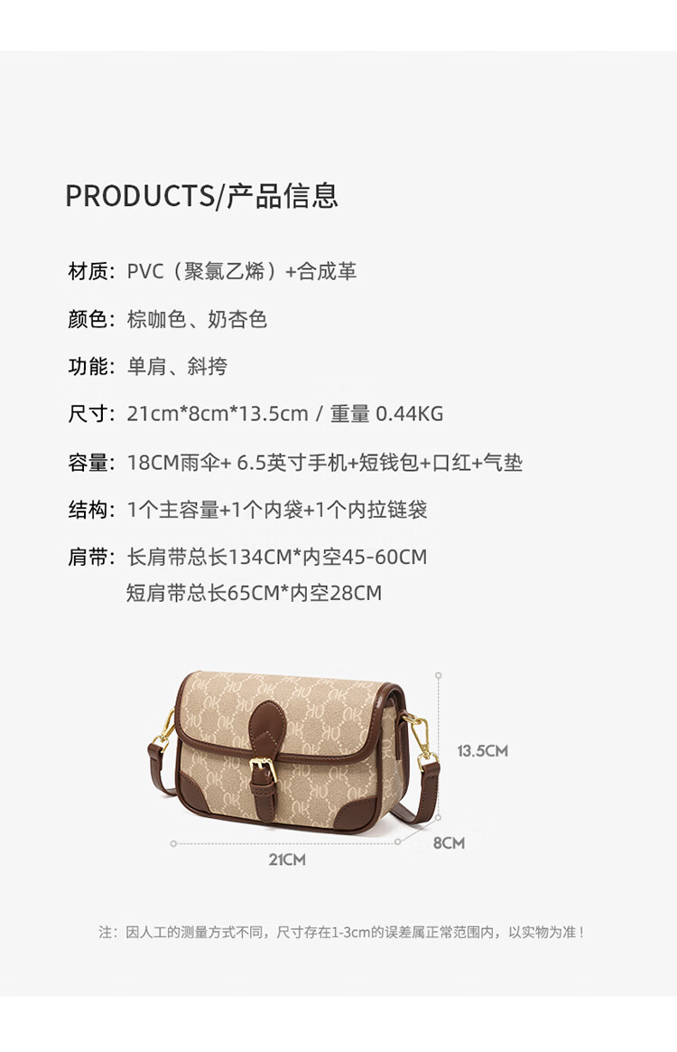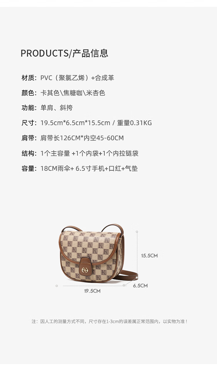 CHEARLY KITITY包包女包2025新款复古小方包简约斜挎包百搭单肩包生日礼物送女友 CK3000230-卡其咖