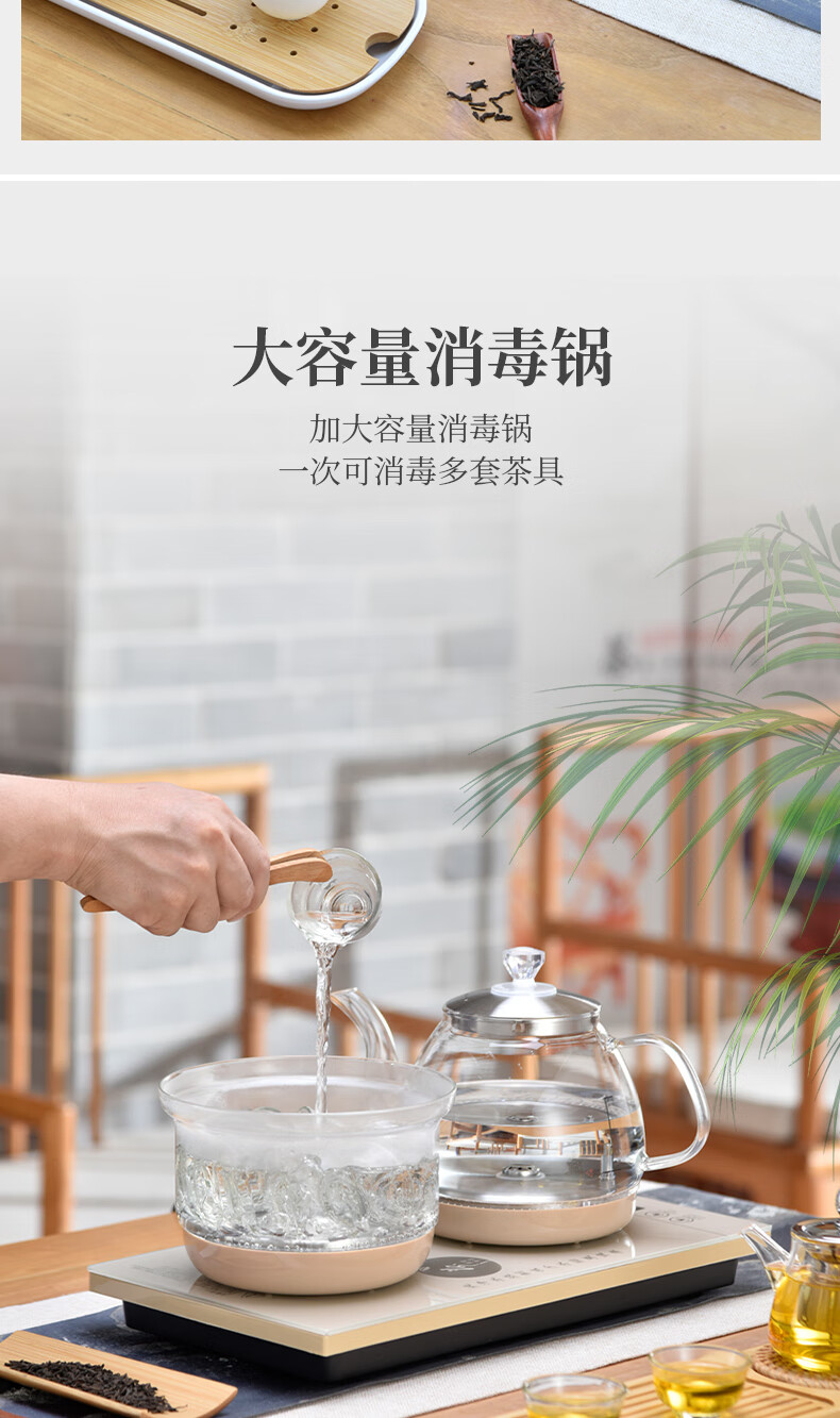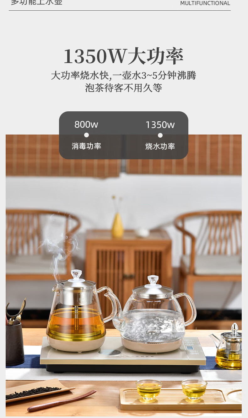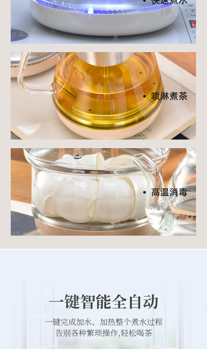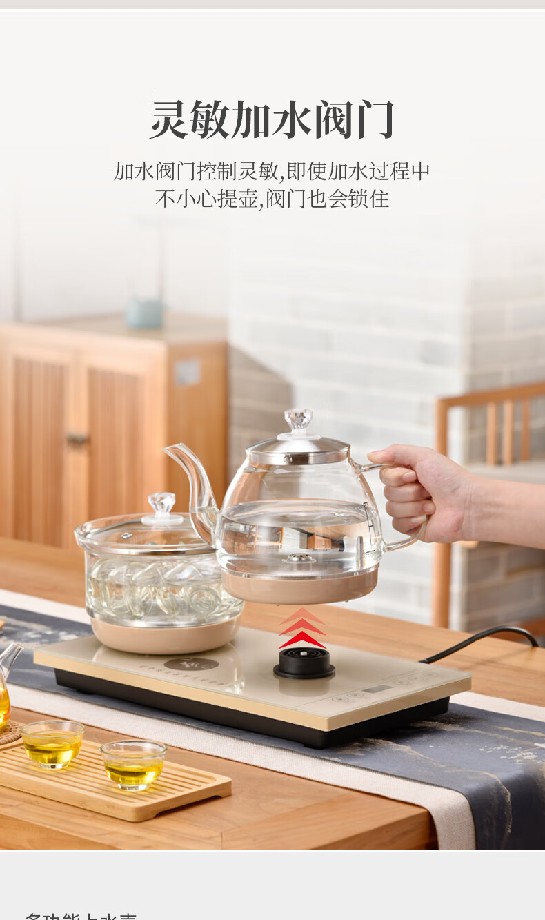 金格仕全自动底部上水电热水壶 家用玻璃烧水壶 台嵌两用电磁茶炉 茶台一体电茶炉套装带蓝光桶装水专用 1L 单边底上水(蓝光))消毒款 23X37cm