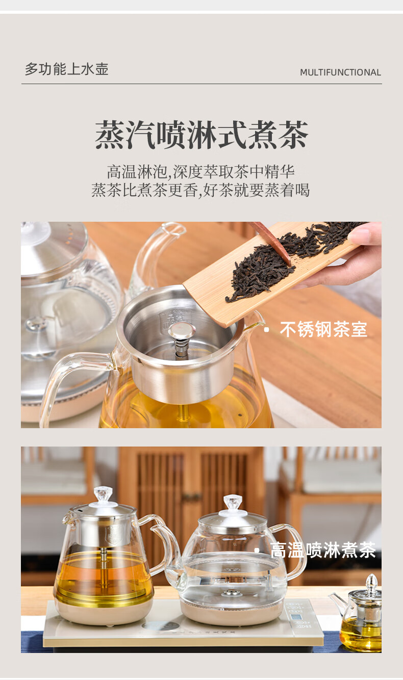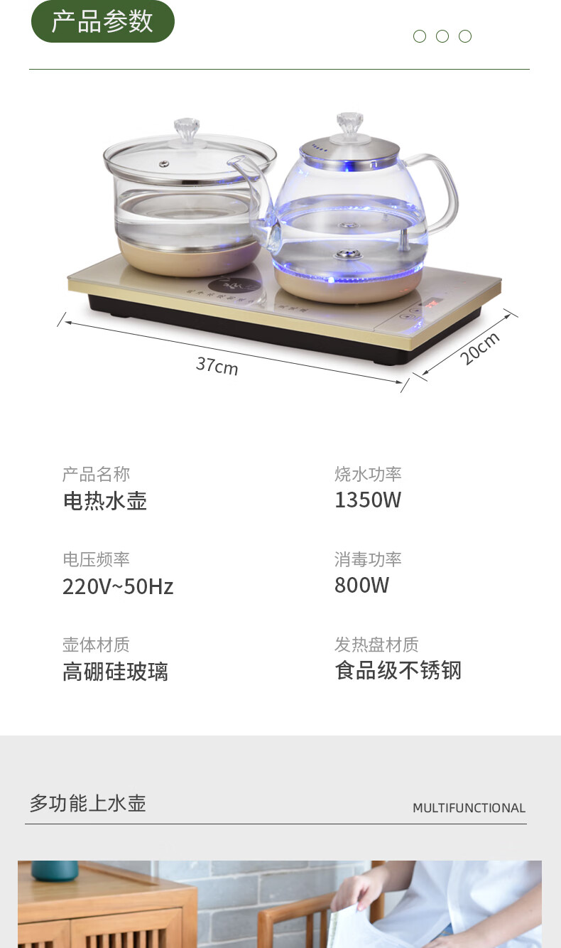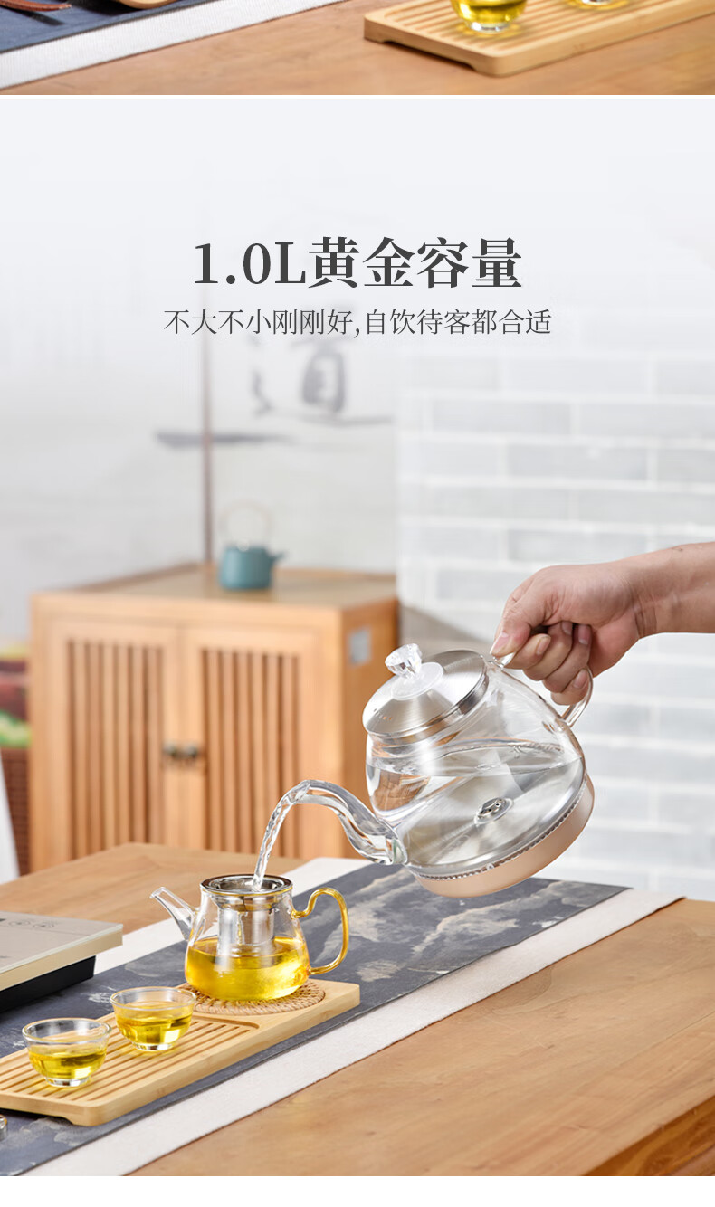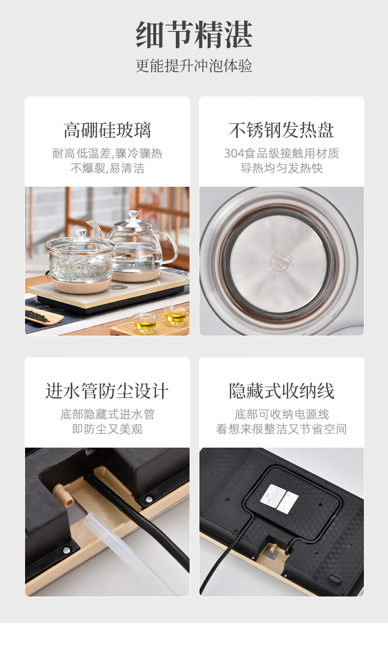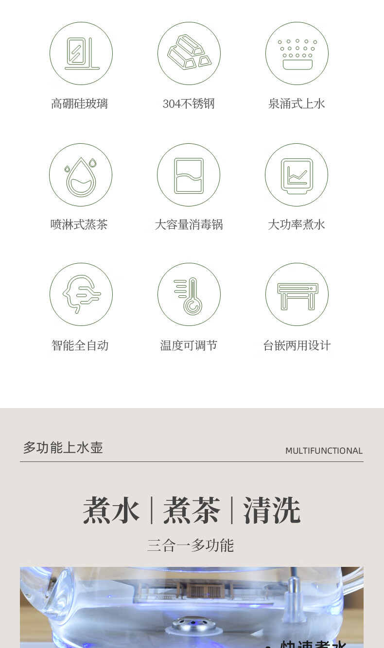 金格仕全自动底部上水电热水壶 家用玻璃烧水壶 台嵌两用电磁茶炉 茶台一体电茶炉套装带蓝光桶装水专用 1L 单边底上水(蓝光))消毒款 23X37cm
