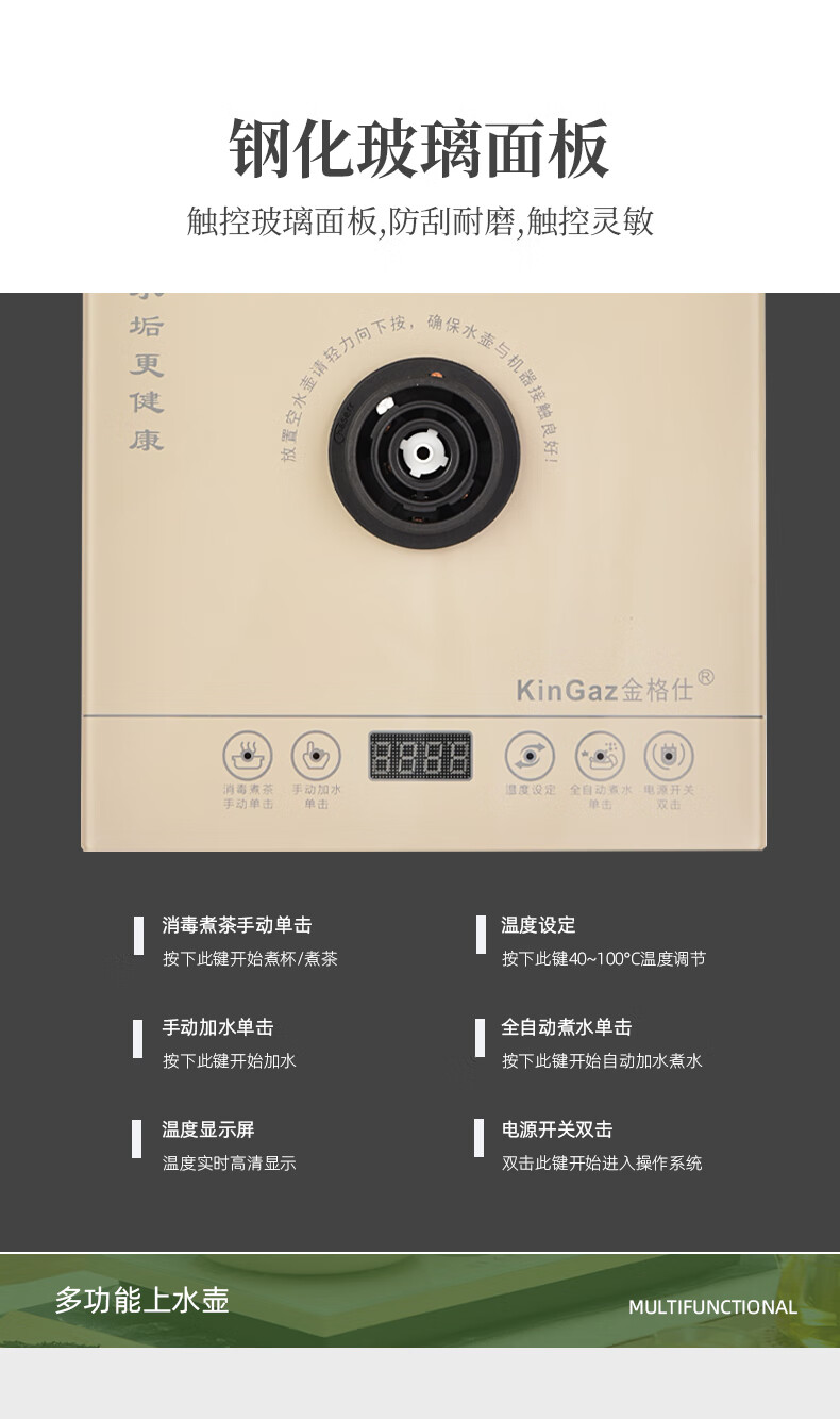 金格仕(KinGaz)自动上水茶台嵌入式烧水壶 37X23大理石纹路玻璃面板底部上水电热水壶家用玻璃茶台一体电茶炉 1L 大理石纹【23X37】白色-蒸茶款