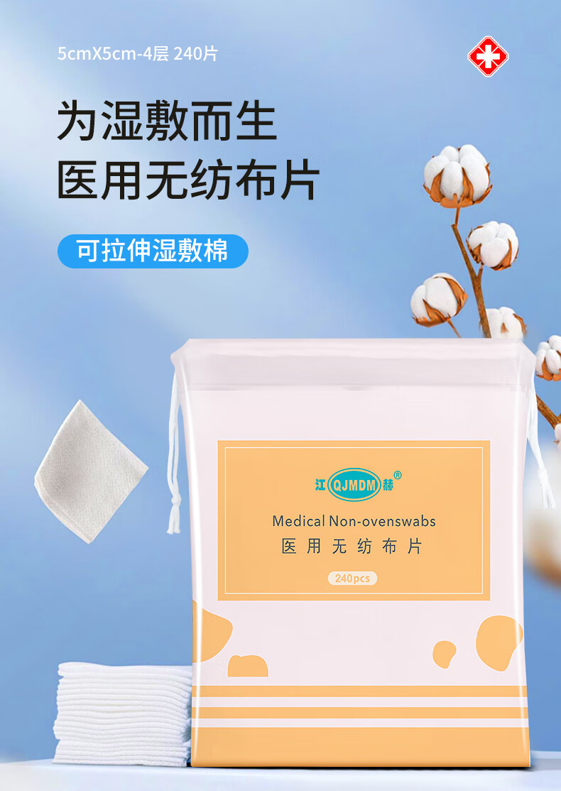 江赫医用湿敷棉片化妆棉可拉伸医美术后敷脸美容巾柔软亲肤敏感肌可用 1袋【240片/袋】