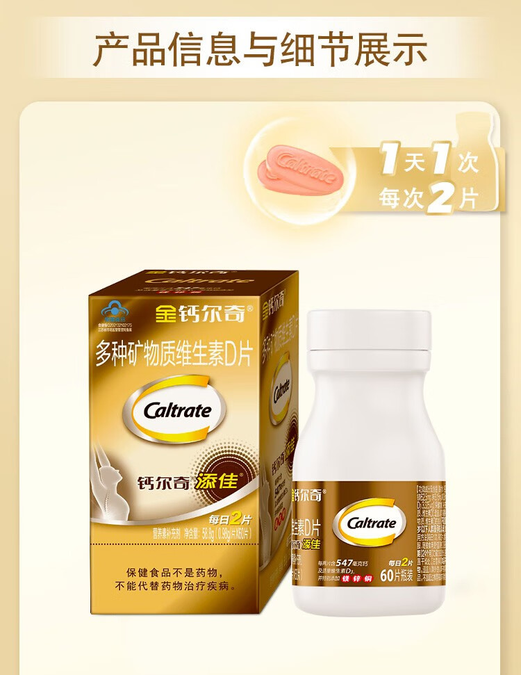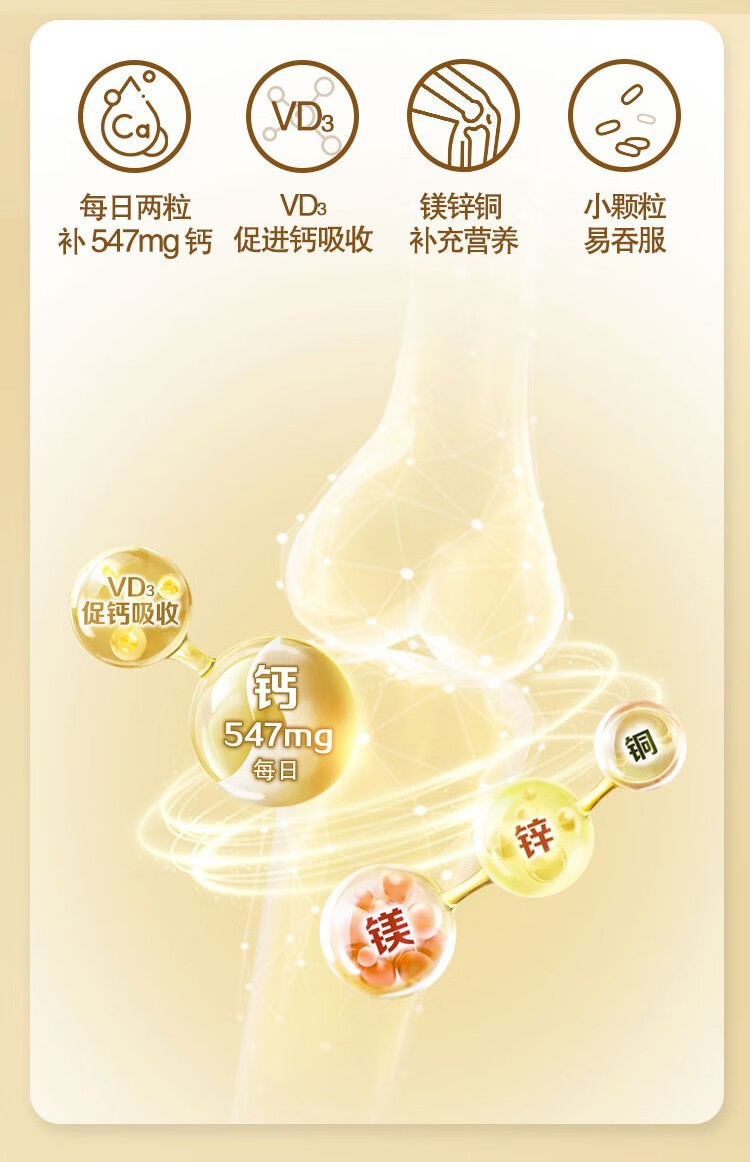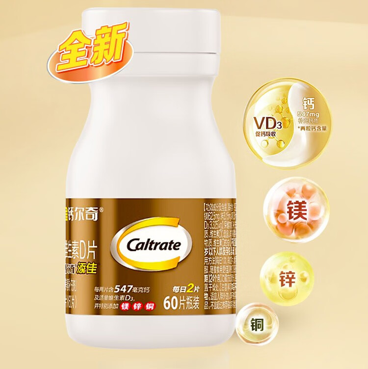 钙尔奇添佳片钙片 成人中老年 补钙镁锌铜维生素D 骨骼健康营养 2盒/共120粒