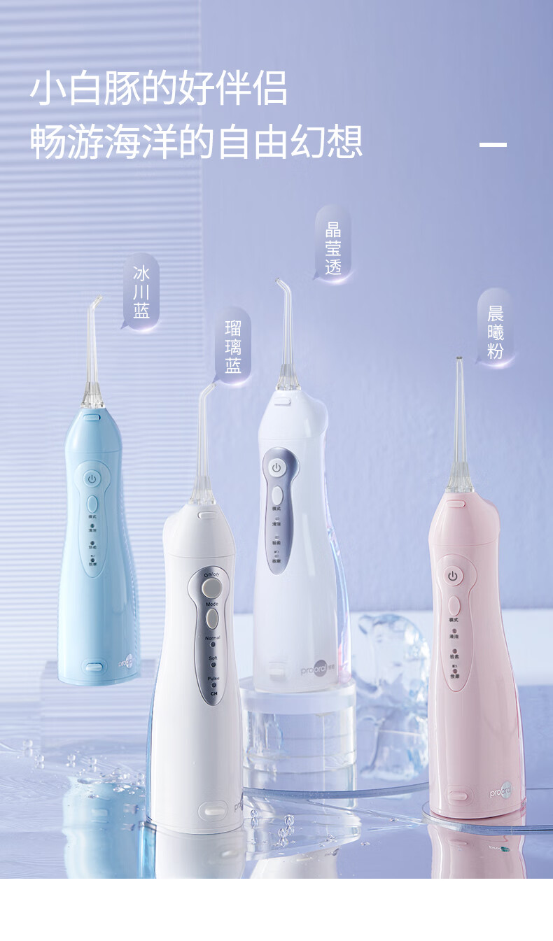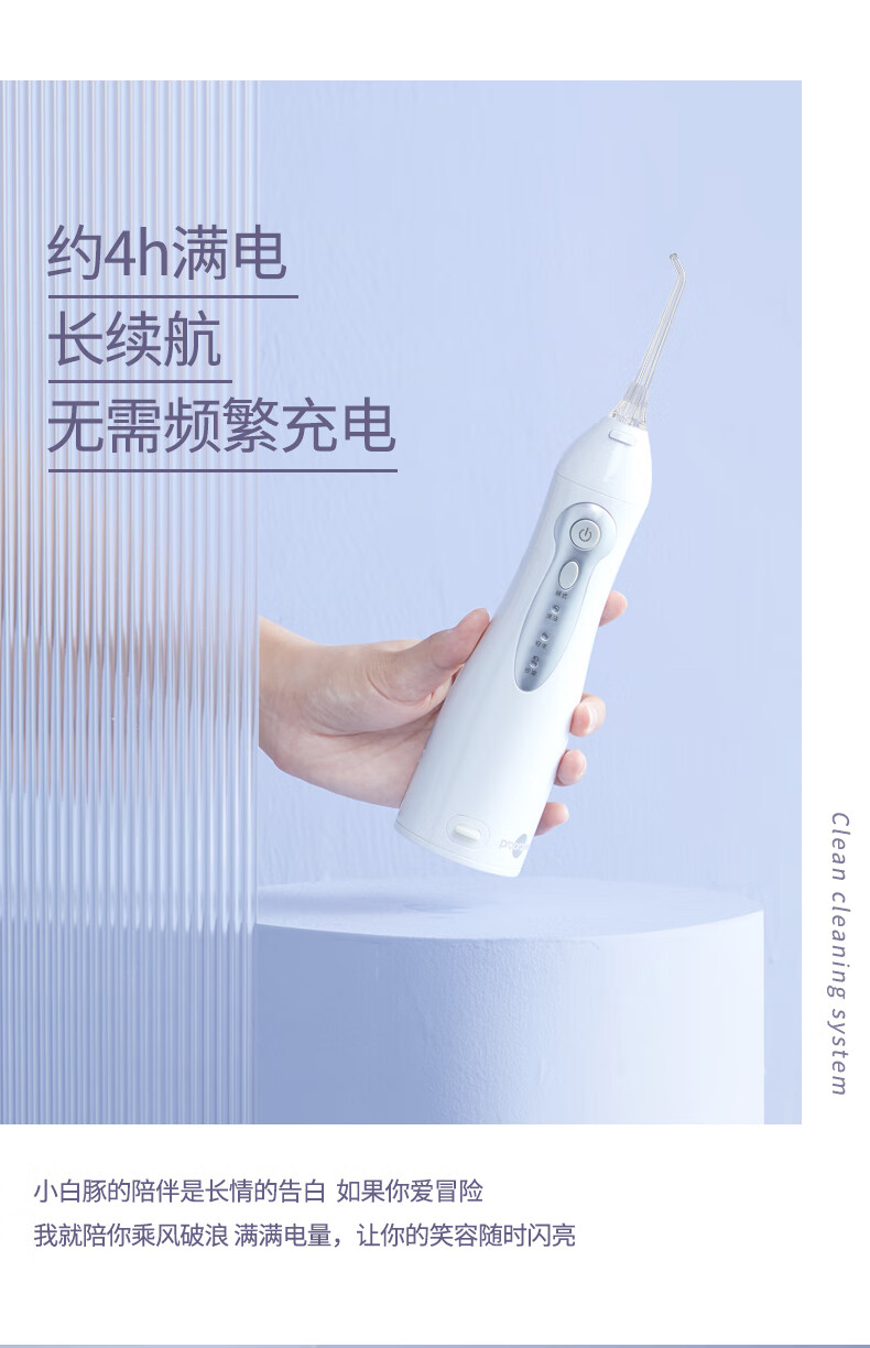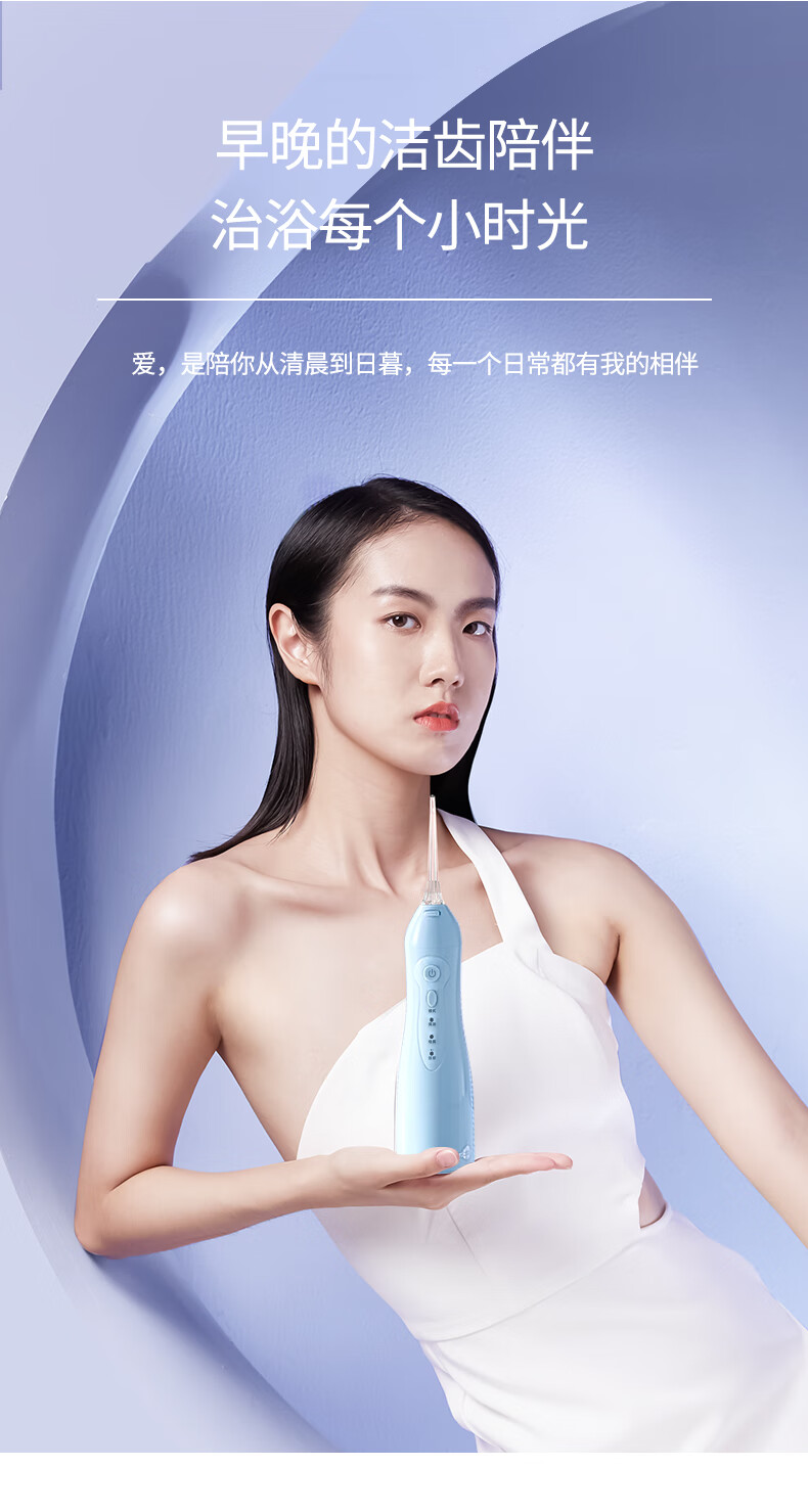 博皓电动冲牙器洗牙器冲洗器牙齿清洁器水牙线牙垢去除工具口腔冲水器清牙器正畸 家用便携式 实用礼物 天空蓝