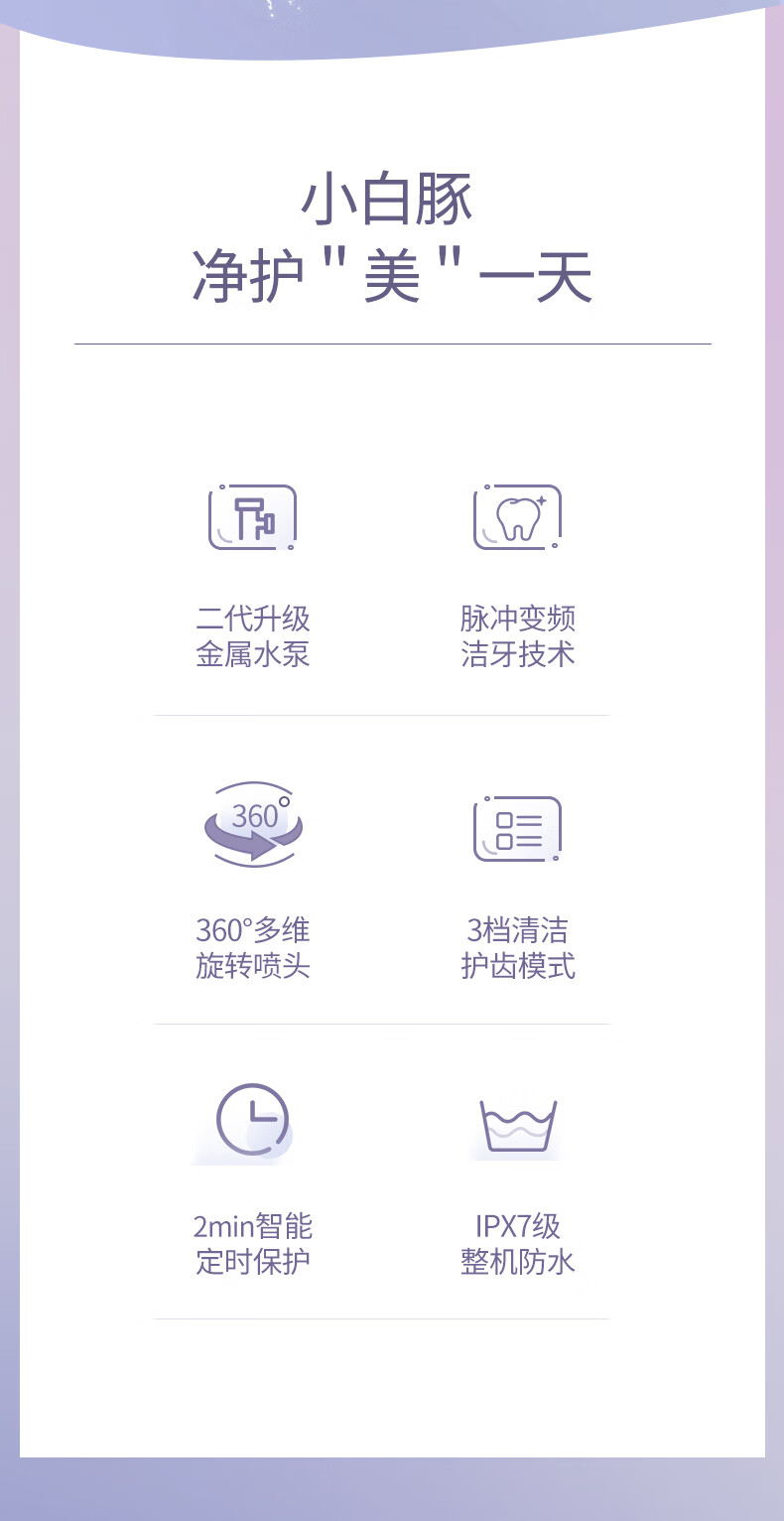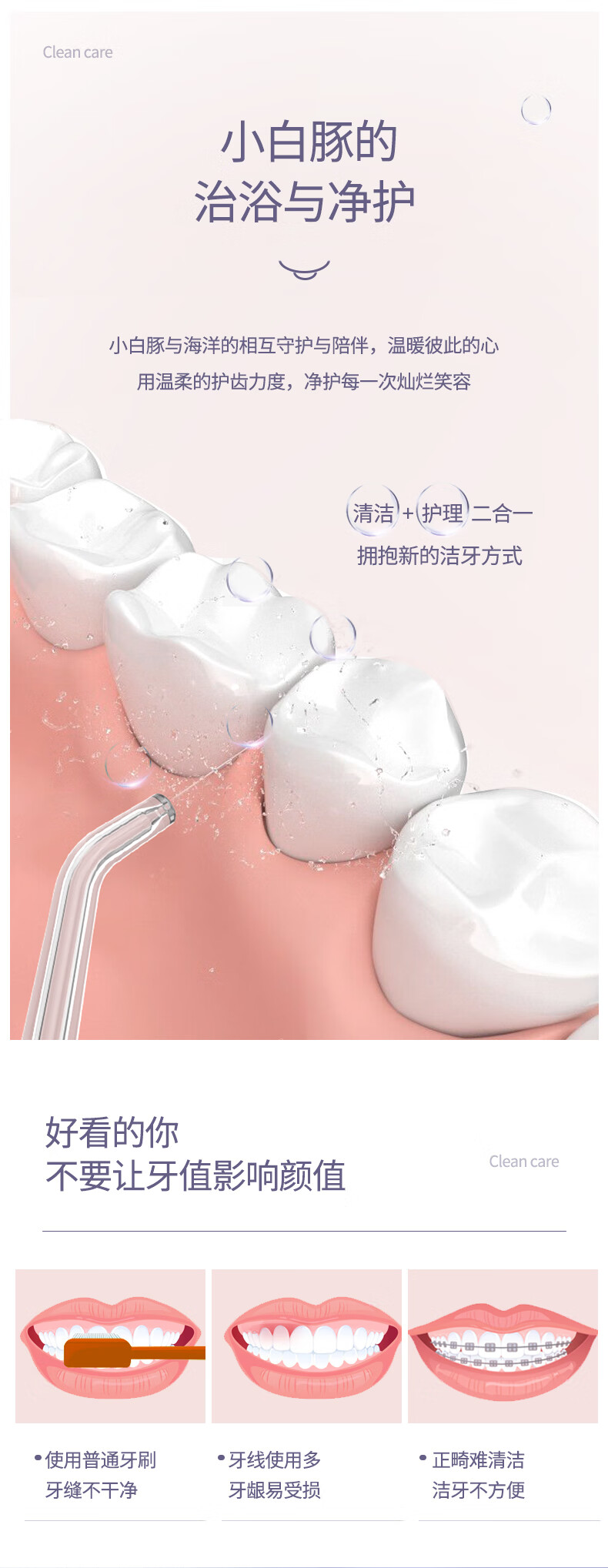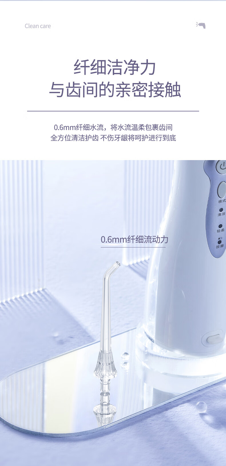 博皓电动冲牙器洗牙器冲洗器牙齿清洁器水牙线牙垢去除工具口腔冲水器清牙器正畸 家用便携式 实用礼物 天空蓝