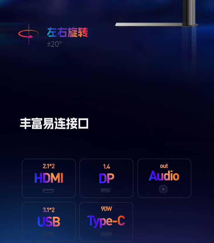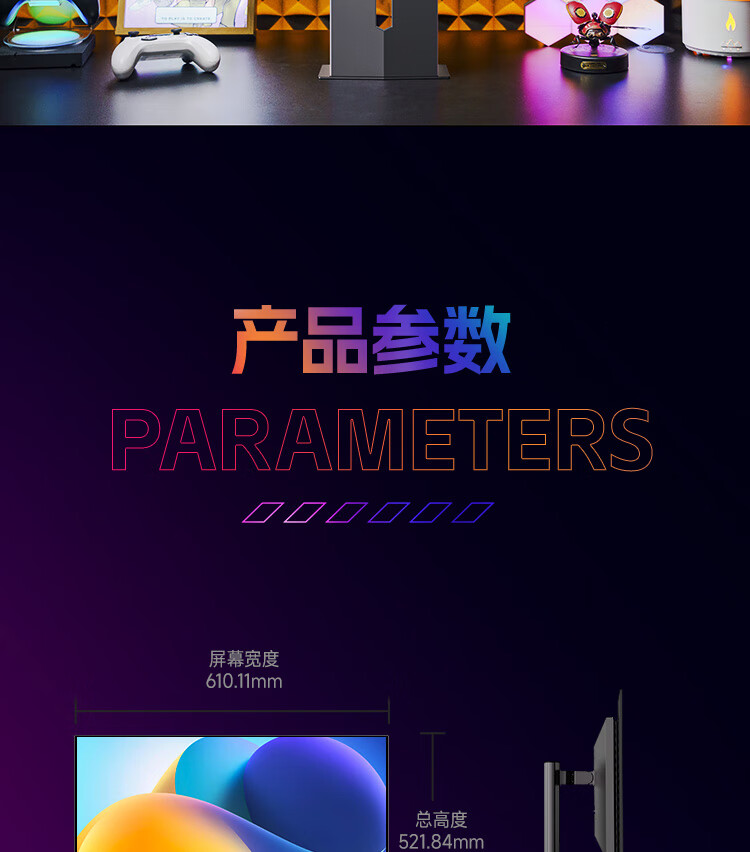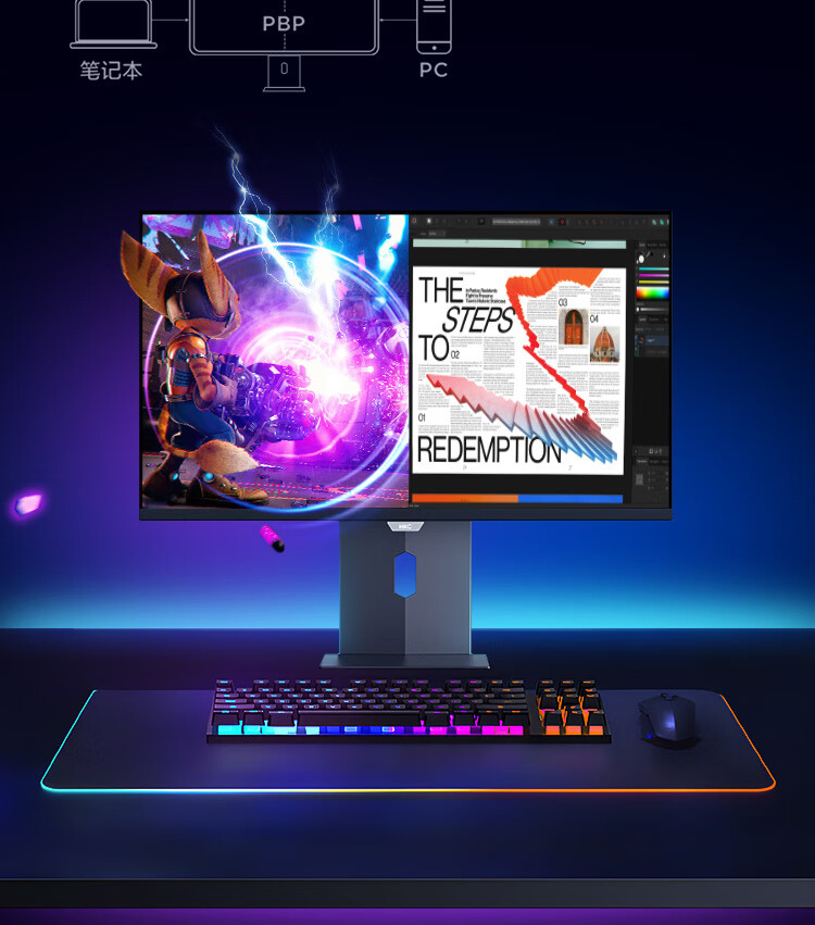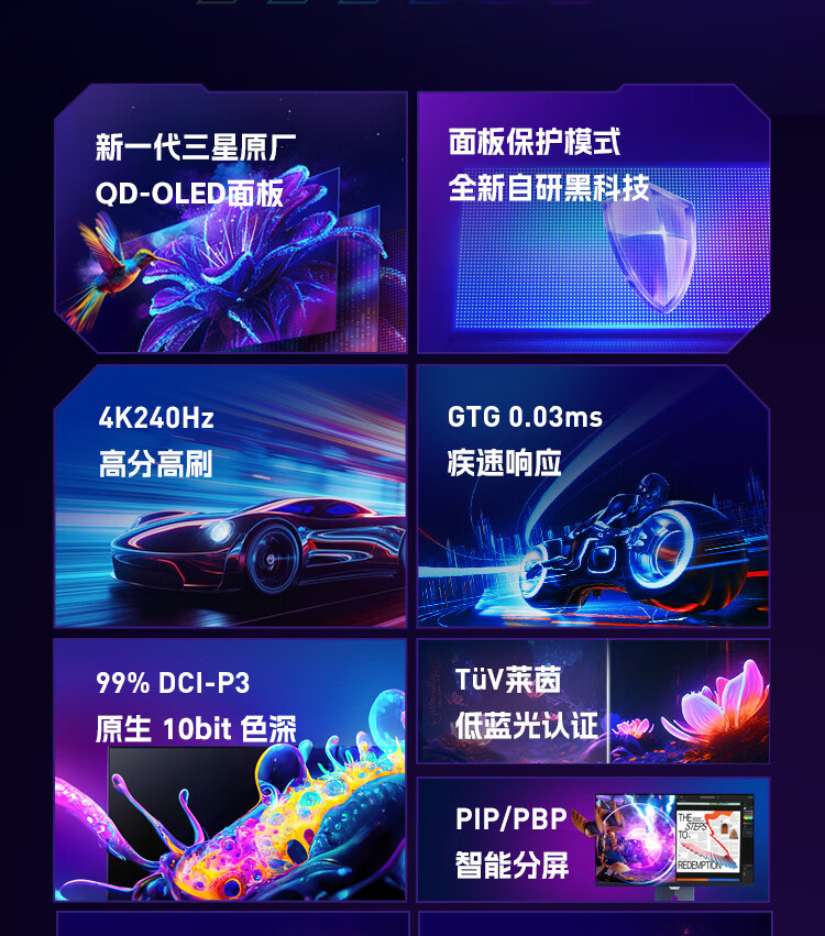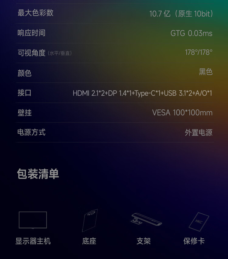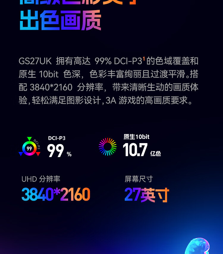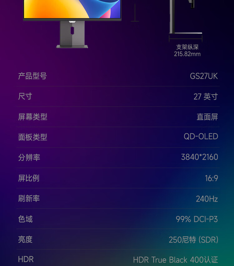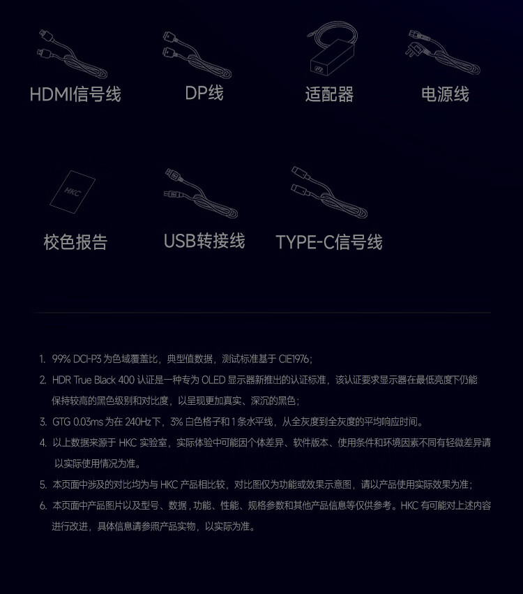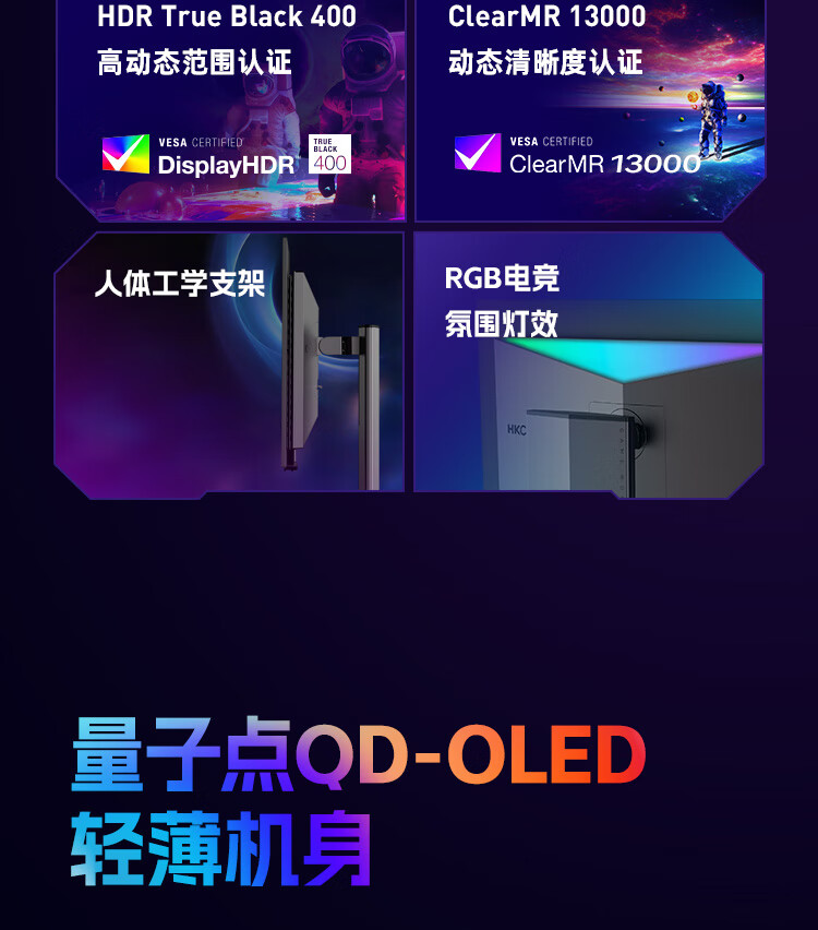 HKC 26.5英寸QD-OLED屏幕4K超清240Hz原生10bit HDR400电竞Type-C90W旋转升降27台式电脑显示器GS27UK