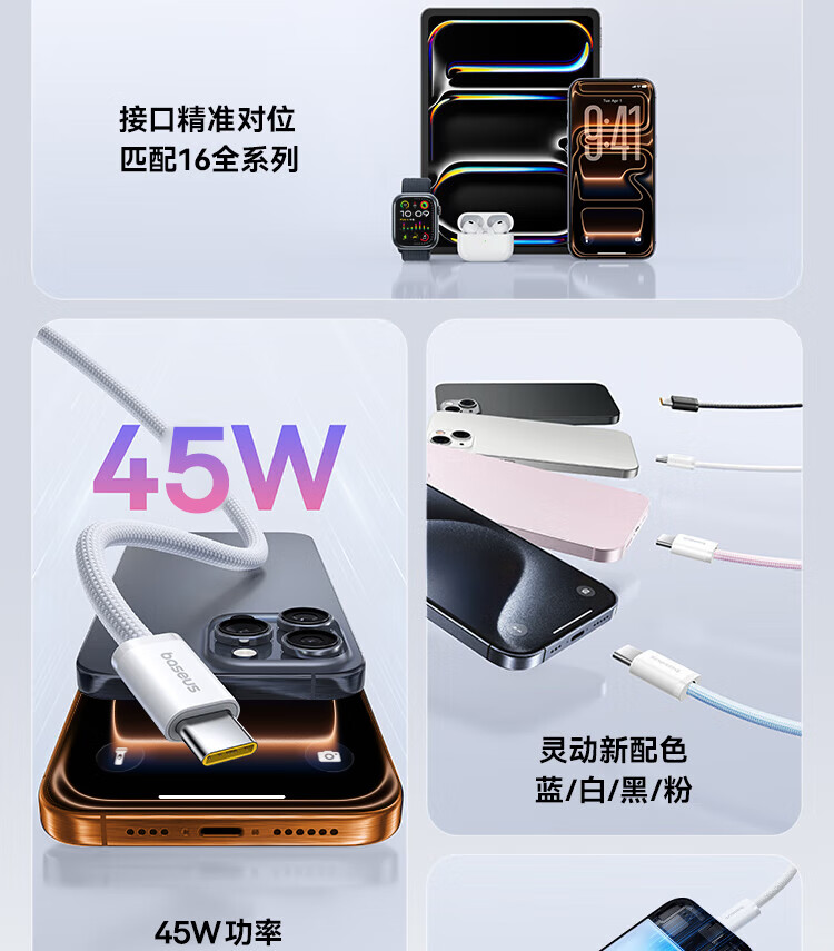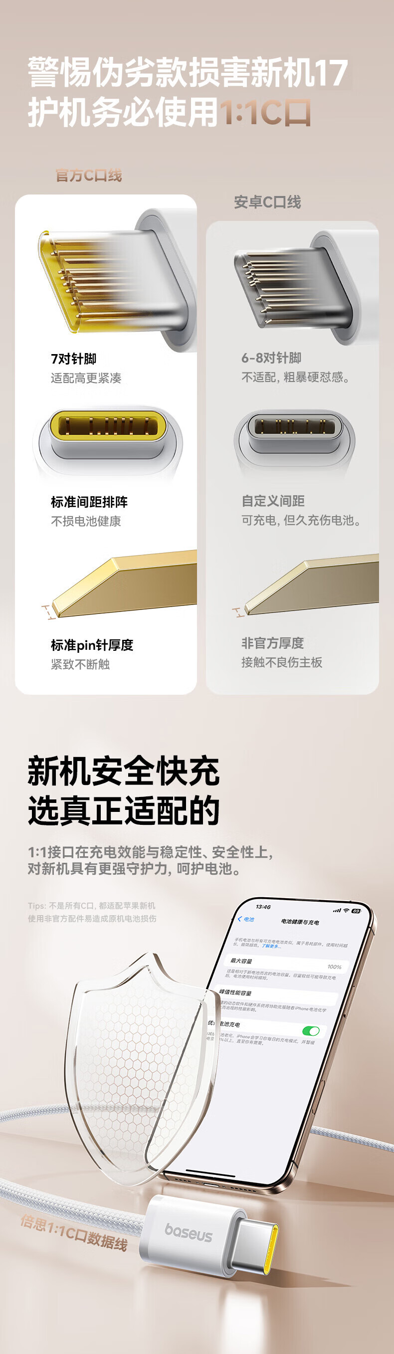 倍思苹果17/16/15充电线PD100W快充线ctoc数据线5A通用苹果17/16e15手机ipad pro/Macbook笔记本 1米白