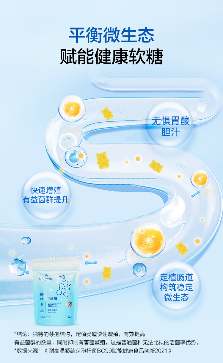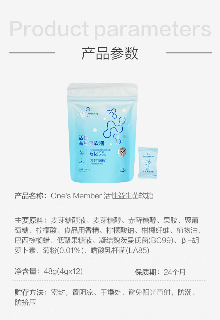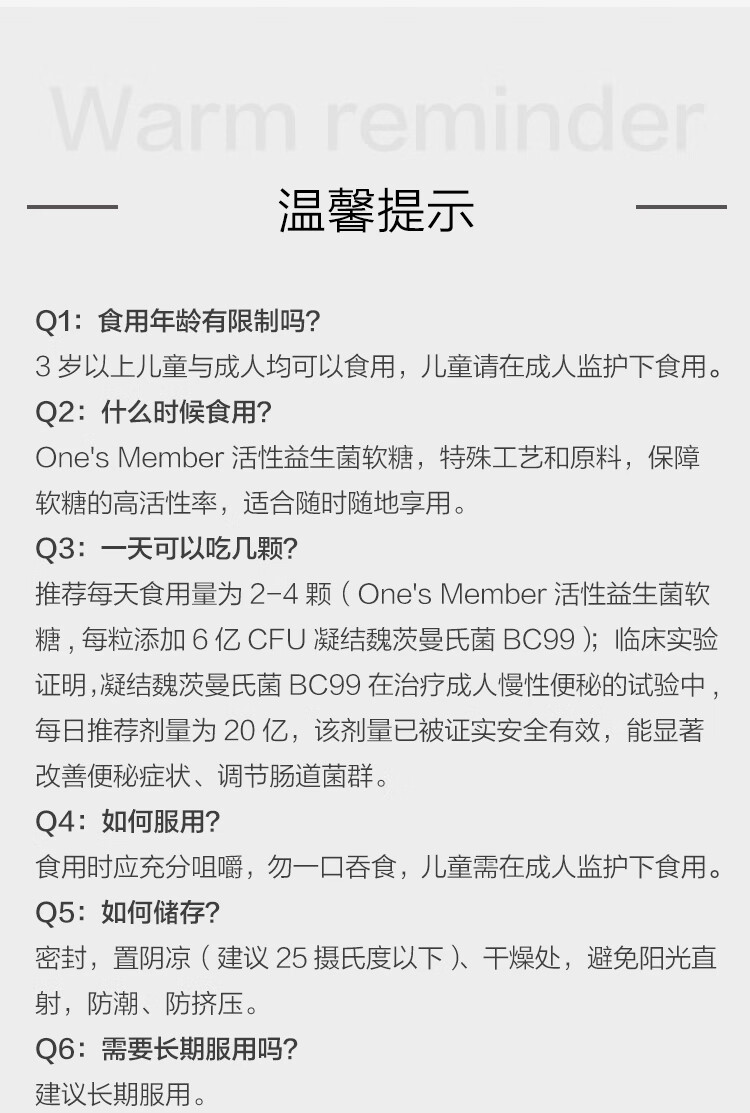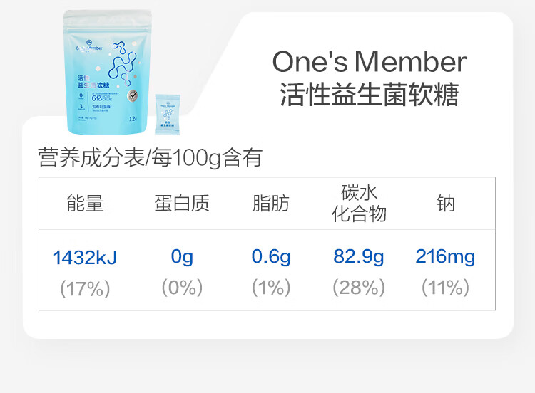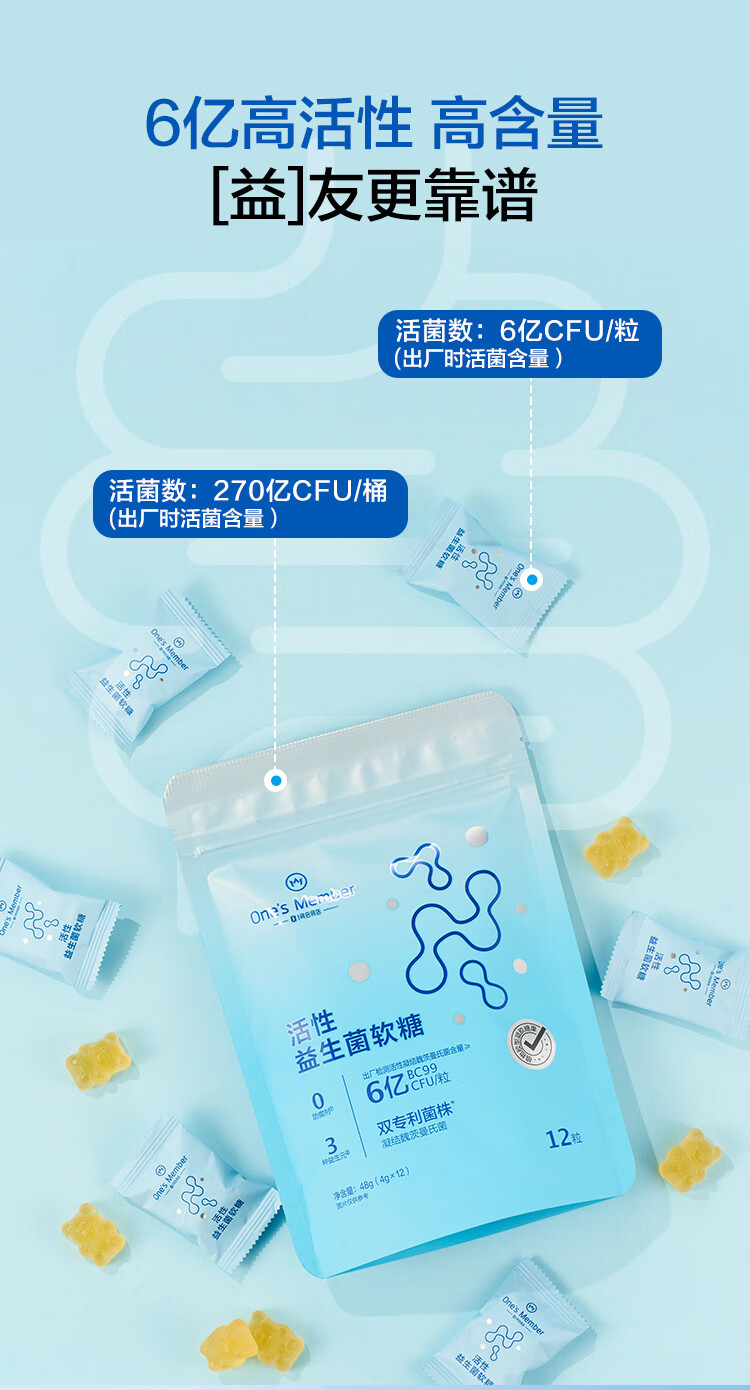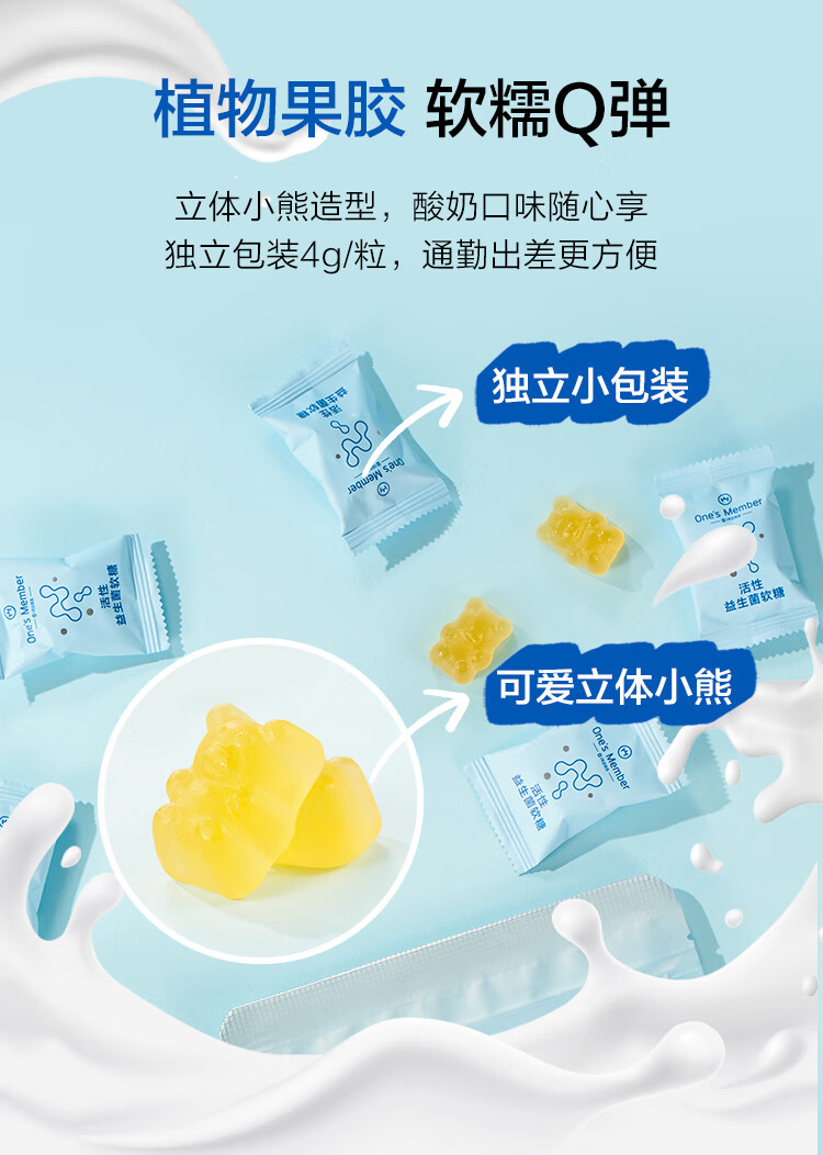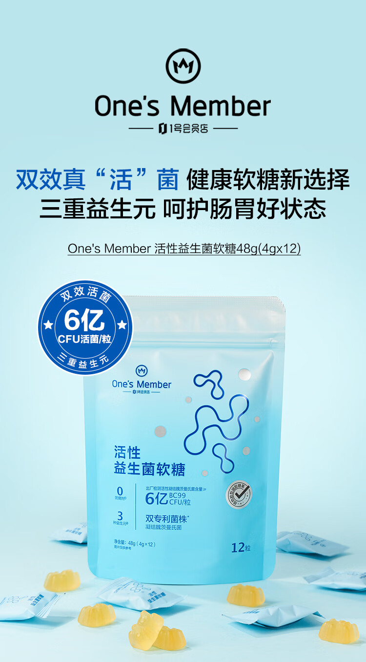 1号会员店(One's Member)活性益生菌呵护肠动力噗噗舒畅消化Q弹轻盈软糖 酸奶味 12粒