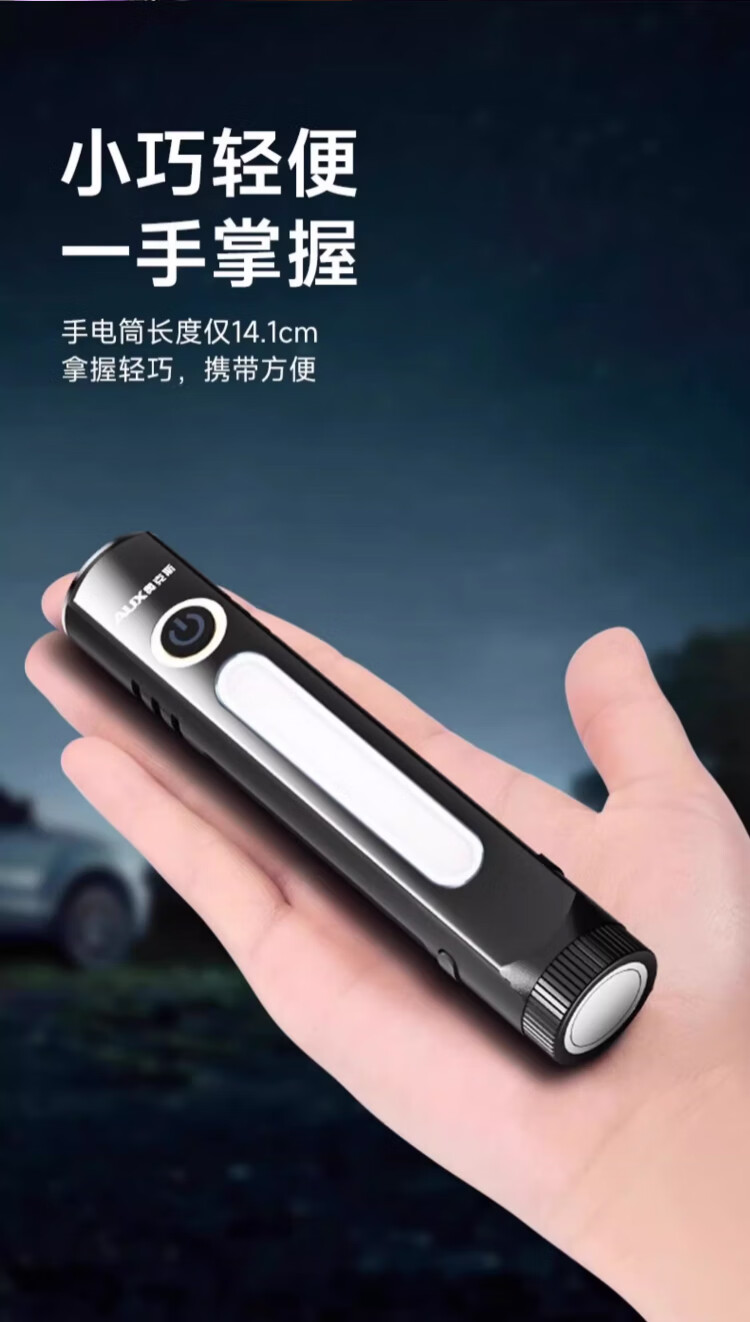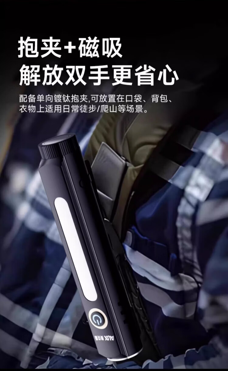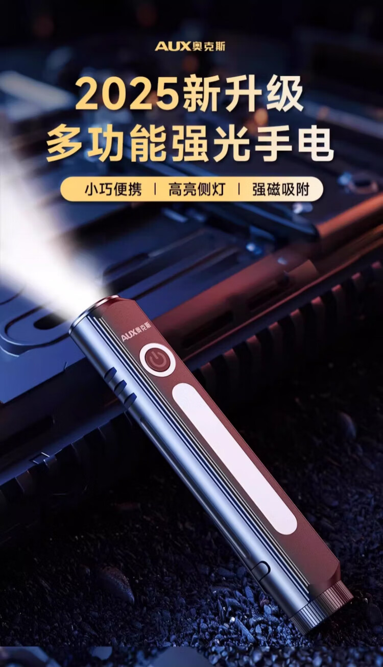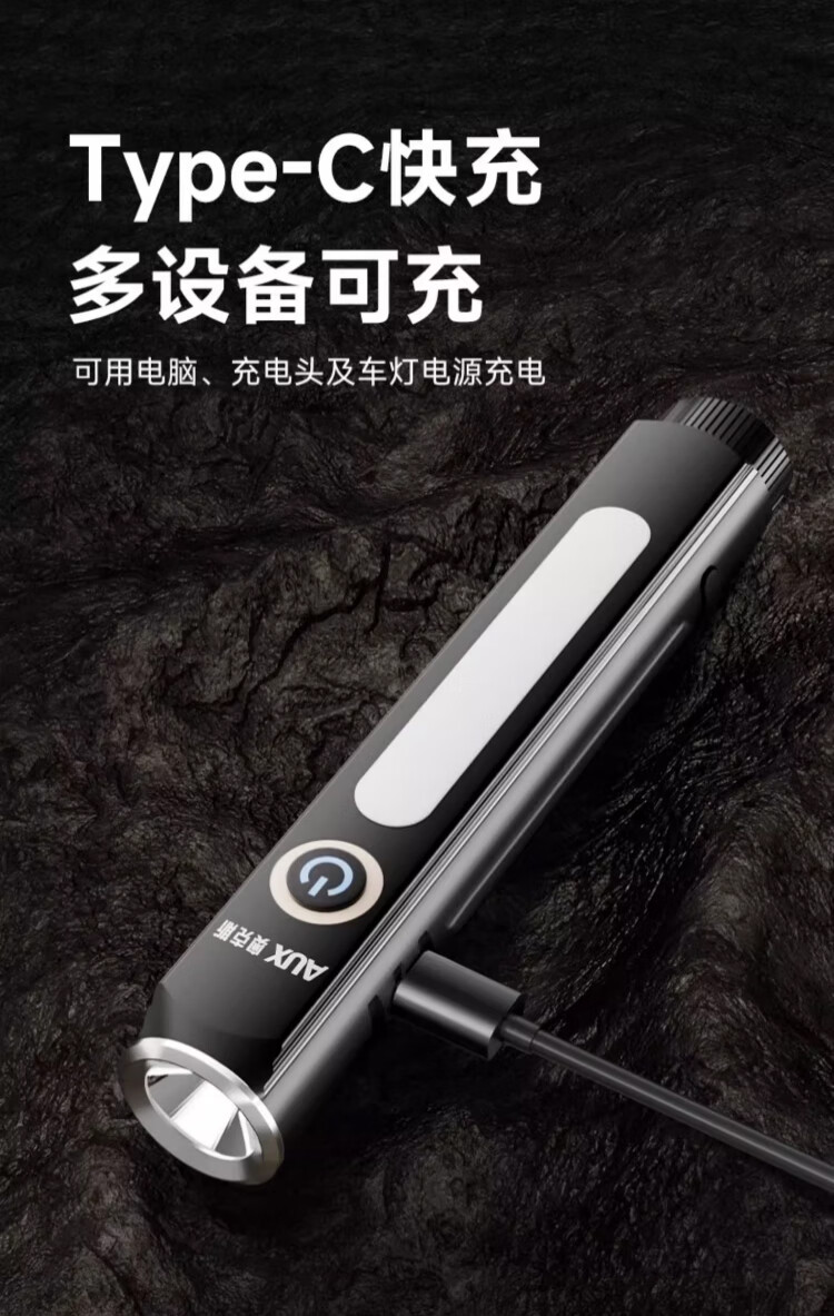 奥克斯(AUX)手电筒强光手电超亮远射led可充电功能防水应急灯工作维修灯磁吸 【Max款】爆亮灯珠-1000LM-8种模式