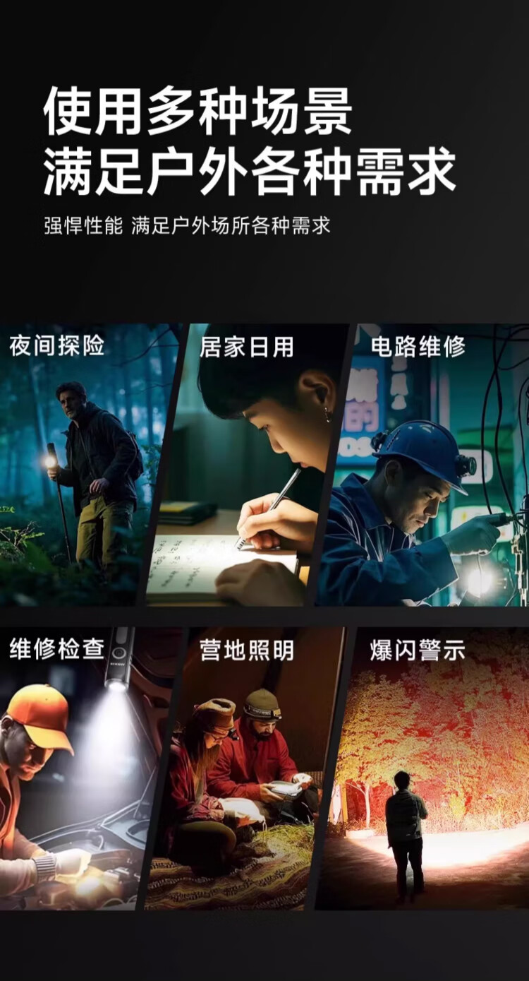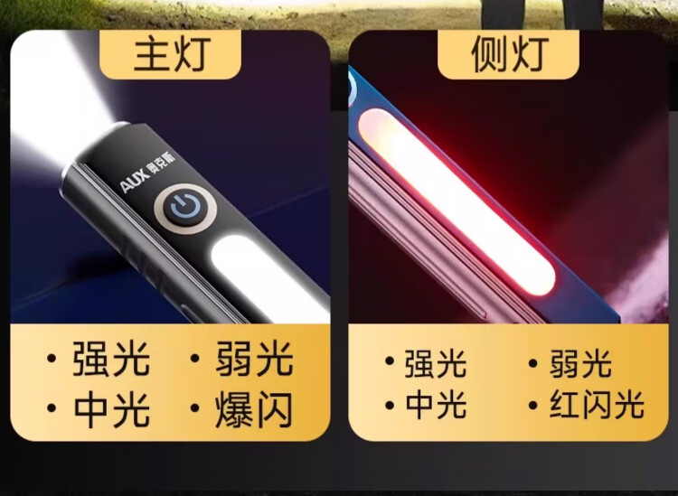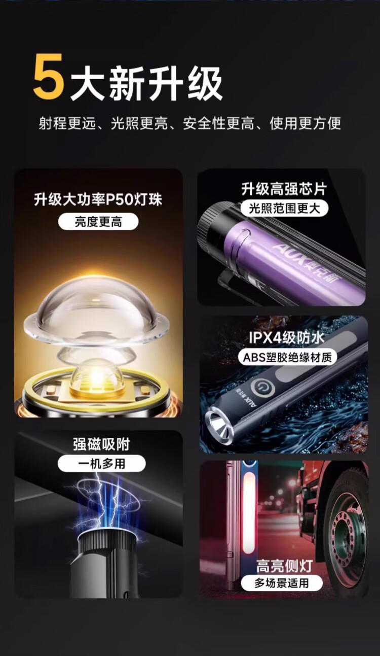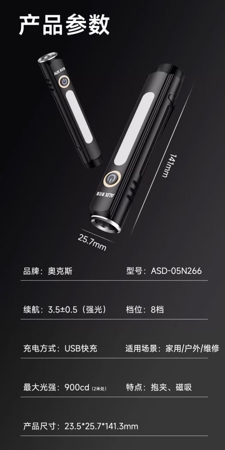奥克斯(AUX)手电筒强光手电超亮远射led可充电功能防水应急灯工作维修灯磁吸 【Max款】爆亮灯珠-1000LM-8种模式