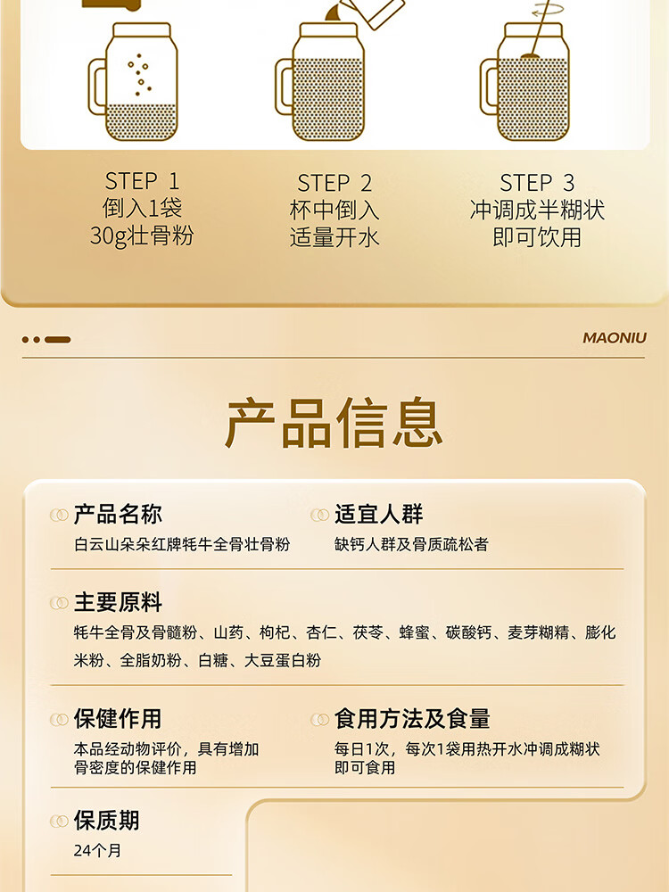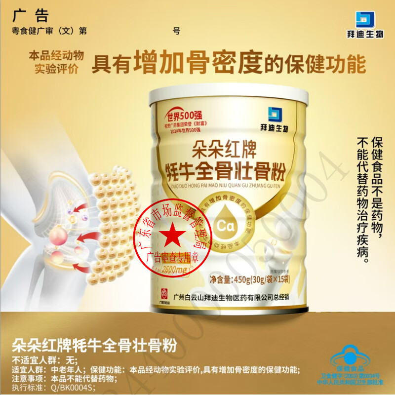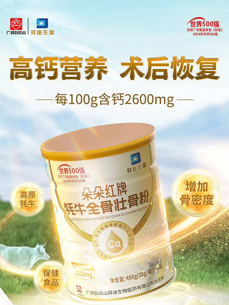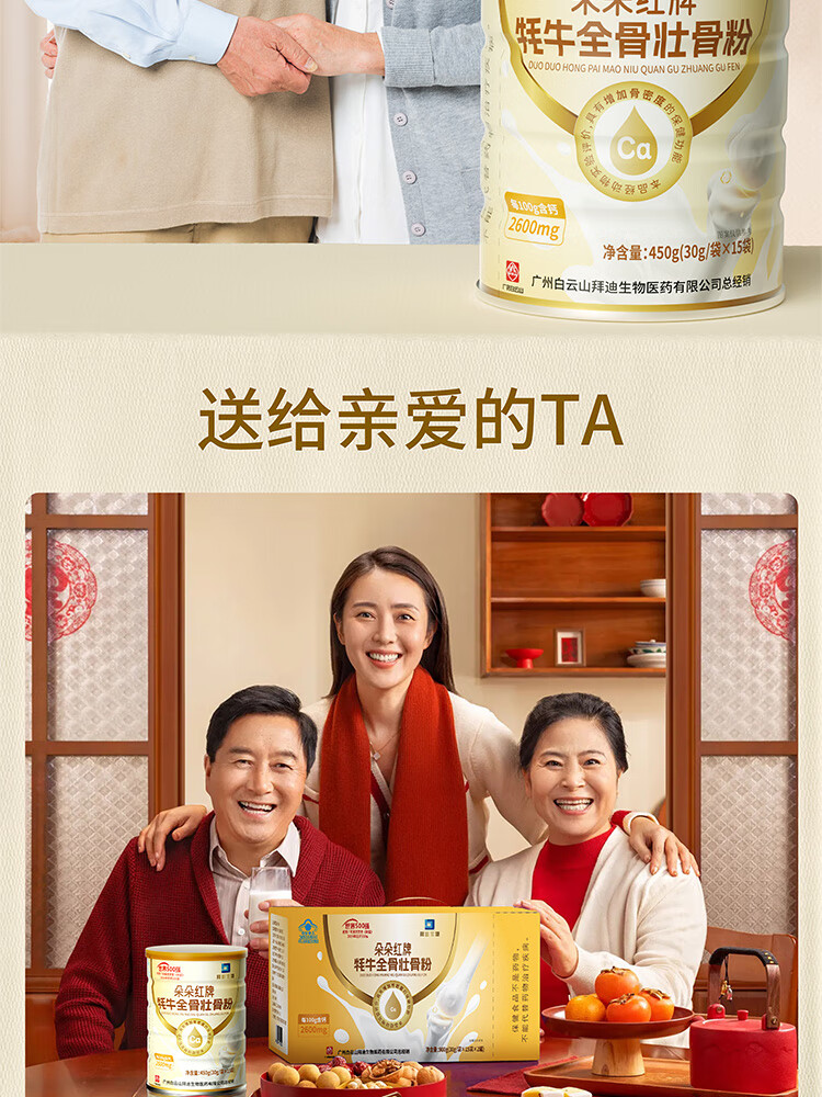 白云山壮骨粉牦牛骨髓450g*2中老年人骨质折补钙疏松骨裂恢复营养品礼盒