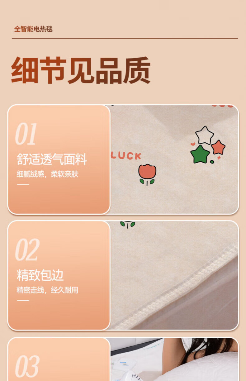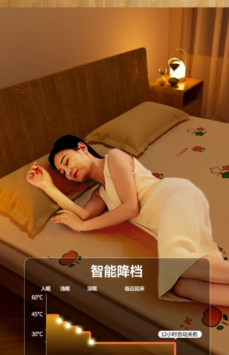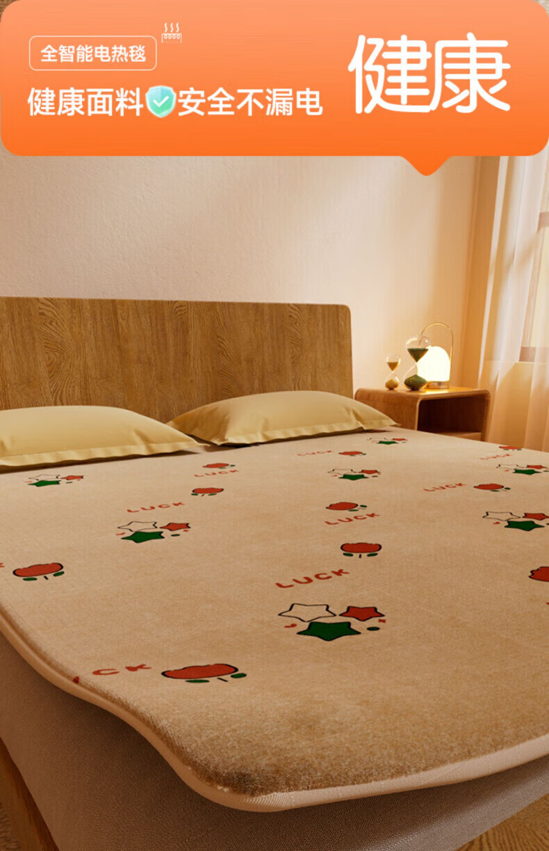 DEATKN德国高端电热毯单人电热毯双人双切智能调温家用学生宿舍 印花舒适绒【150*70_单人三挡】红条纹