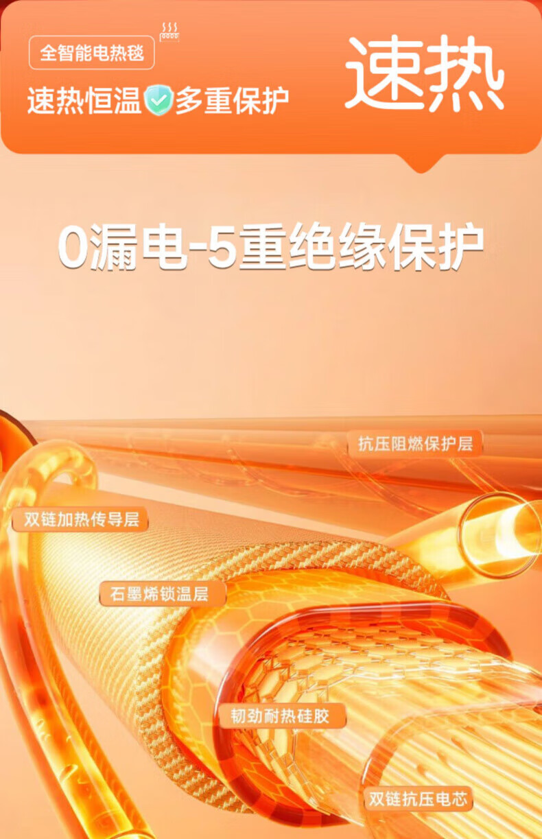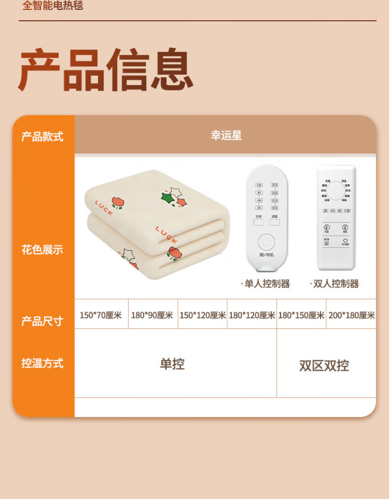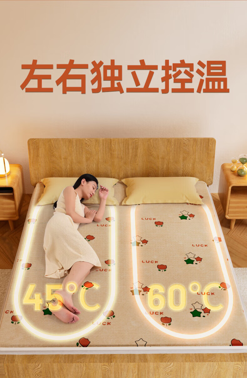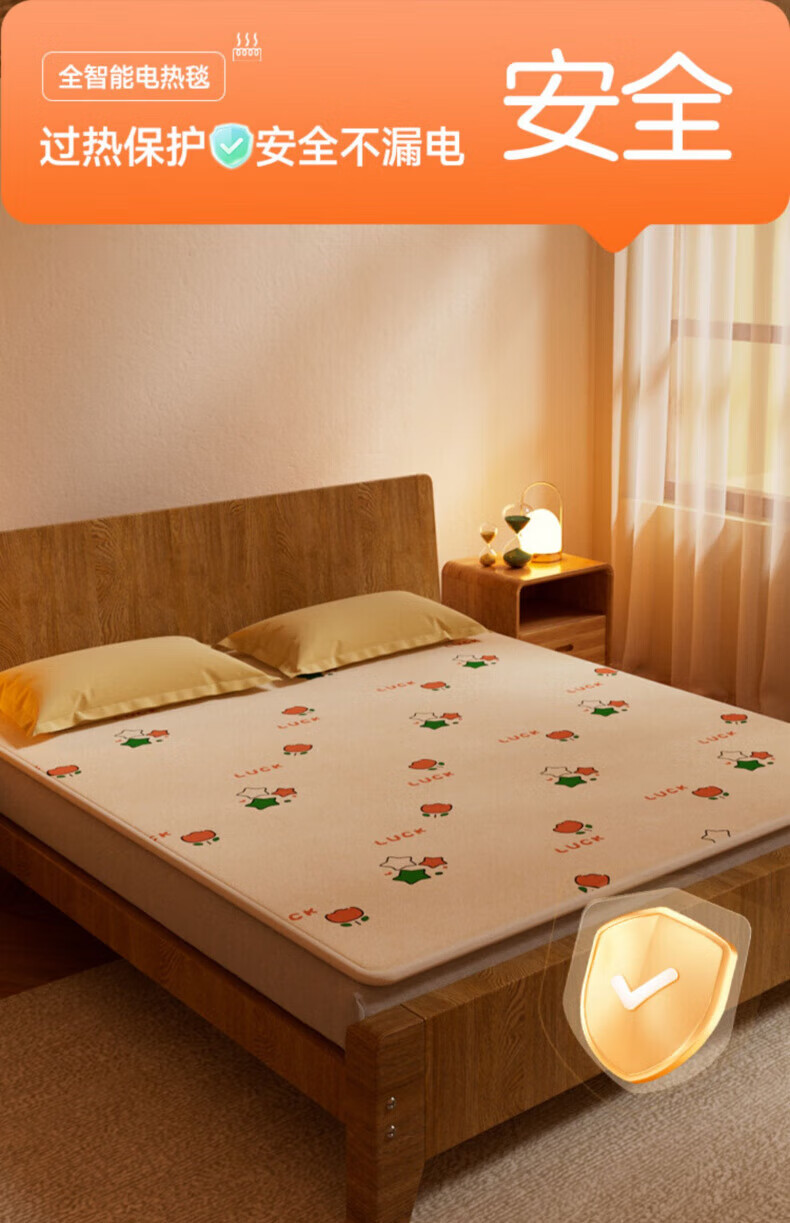 DEATKN德国高端电热毯单人电热毯双人双切智能调温家用学生宿舍 印花舒适绒【150*70_单人三挡】红条纹