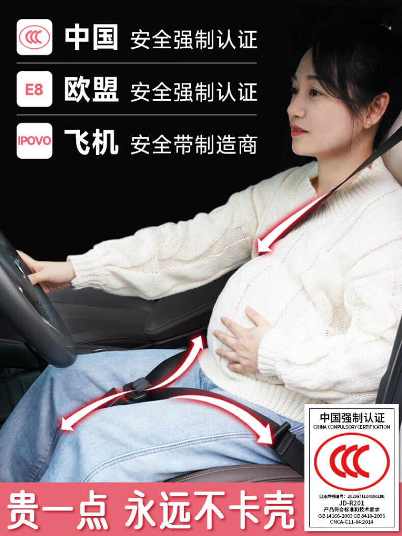 OQB德国高端孕妇安全带3C认证汽车防勒肚车载孕期主副驾驶开 黑色