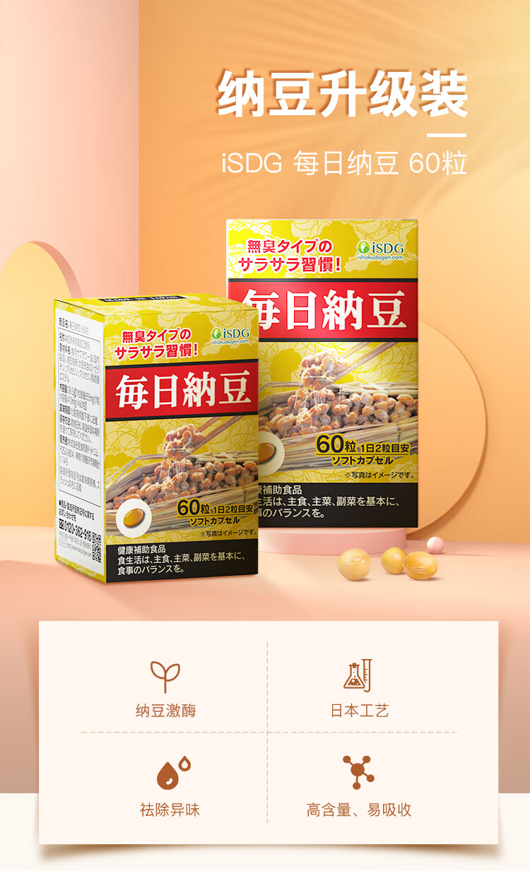 ISDG纳豆激酶60粒*3盒 每日纳豆胶囊 日本进口即食纳豆菌送长辈纳豆