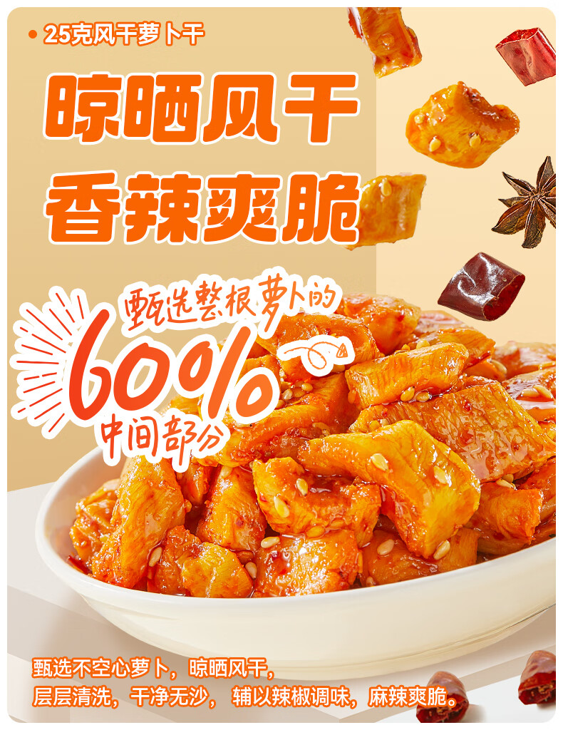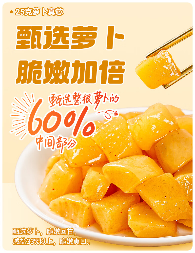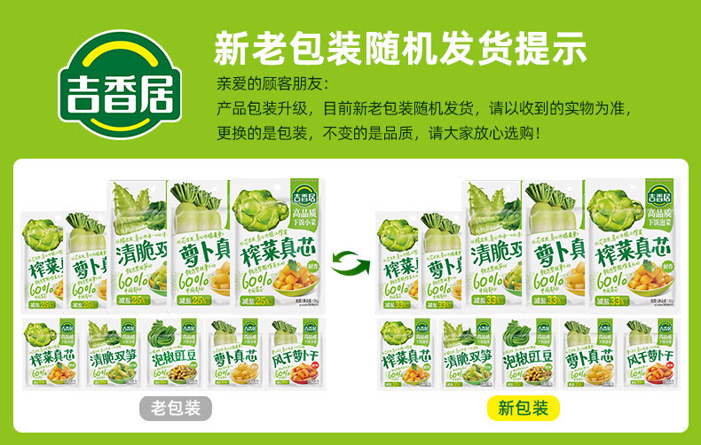 吉香居榨菜真芯萝卜真芯25g榨菜芯下饭菜清脆下饭小包装吉香居榨菜咸菜 风干萝卜干25g*12袋