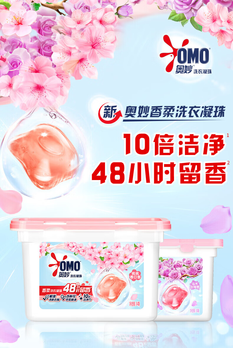 奥妙护色洗衣凝珠白桃香温和护衣防串色深层洁净持久留香家庭装 【护色留香】清甜白桃香100颗