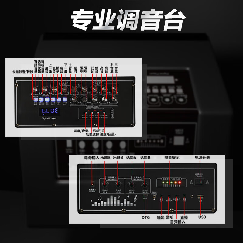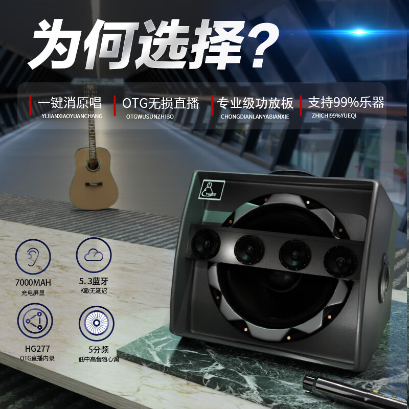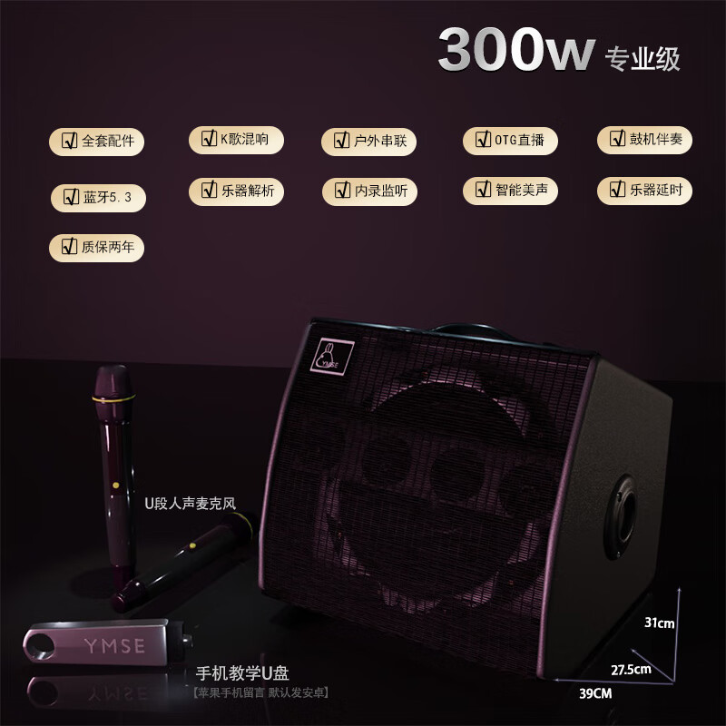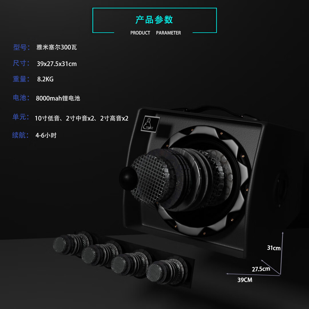 雅米塞尔10寸大喇叭专业户外唱歌音响吉他弹唱专用音箱蓝牙便携式OTG内录直播乐器演出街头 进口10寸大喇叭+300瓦+2U段话筒