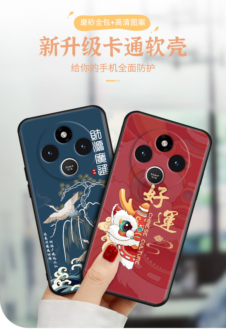 作画君 适用华为荣耀X50 GT手机壳新年限定国潮书法荣耀x50i创意腕带支架配长斜跨挂绳全包防摔保护套 荣耀X50/50GT【红色-书法如意龙】+挂绳
