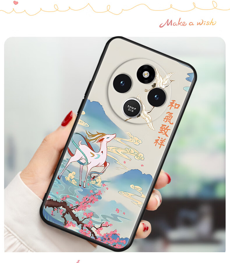 作画君 适用华为Mate60Pro手机壳龙年新款腕带支架mate60pro+全包防摔小羊皮配挂绳保护 Mate60【平安印花】+挂绳