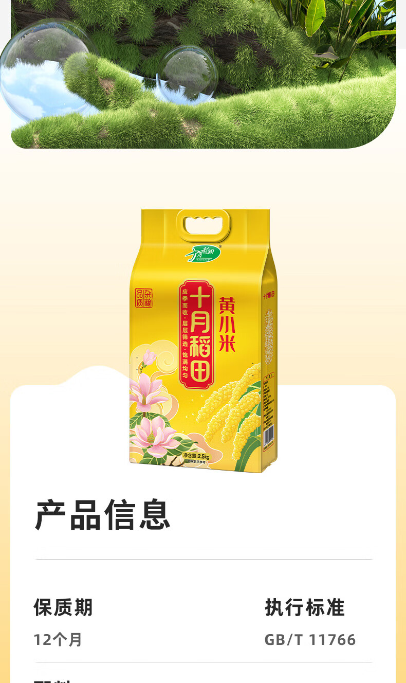 十月稻田 黄小米2.5kg 小米5斤 粗粮杂粮煮粥蒸饭 中秋节团购礼品