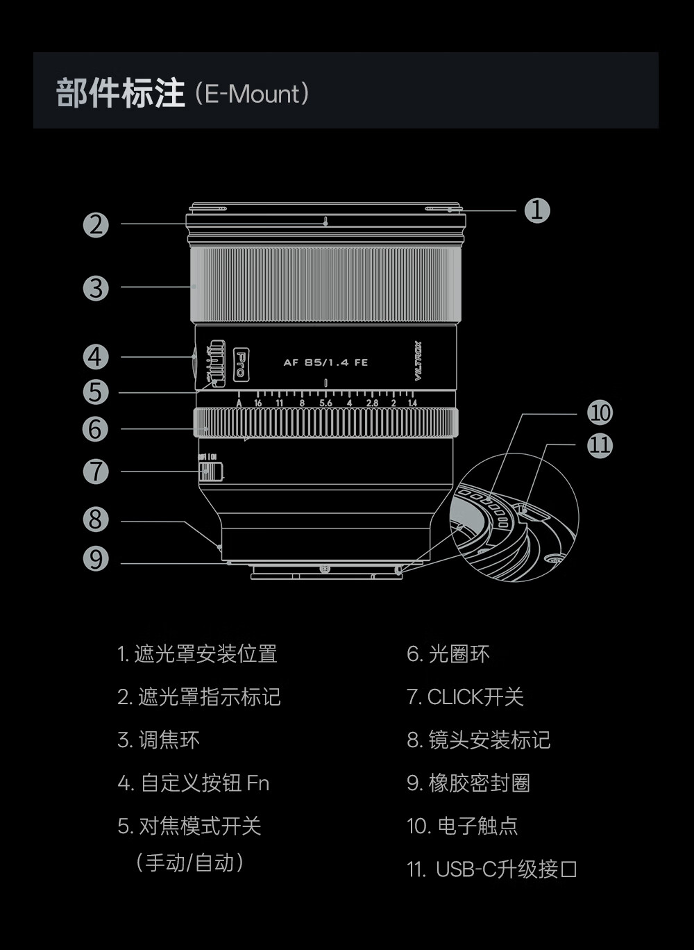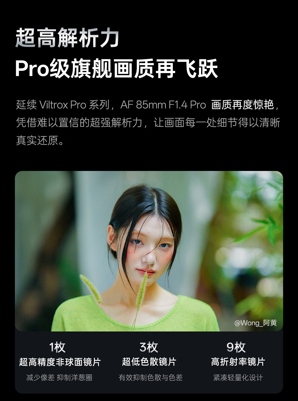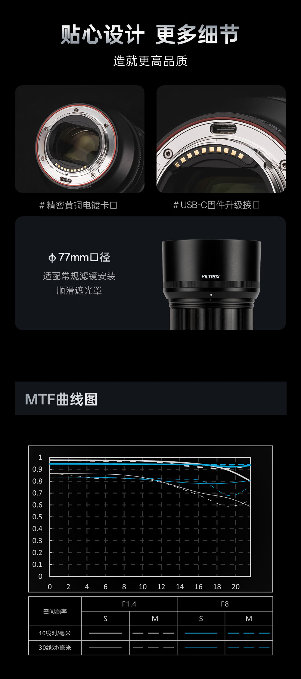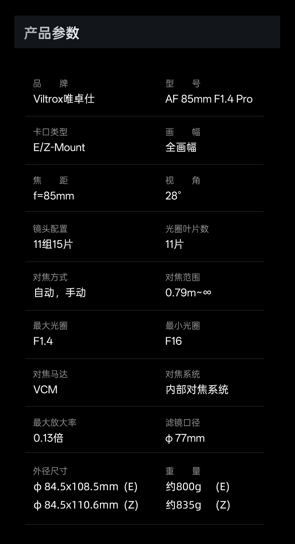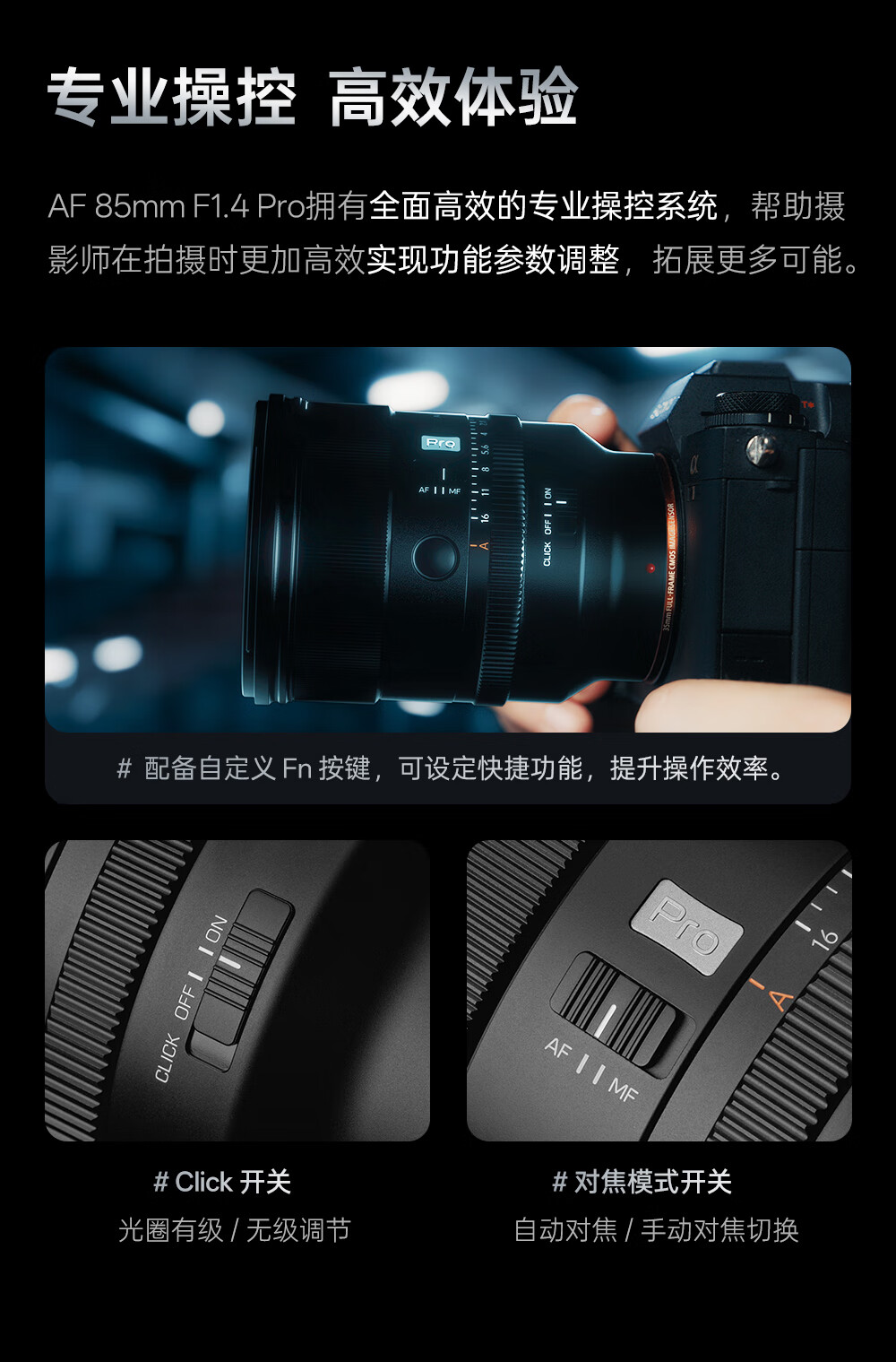 唯卓仕(VILTROX)AF 85mm F1.4 Pro FE索尼口全画幅自动对焦大光圈中远摄定焦人像镜头适用于A7M4 A7C2微单相机