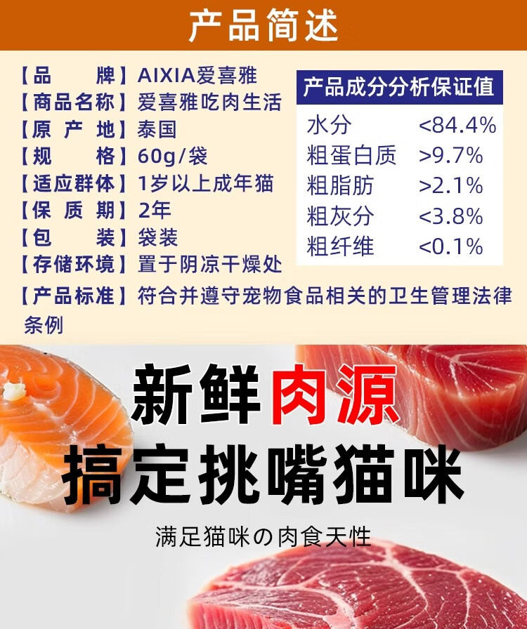 爱喜雅AixiA进口成年猫粮猫湿粮吃肉生活营养鲜封包鲜肉湿粮零食 鸡肉味 180g 3袋1包