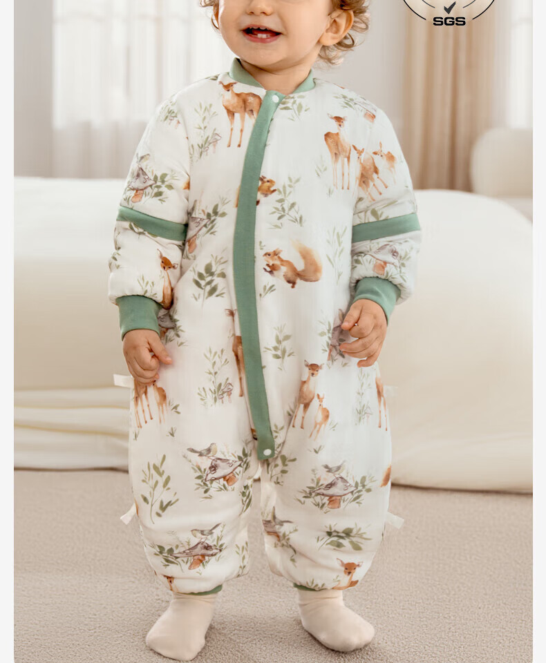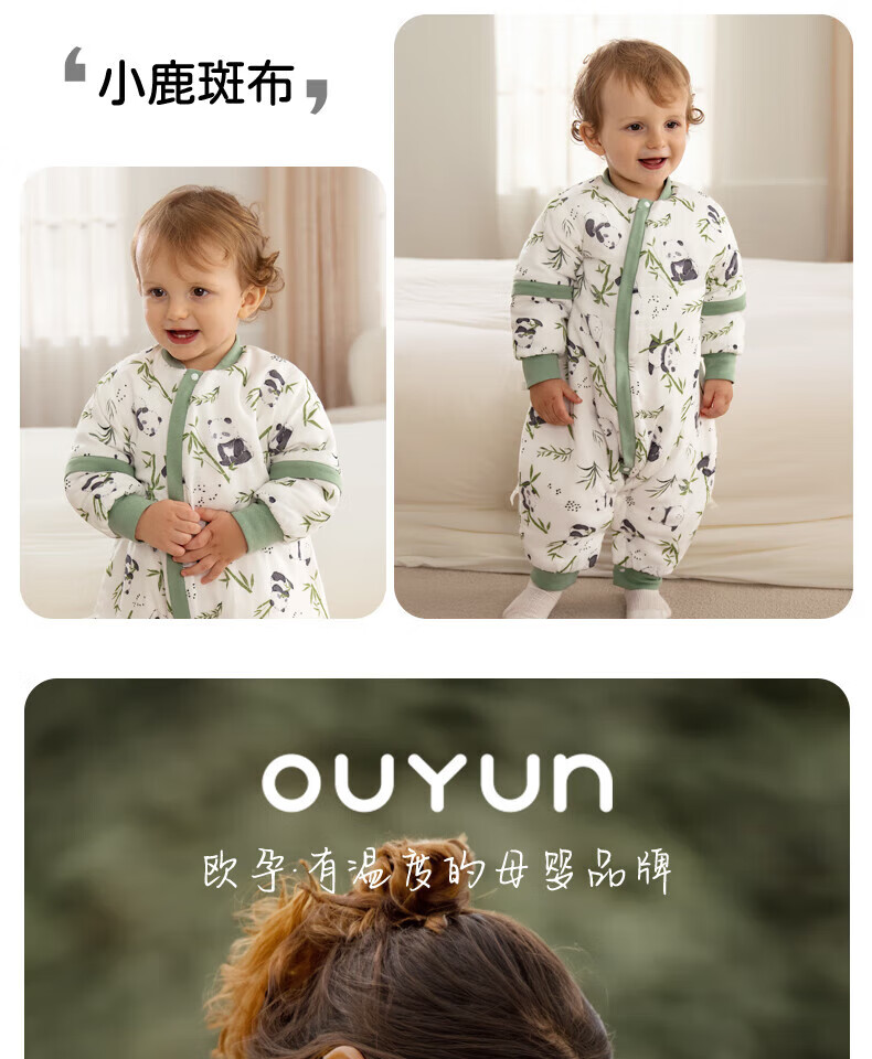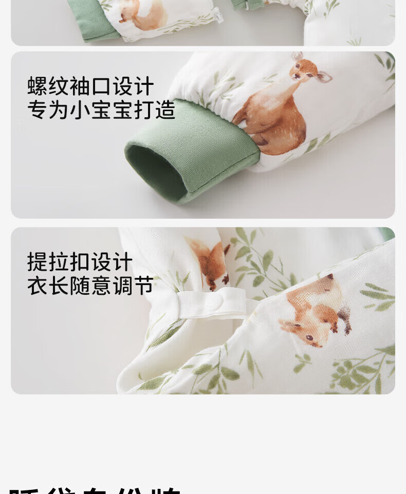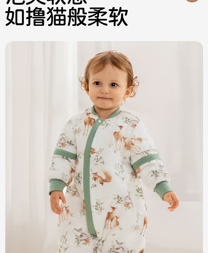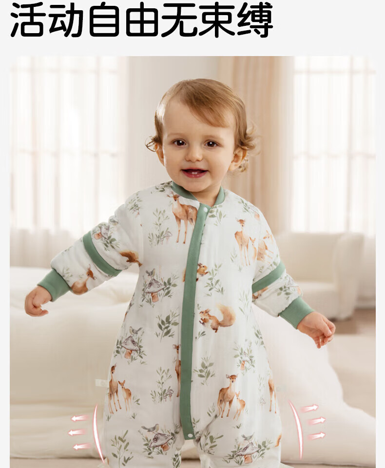 欧孕(OUYUN)【小清心】婴儿睡袋秋薄竹棉纱布防踢被新生儿睡袋 松鼠麋鹿【厚夹棉】 110建议身高105-120cm(3.5-5.5岁