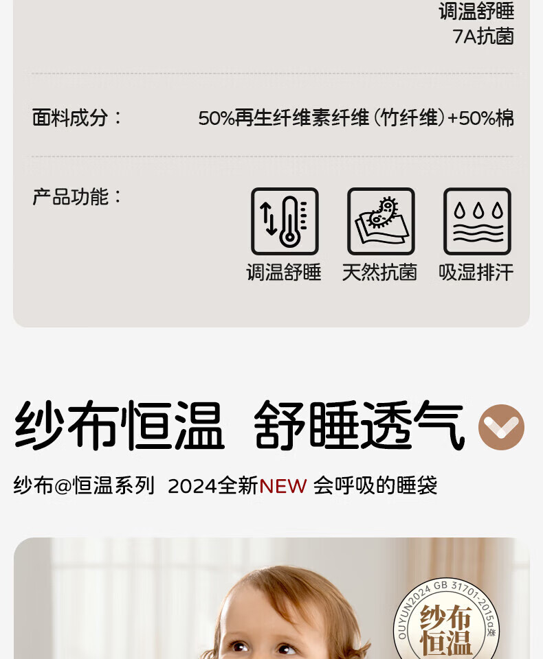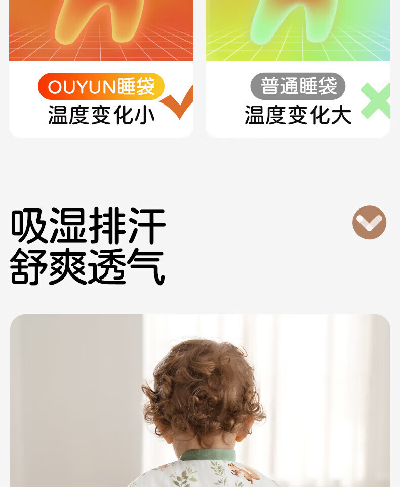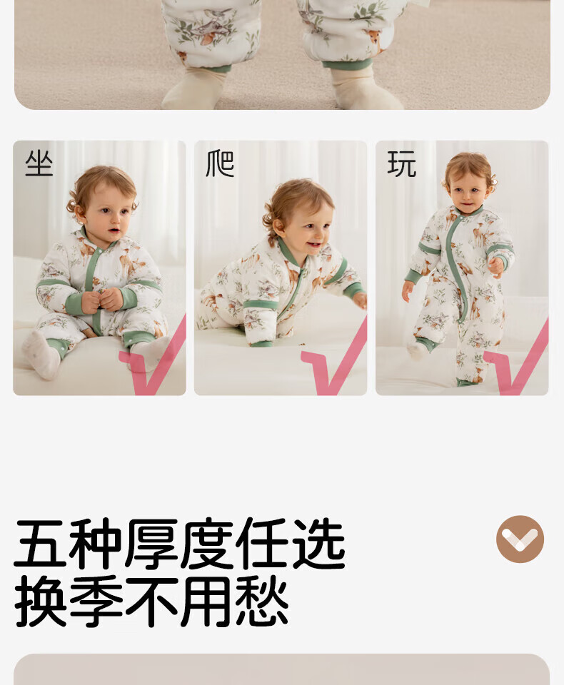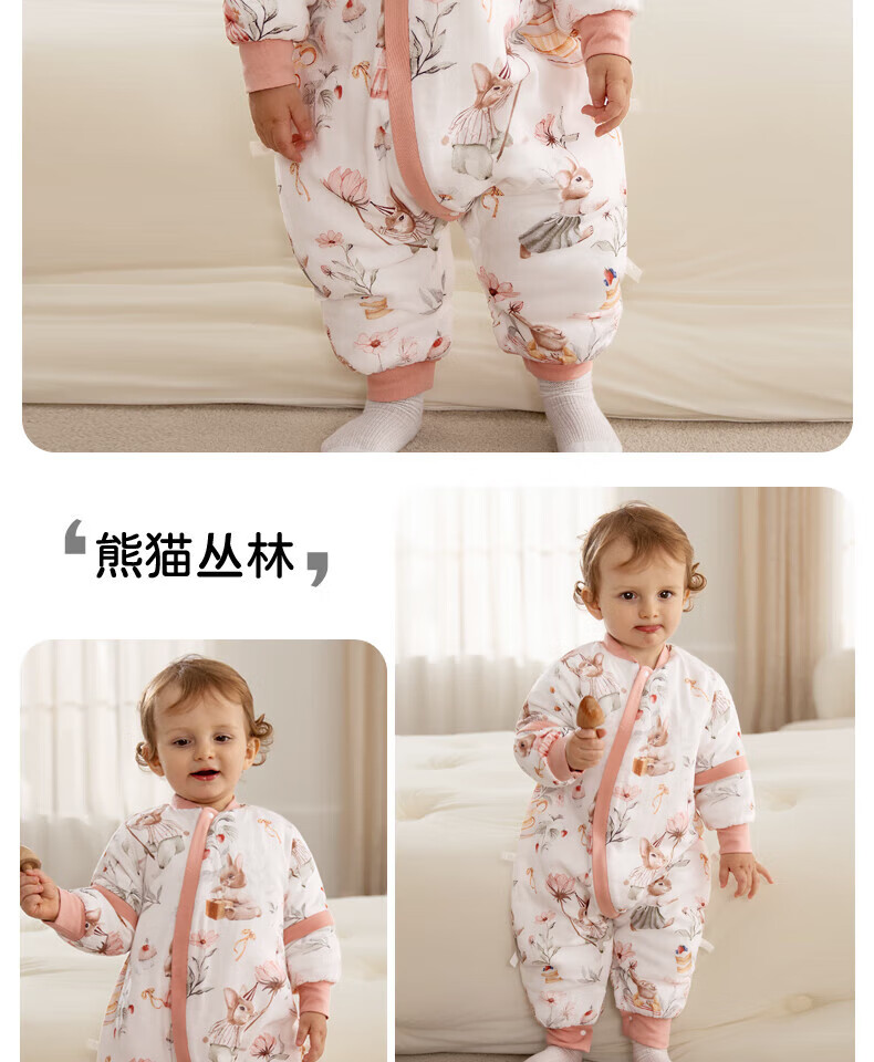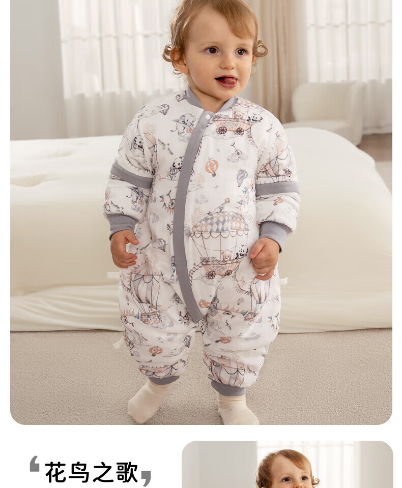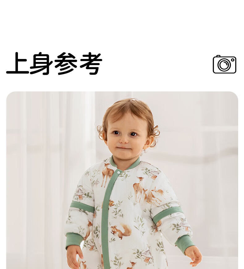 欧孕(OUYUN)【小清心】婴儿睡袋秋薄竹棉纱布防踢被新生儿睡袋 松鼠麋鹿【厚夹棉】 110建议身高105-120cm(3.5-5.5岁