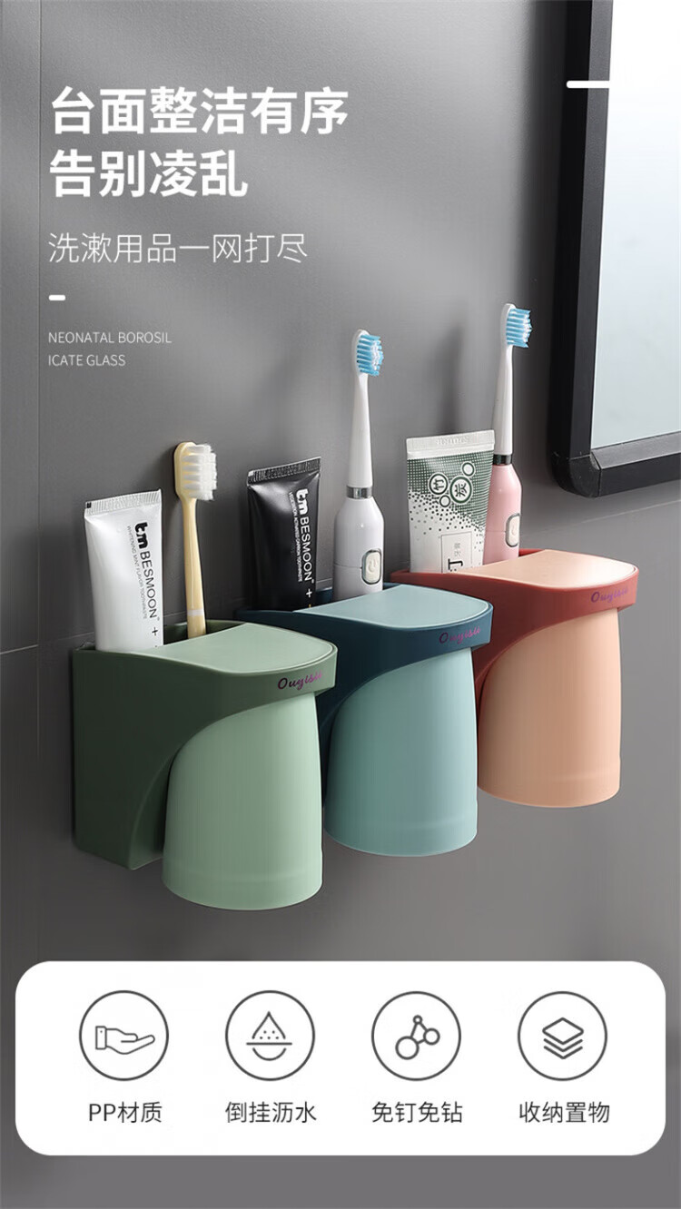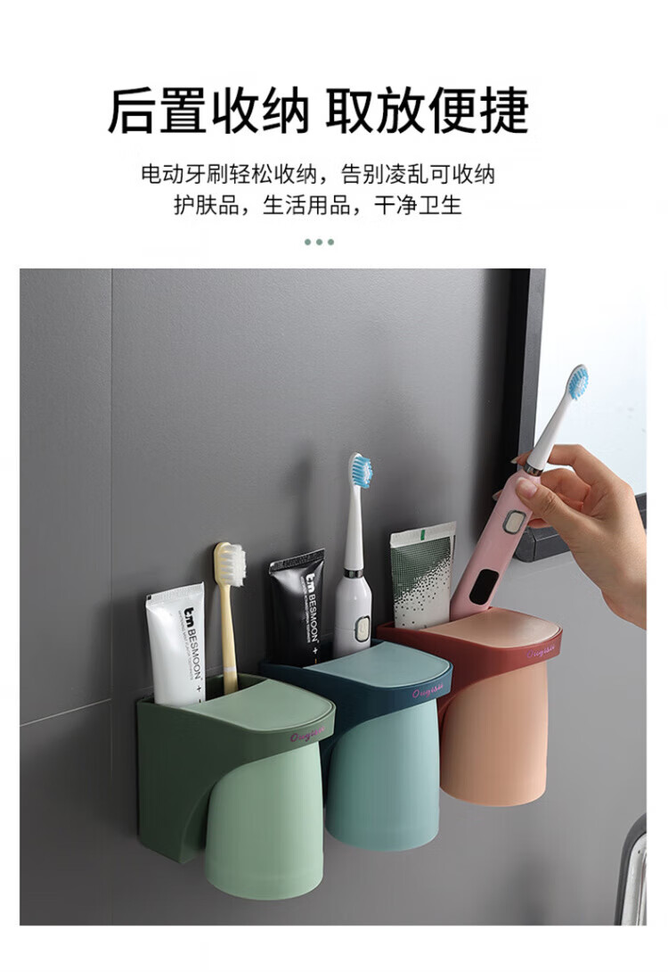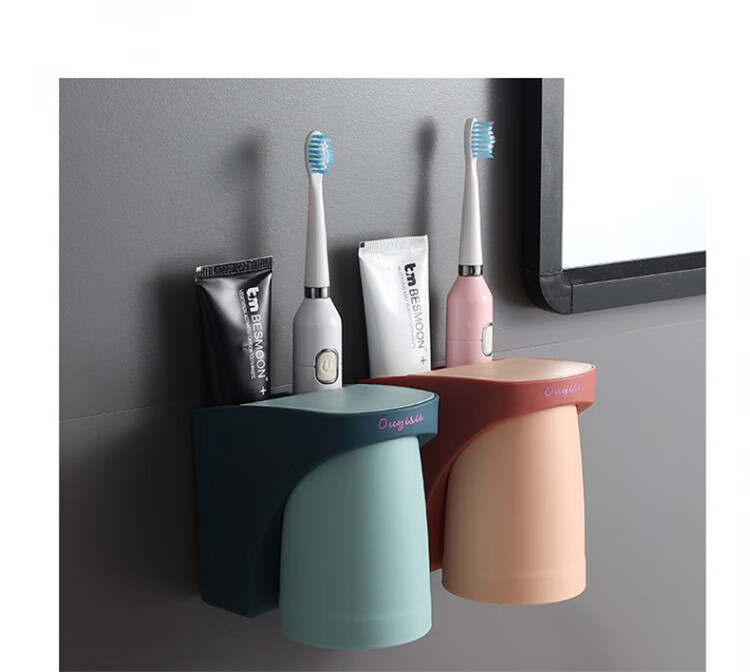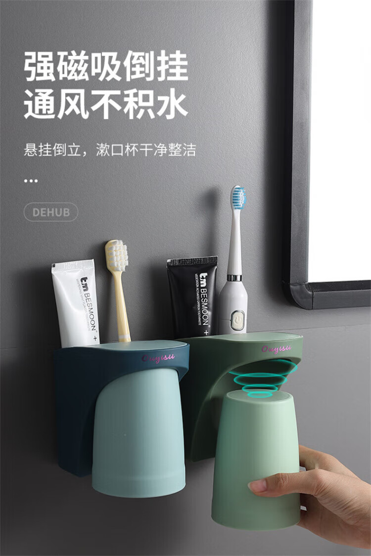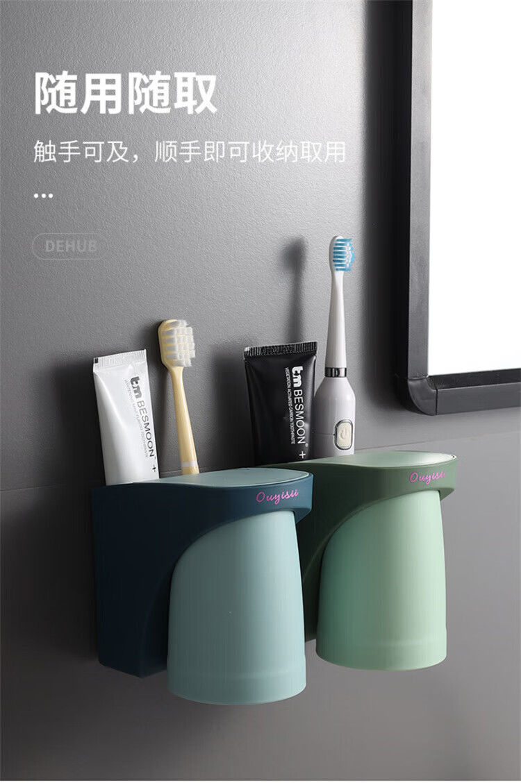 WCZ德国高端磁吸式牙刷置物架卫生间免打孔壁挂墙式牙杯漱口杯牙具收 两个装蓝色+绿色